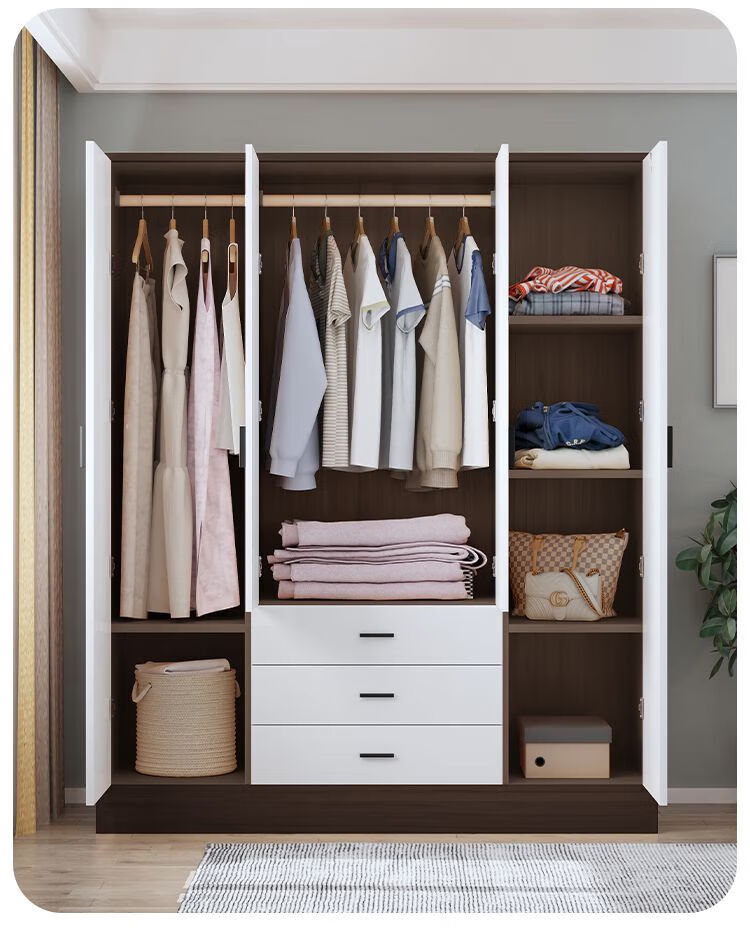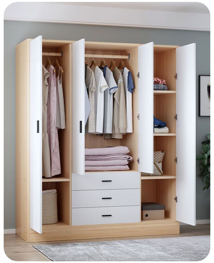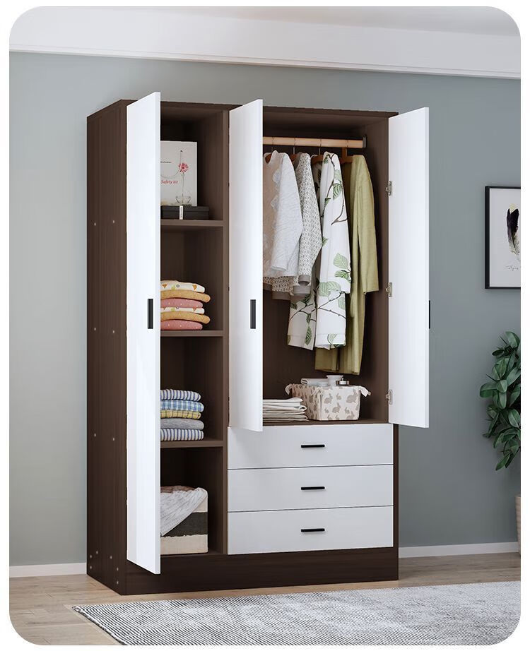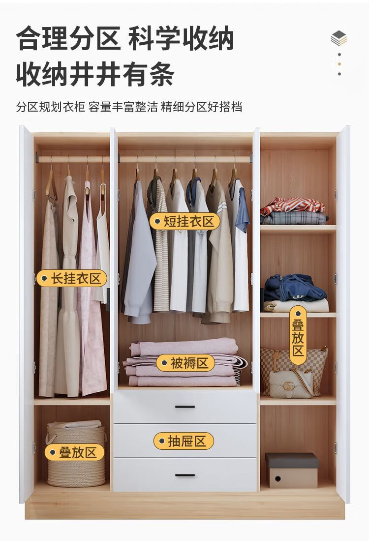 倘然之家衣柜家用卧室对开门单人现代简约成人衣橱出租屋用组装儿童储物柜 黄杉木【上楼】 长60*深45*高182两门