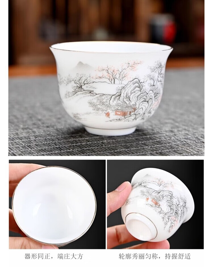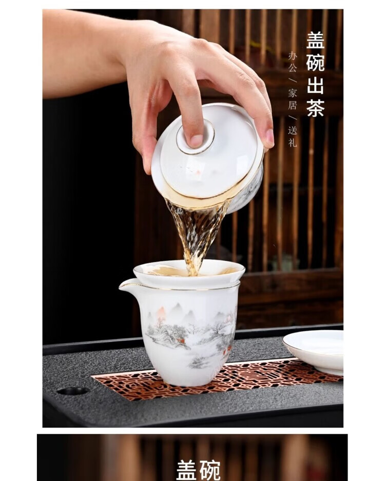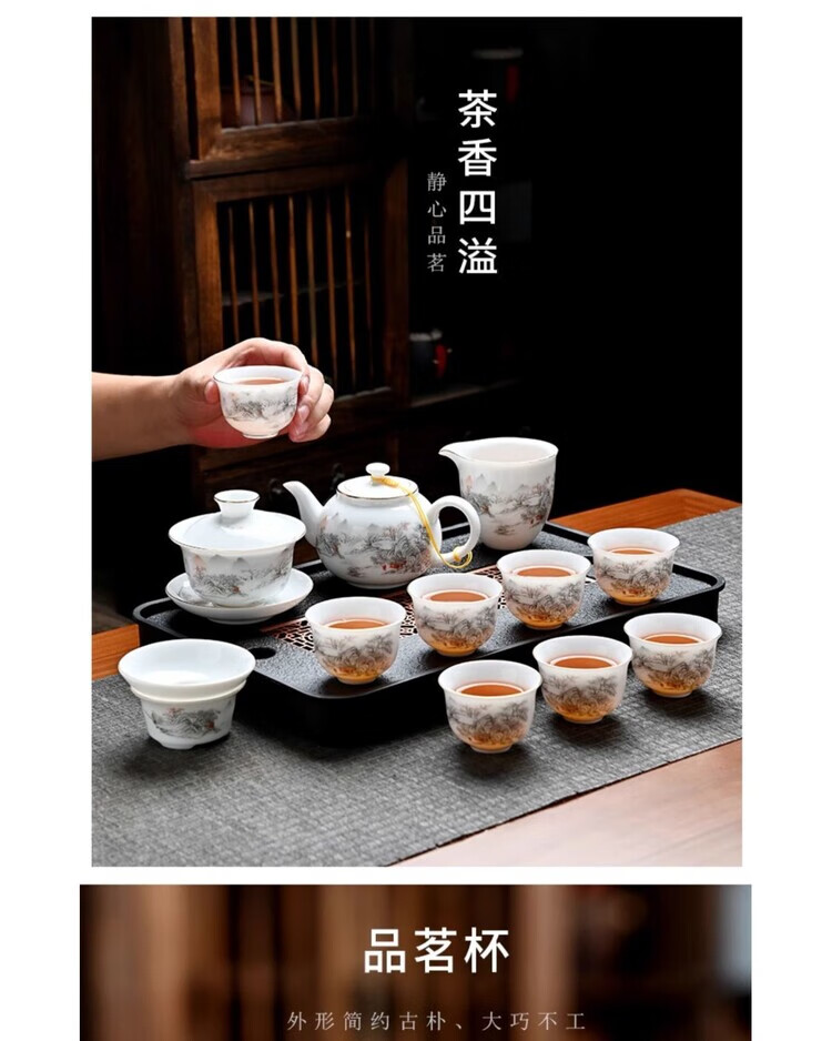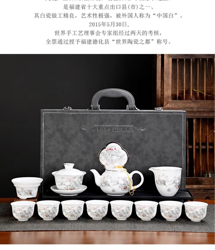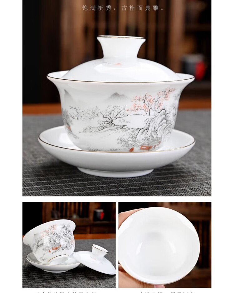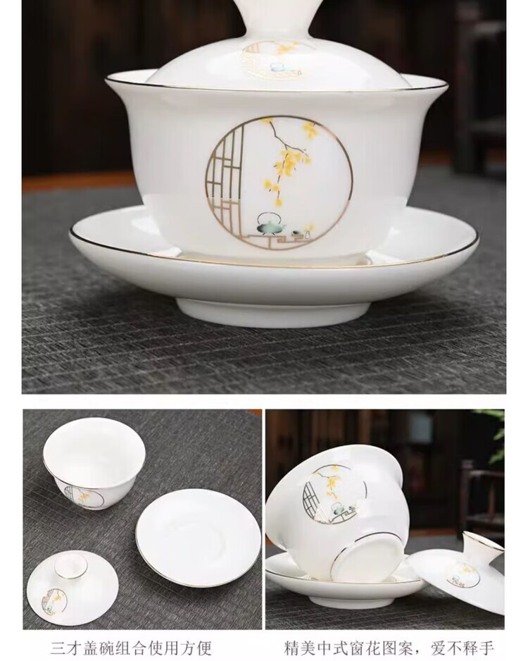 简漾冰种羊脂玉白瓷功夫茶具套装家用办公室会客陶瓷盖碗茶杯高档礼盒 10头羊脂玉盖碗 无规格