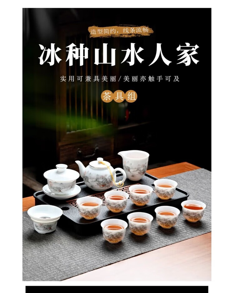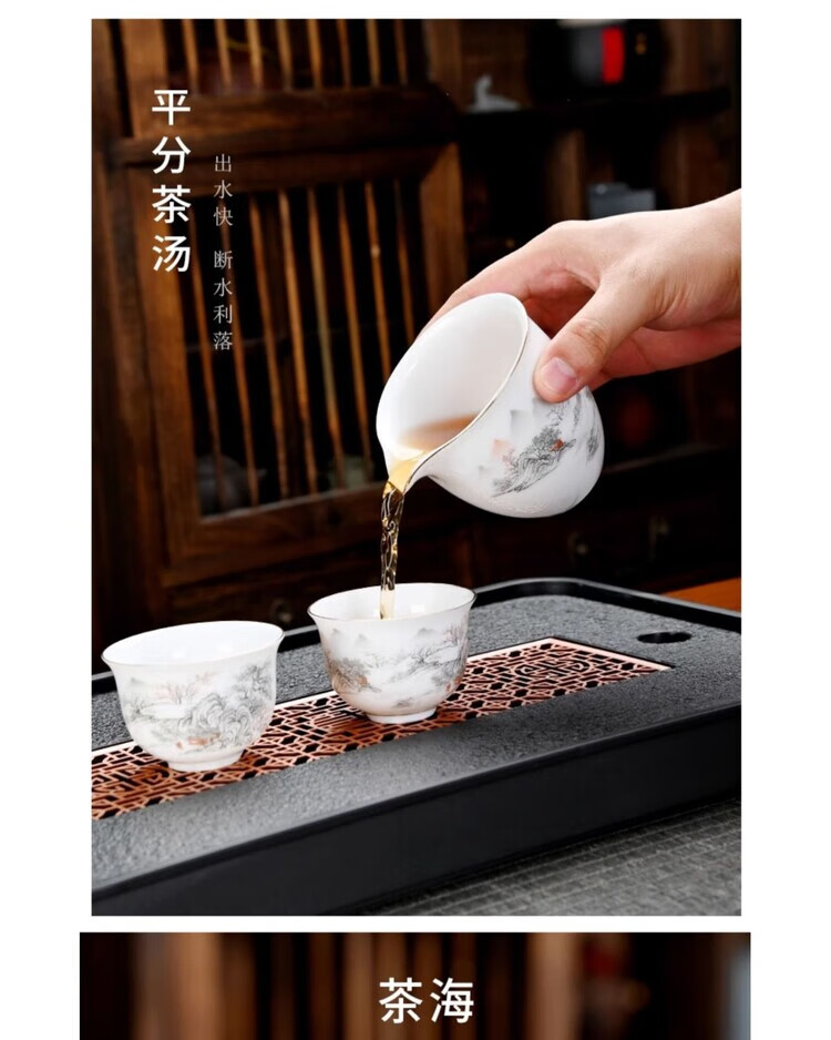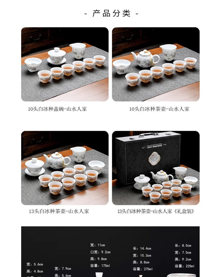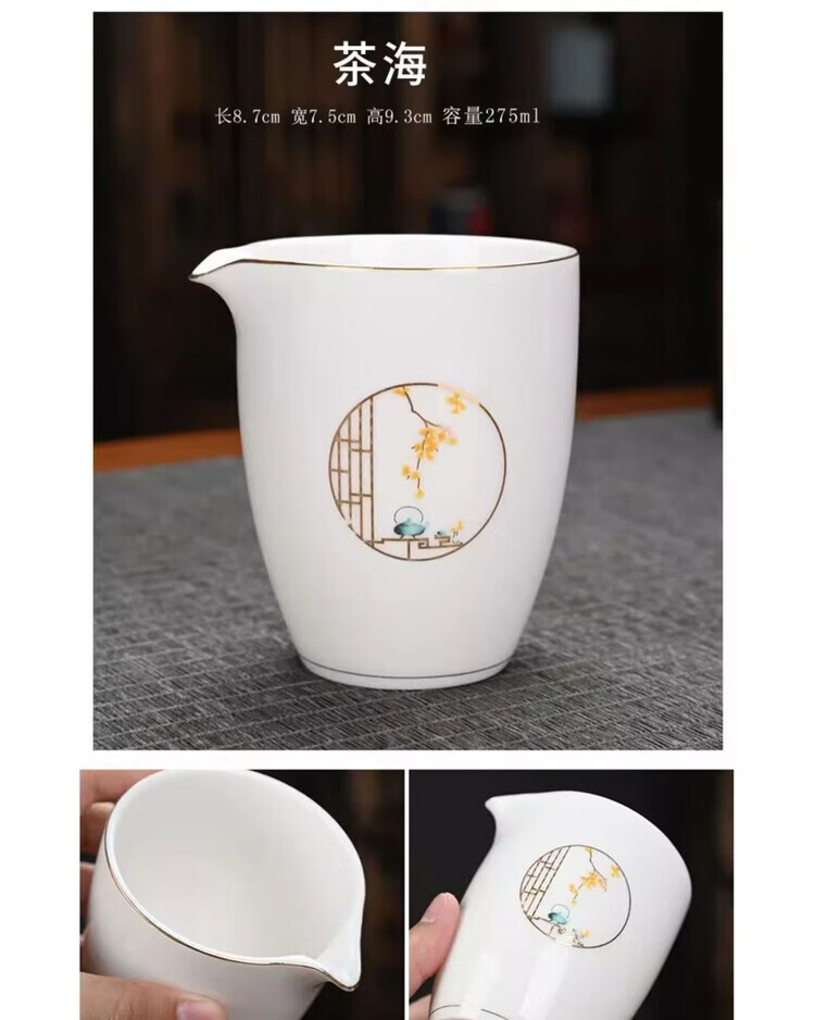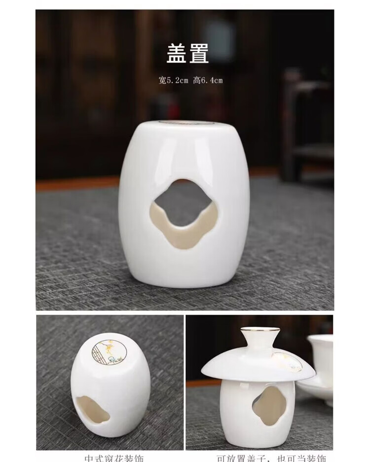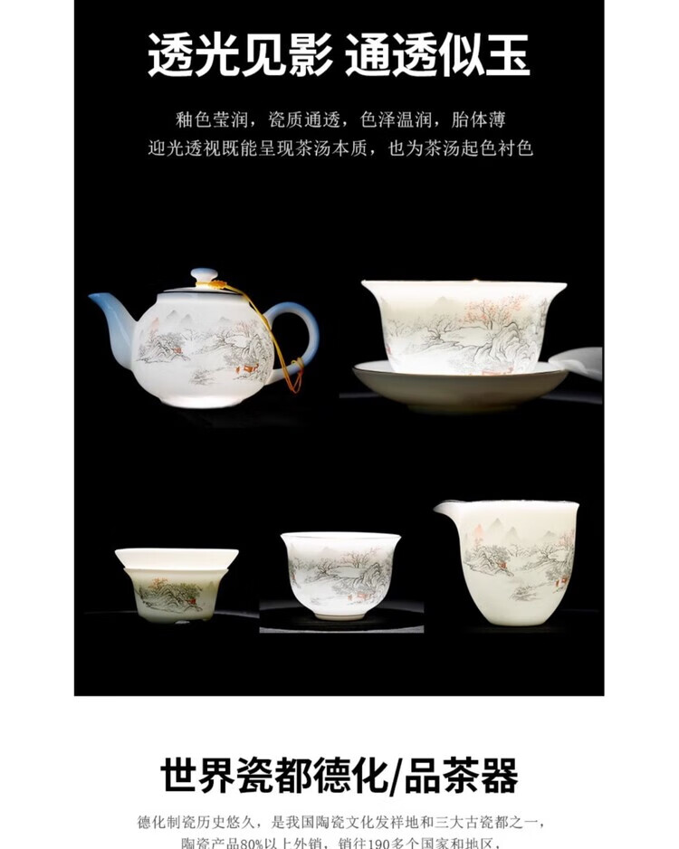 简漾冰种羊脂玉白瓷功夫茶具套装家用办公室会客陶瓷盖碗茶杯高档礼盒 10头羊脂玉盖碗 无规格