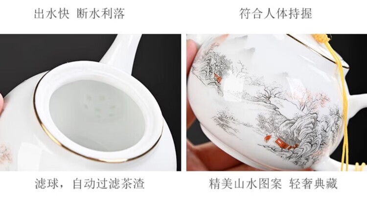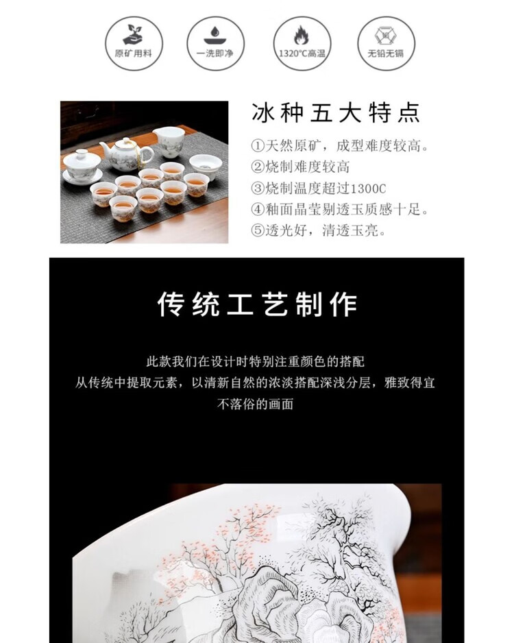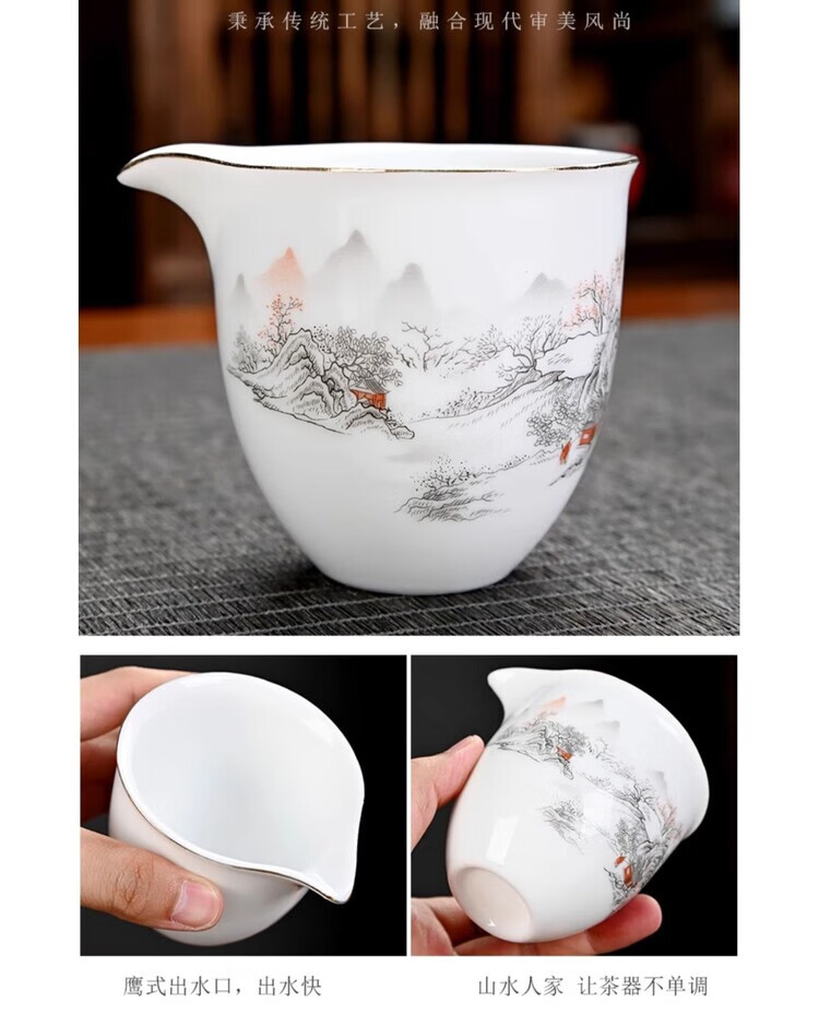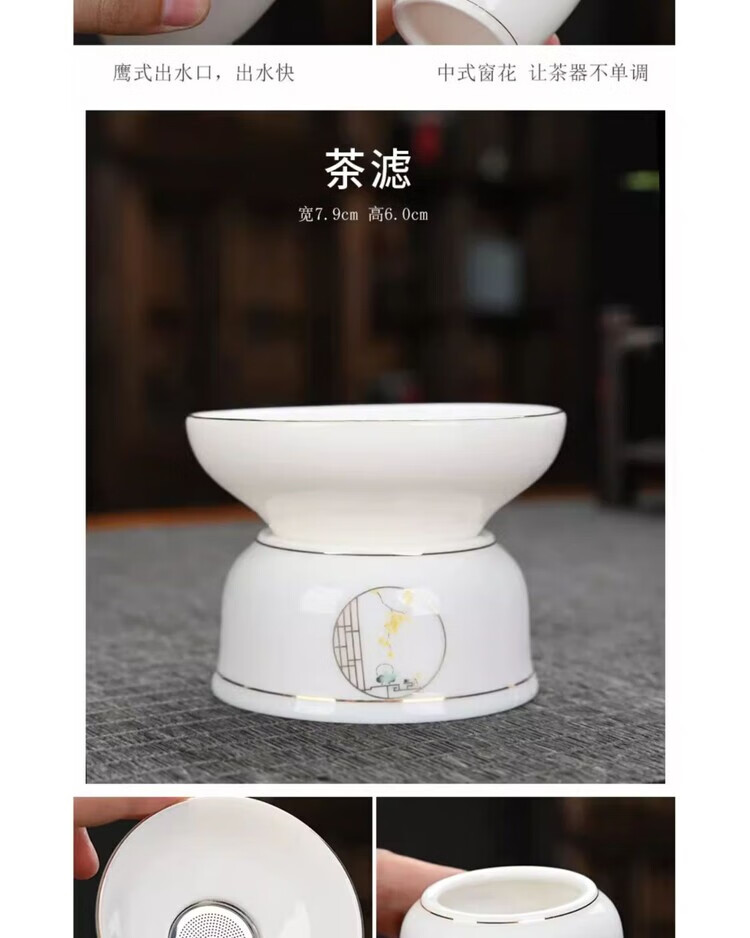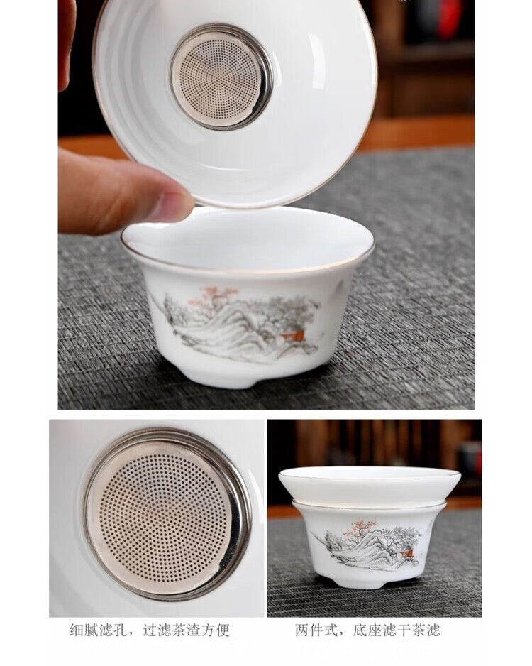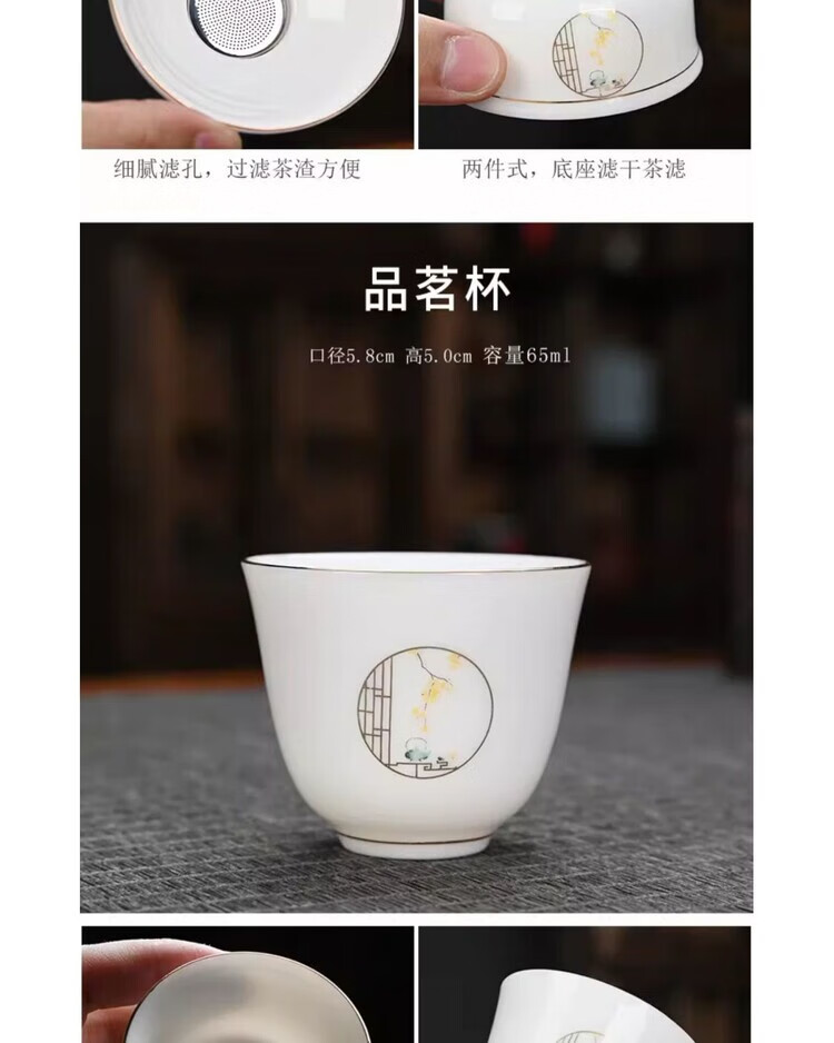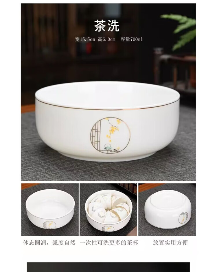 简漾冰种羊脂玉白瓷功夫茶具套装家用办公室会客陶瓷盖碗茶杯高档礼盒 10头羊脂玉盖碗 无规格