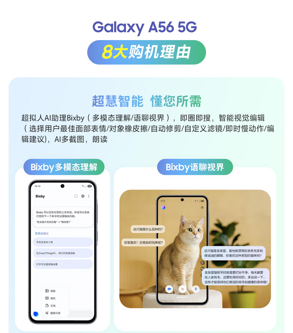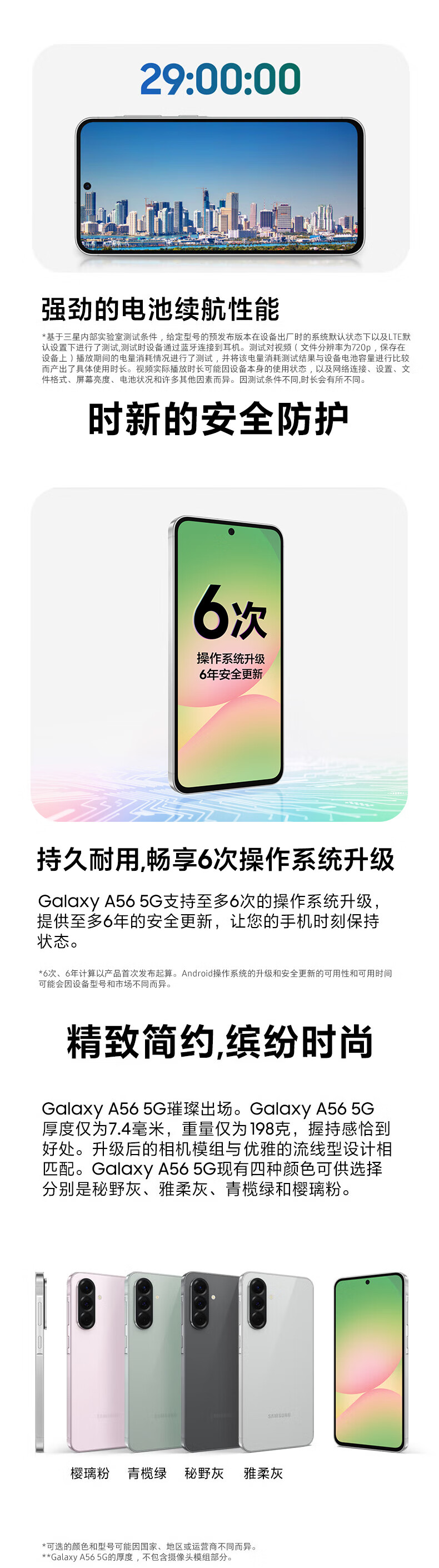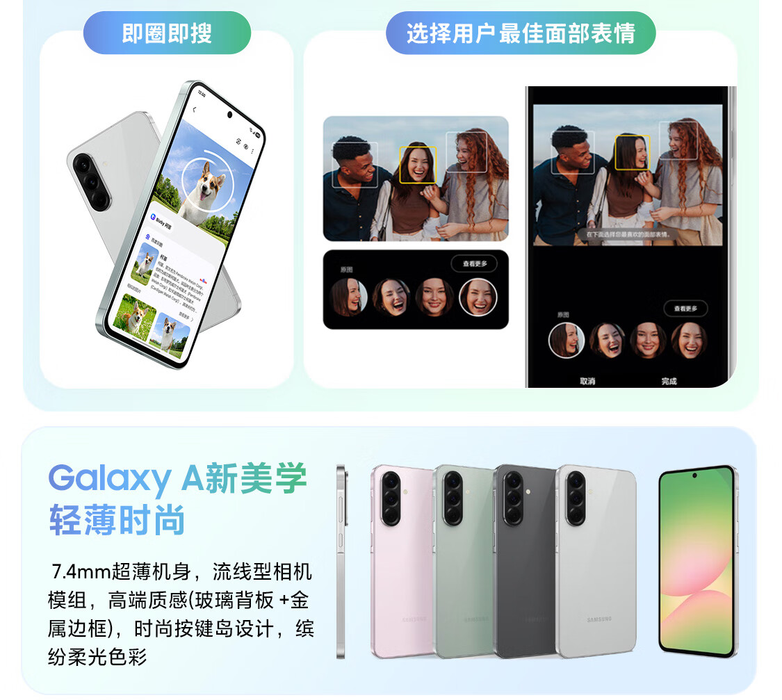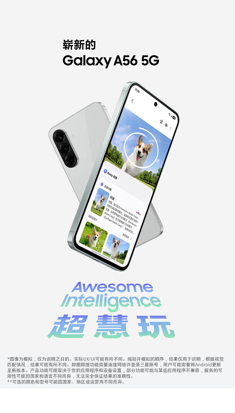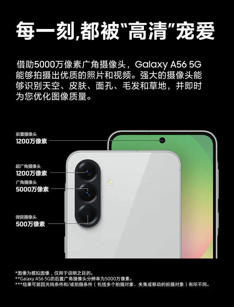 三星Samsung Galaxy A56 超薄机身5000万像素 5000mAh 拍照游戏手机 AI手机8GB+256GB 雅柔灰国家补贴
