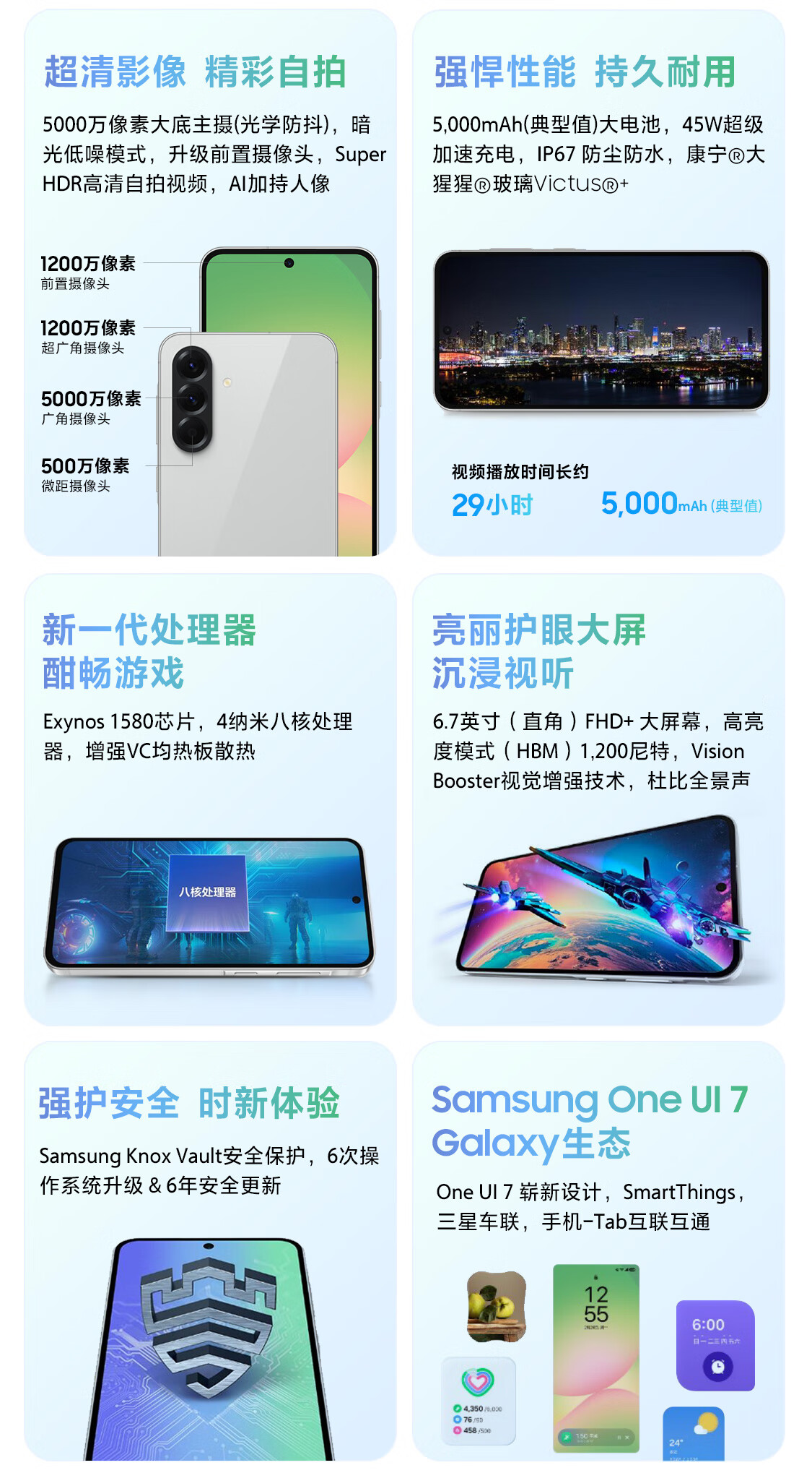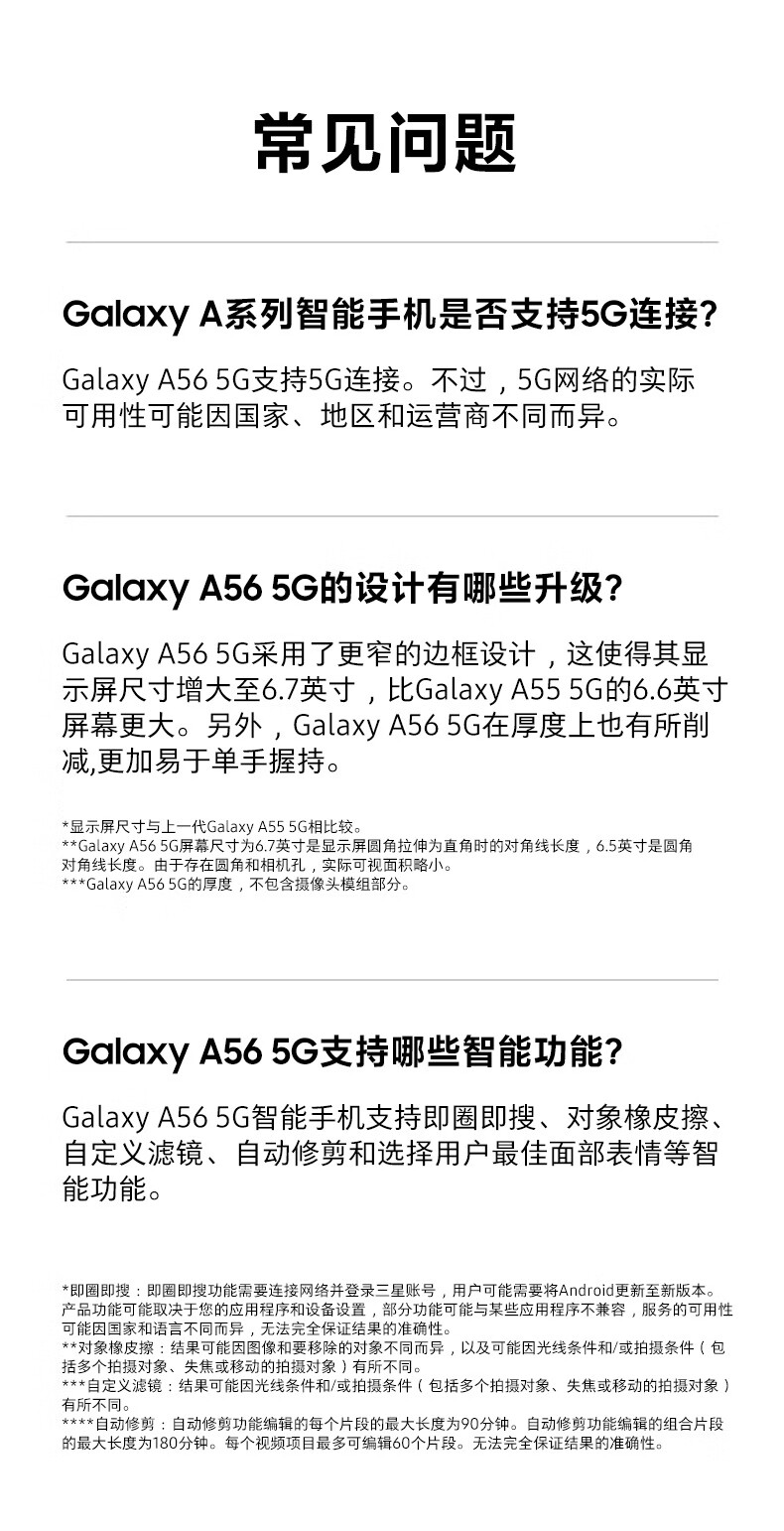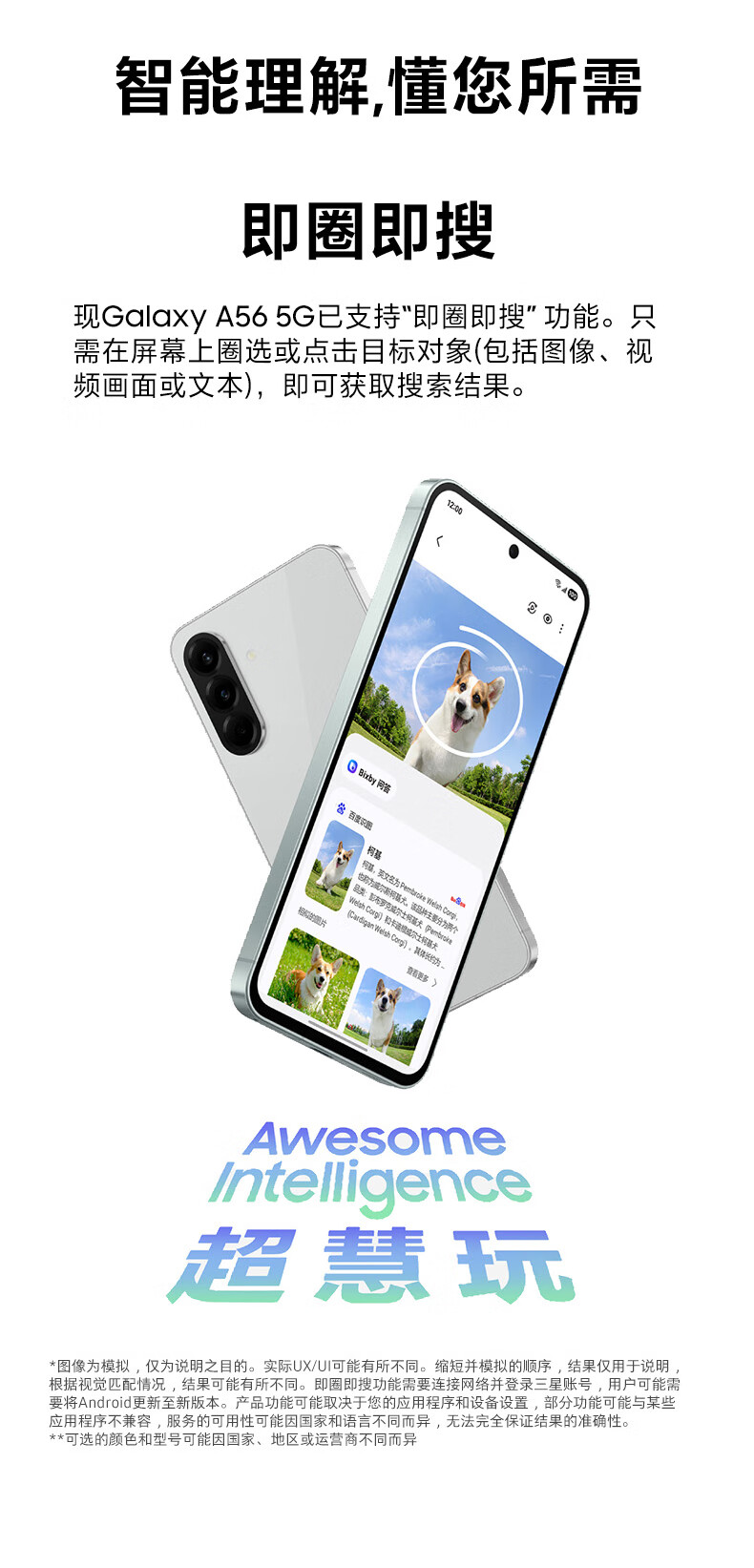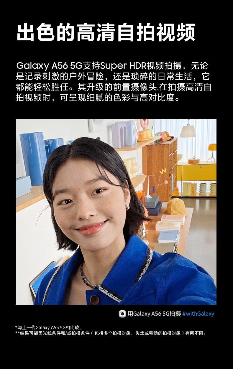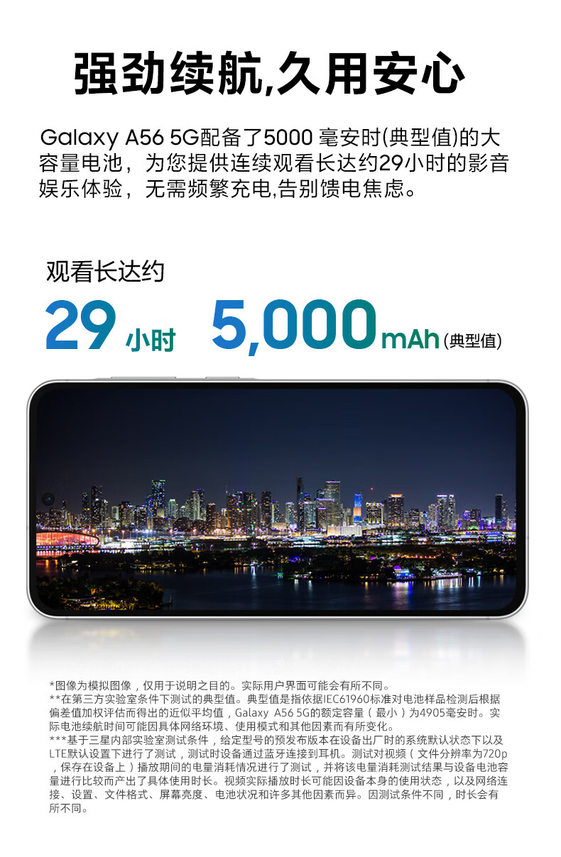三星Samsung Galaxy A56 超薄机身5000万像素 5000mAh 拍照游戏手机 AI手机8GB+256GB 雅柔灰国家补贴