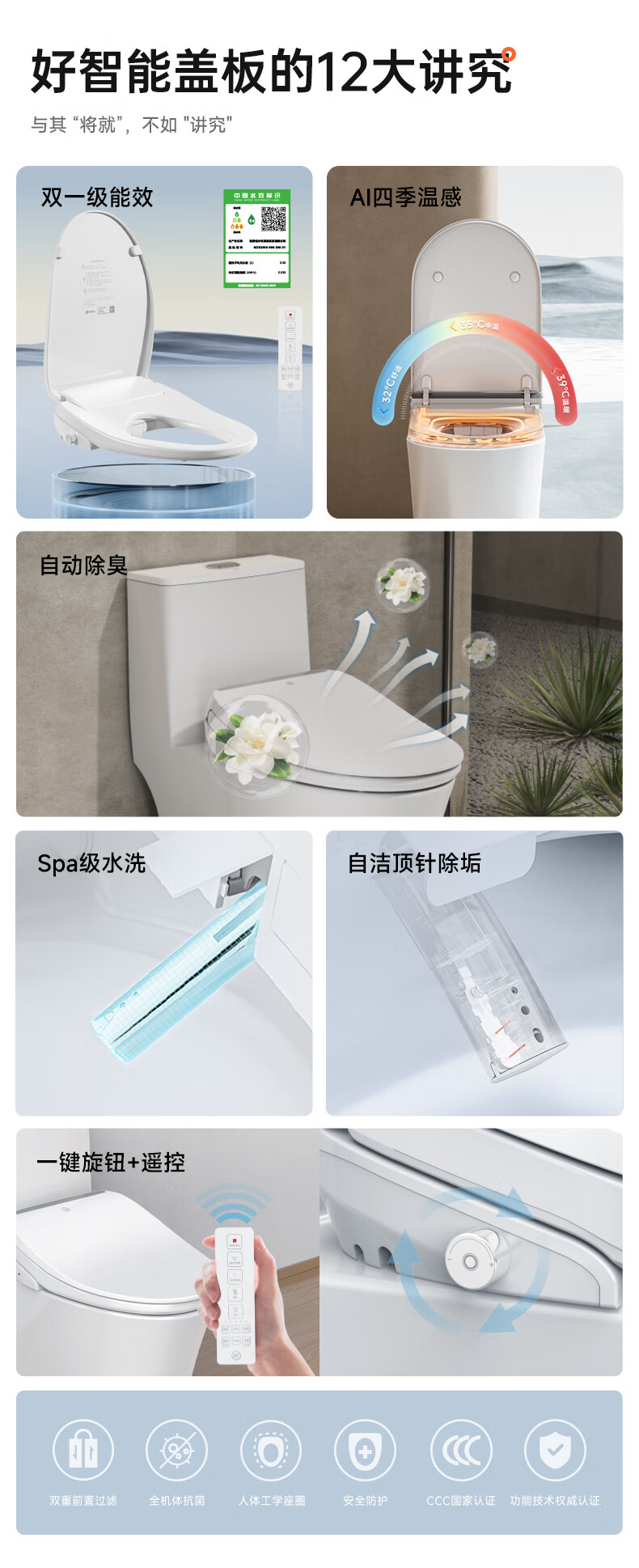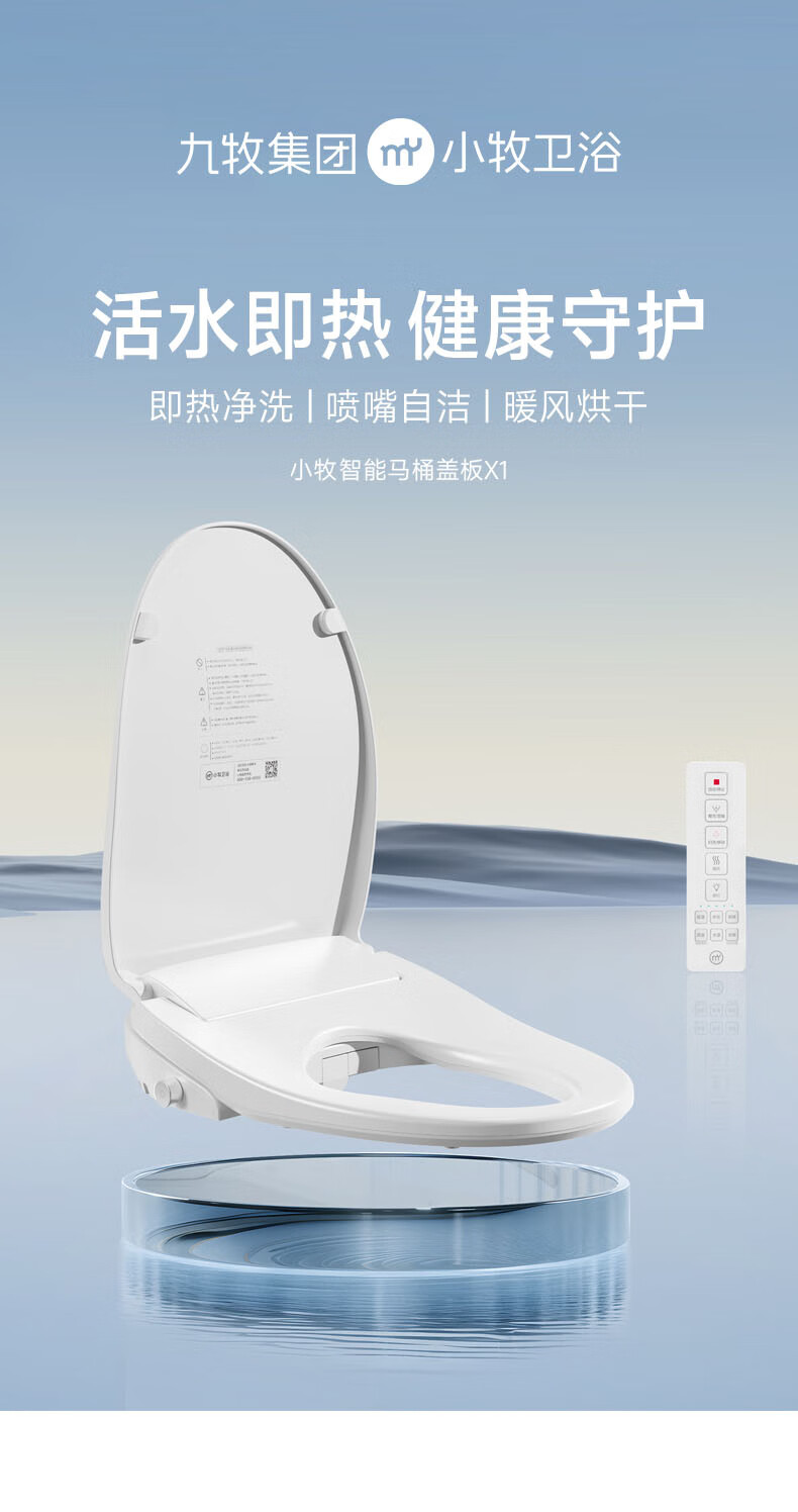 九牧(JOMOO)小牧卫浴智能马桶盖抗菌座圈即热加热臀部清洁全自动暖风烘干 X1基础款-按摩清洗 座圈加热
