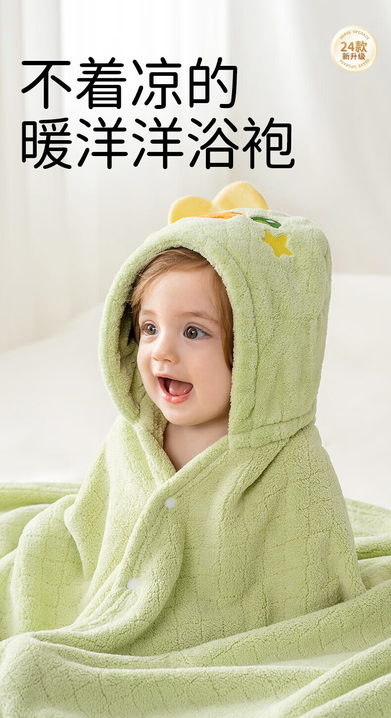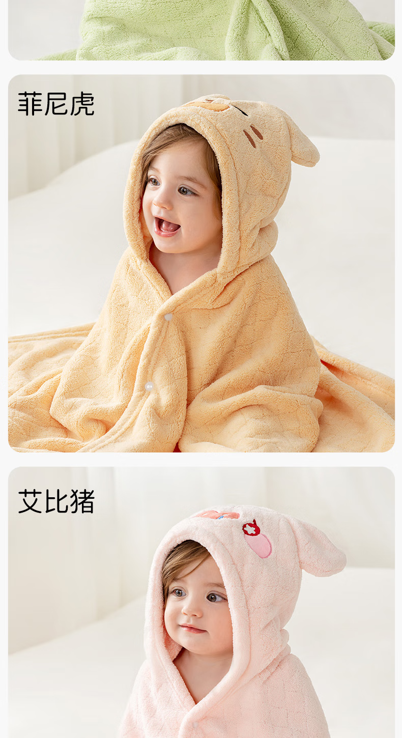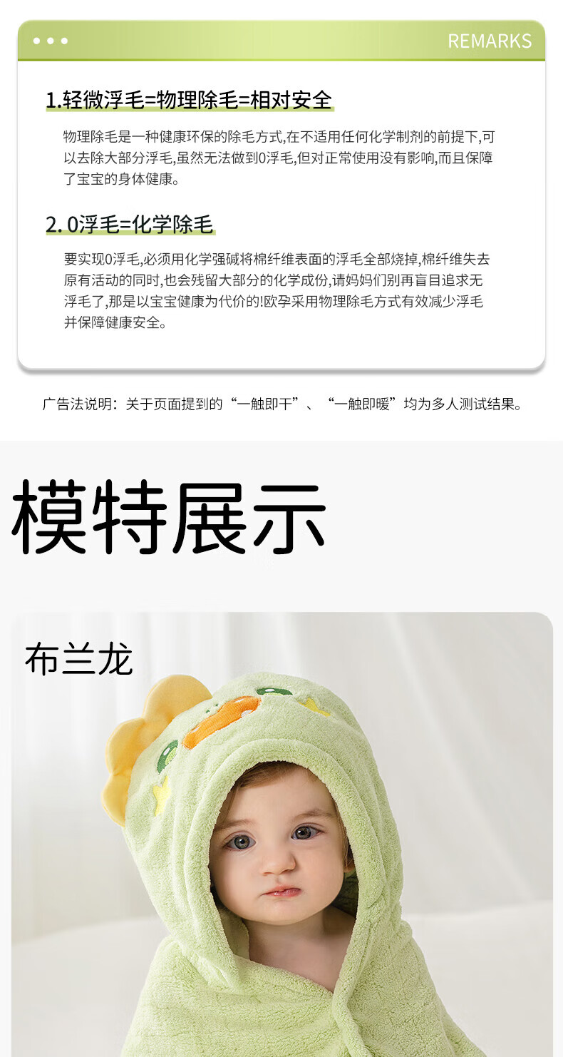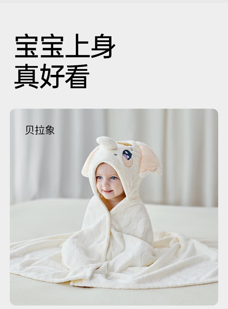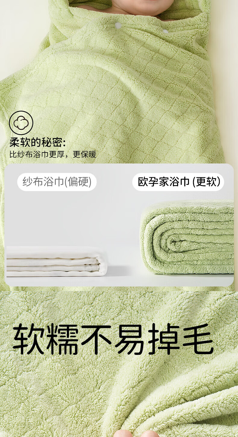 欧孕(OUYUN)婴儿浴巾柔吸水新生宝宝速干浴袍初生洗澡儿童毛巾被春 布兰龙【7A抗菌 防静电】 135x65cm
