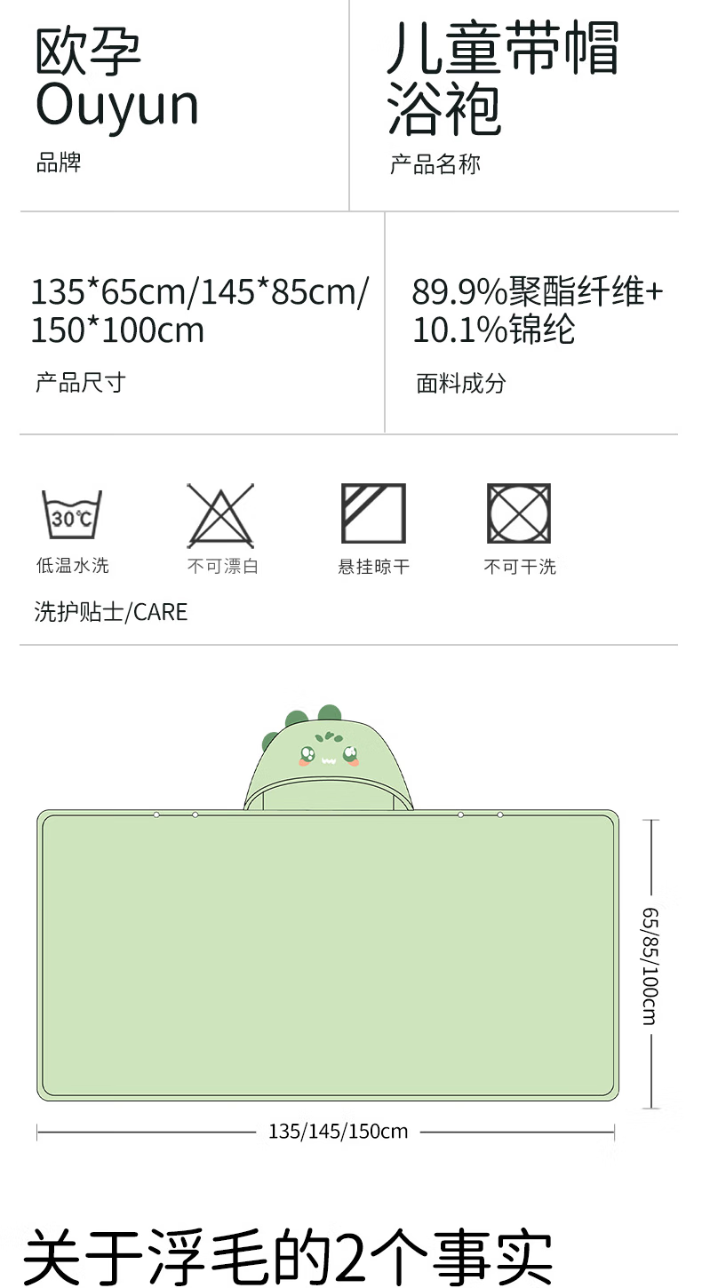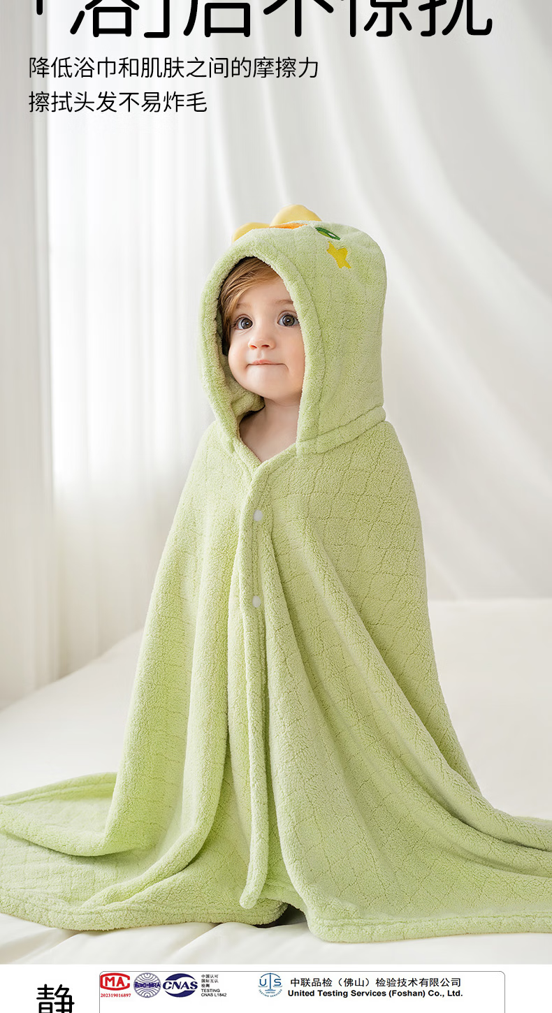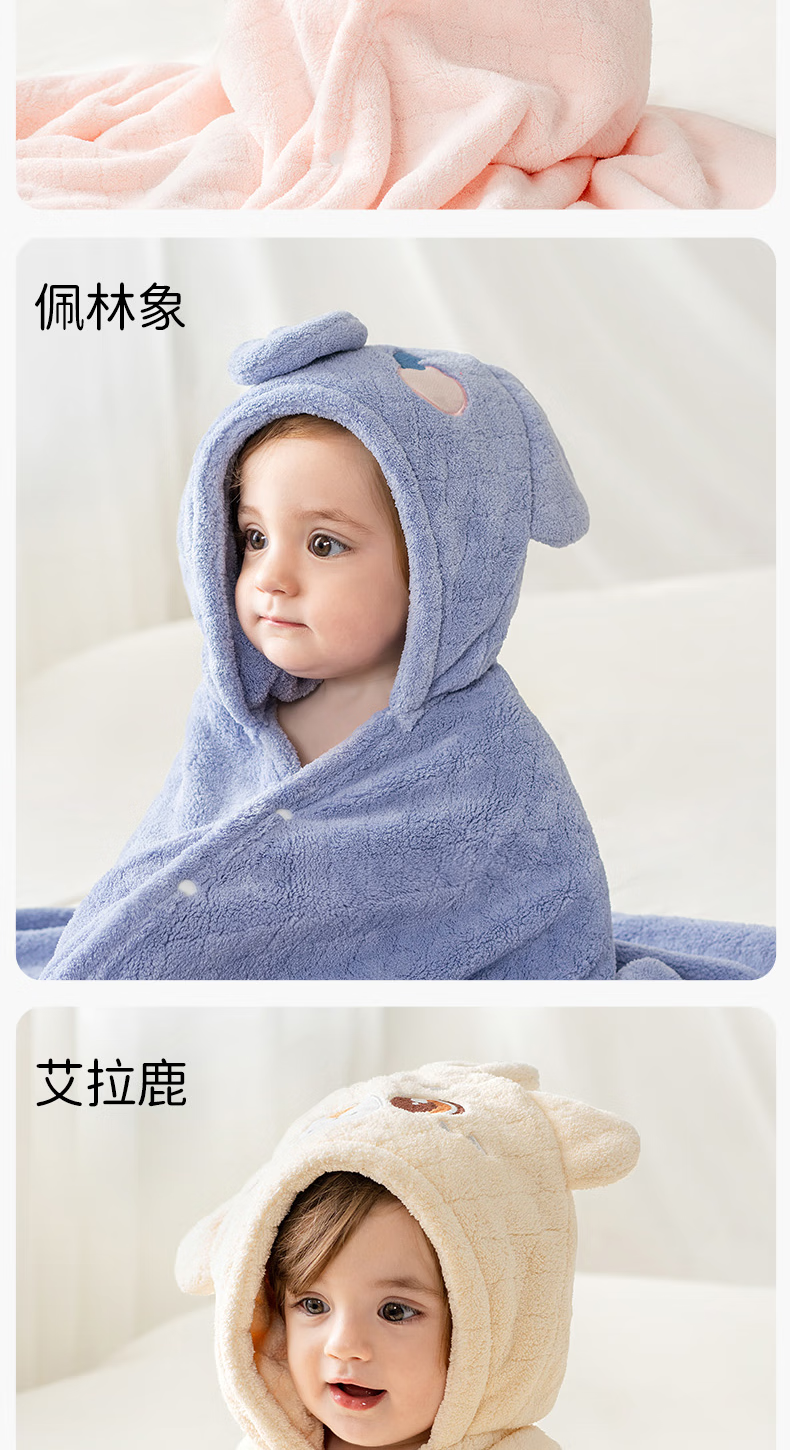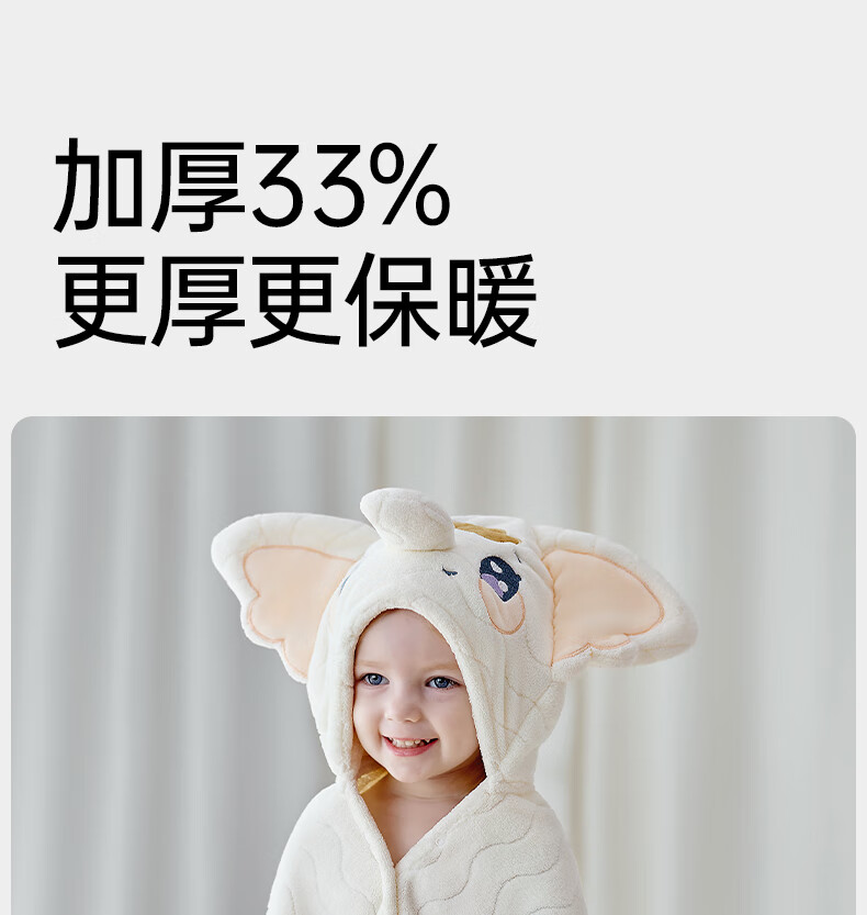 欧孕(OUYUN)婴儿浴巾柔吸水新生宝宝速干浴袍初生洗澡儿童毛巾被春 布兰龙【7A抗菌 防静电】 135x65cm