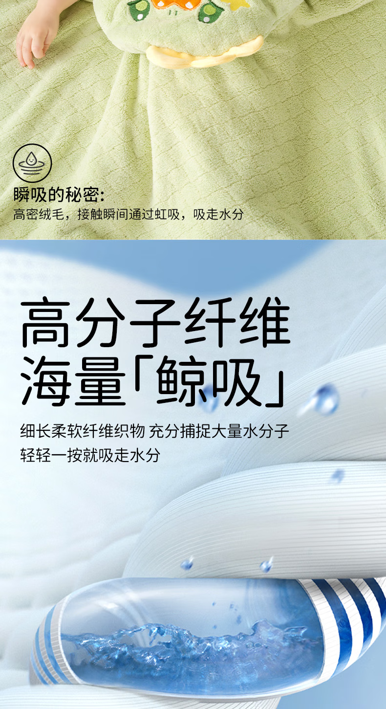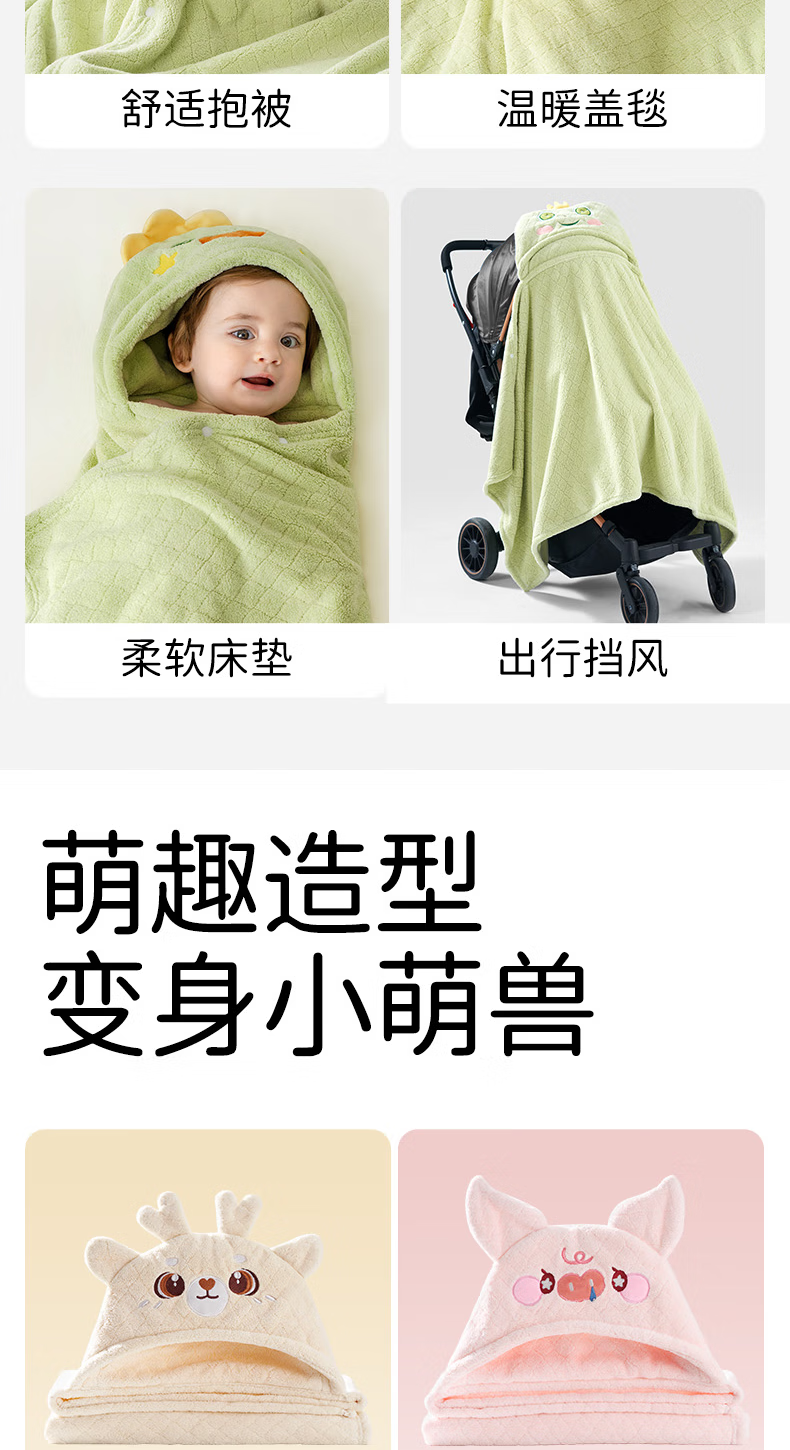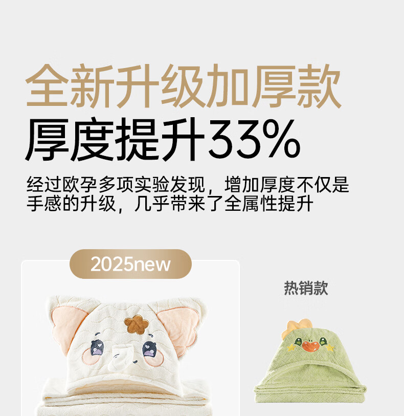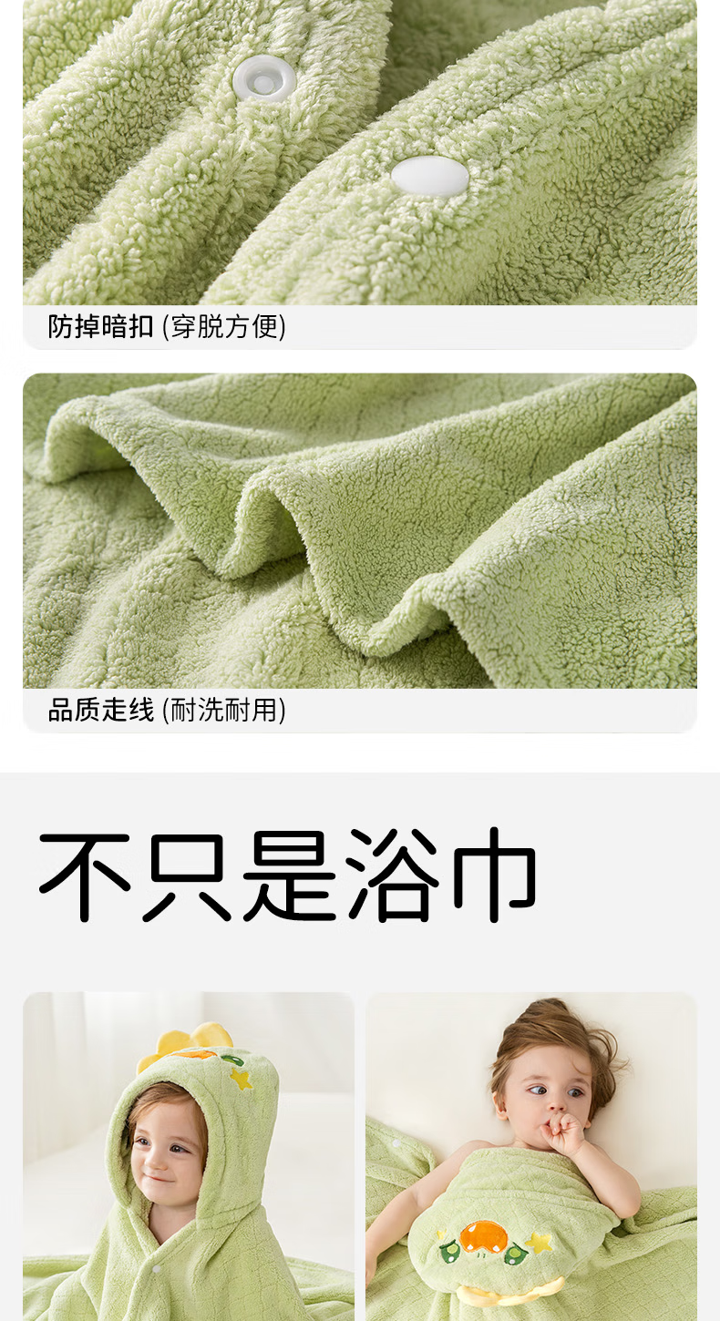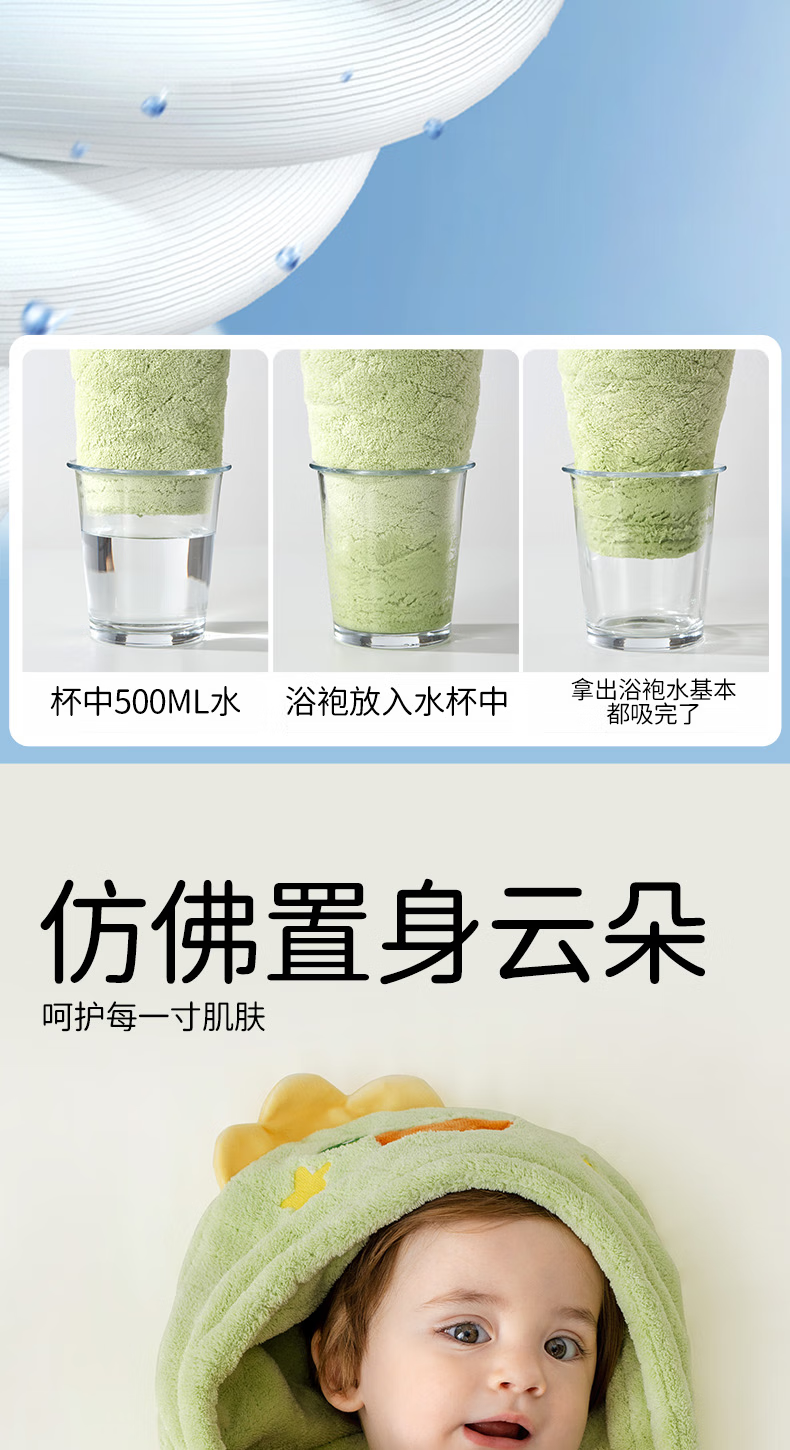 欧孕(OUYUN)婴儿浴巾柔吸水新生宝宝速干浴袍初生洗澡儿童毛巾被春 布兰龙【7A抗菌 防静电】 135x65cm