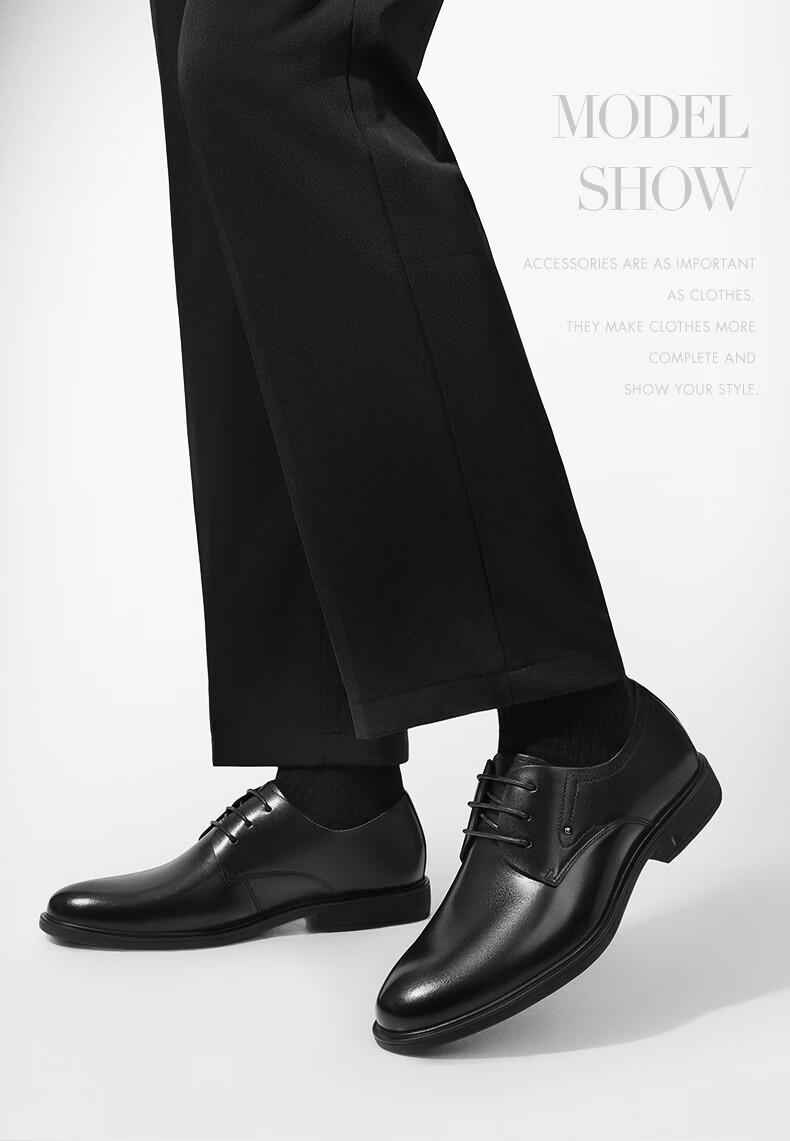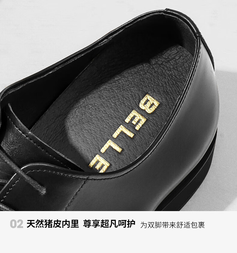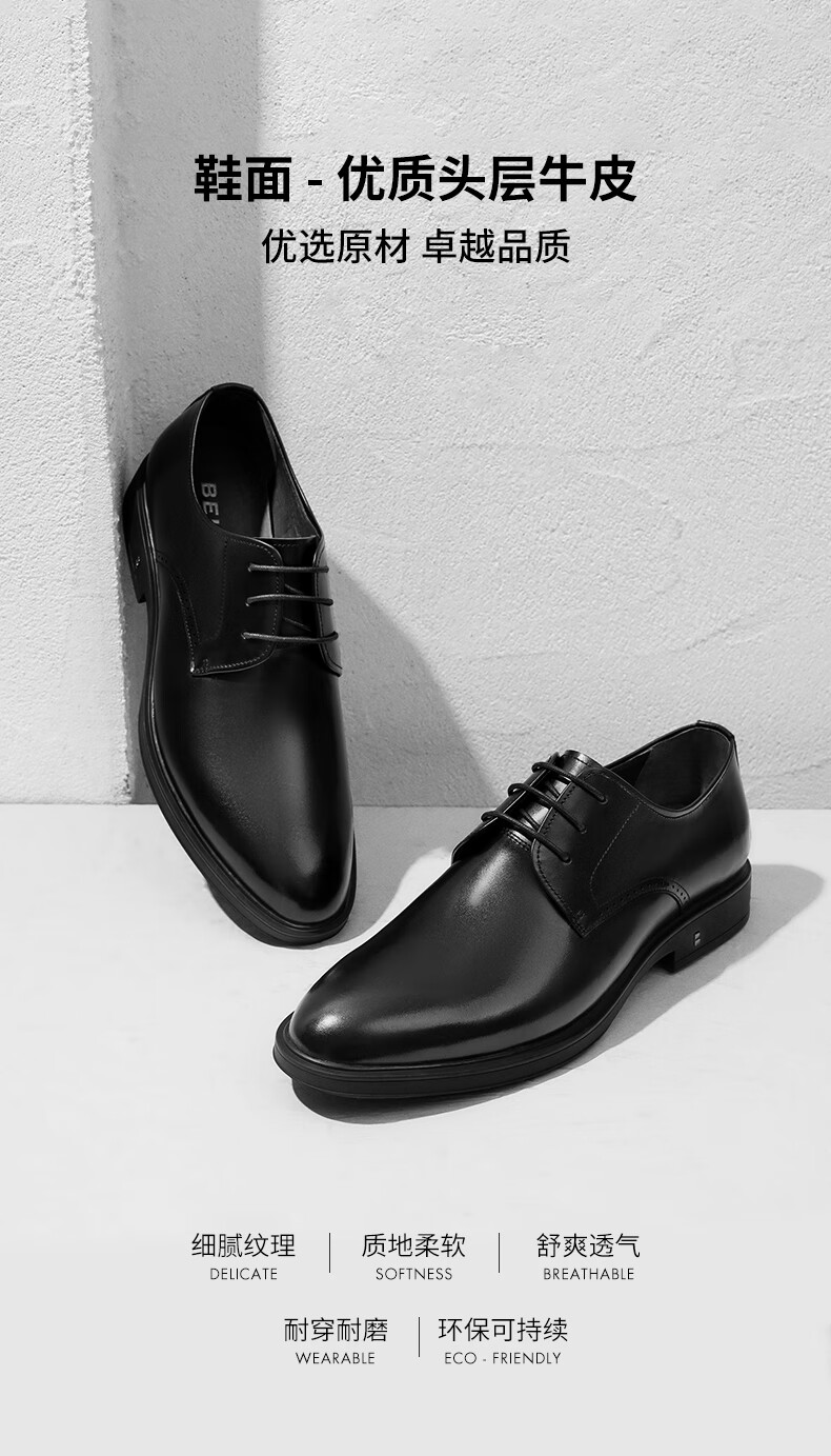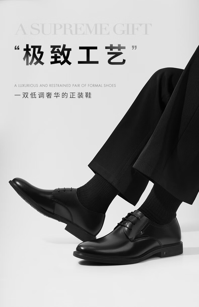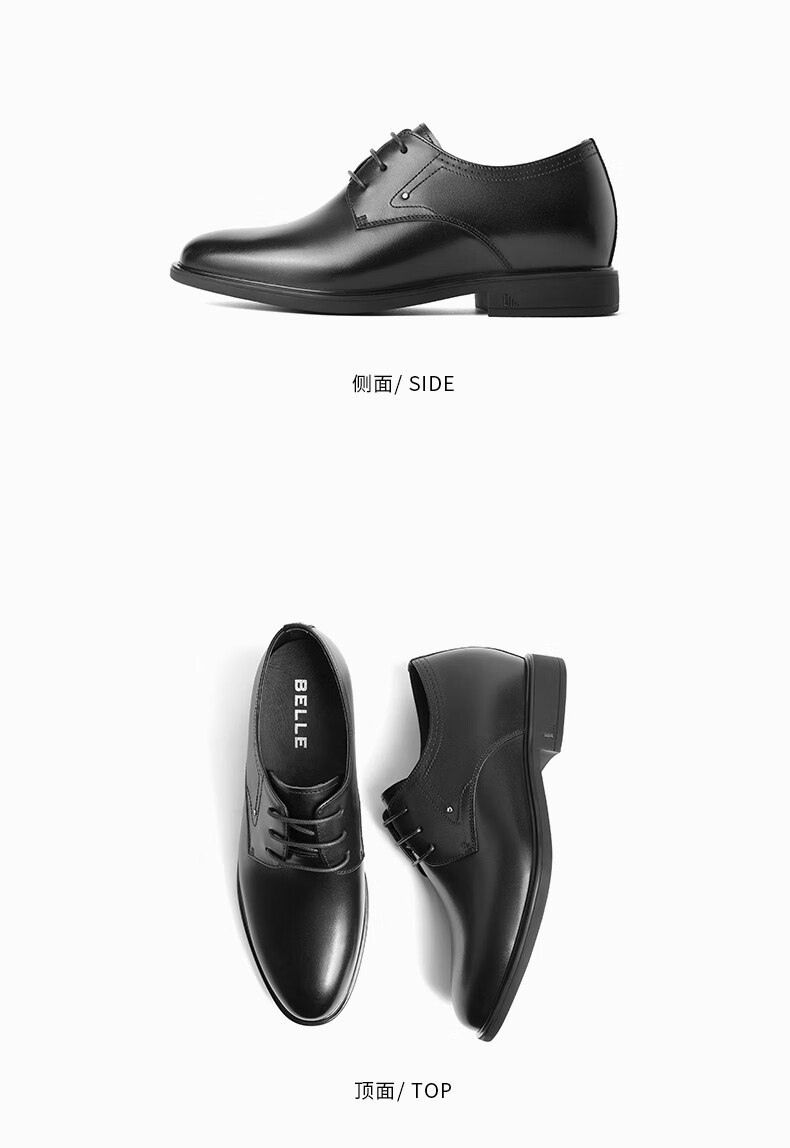 百丽男鞋商务正装皮鞋休闲增高软底真皮鞋10503AM0 黑色-经典版 41