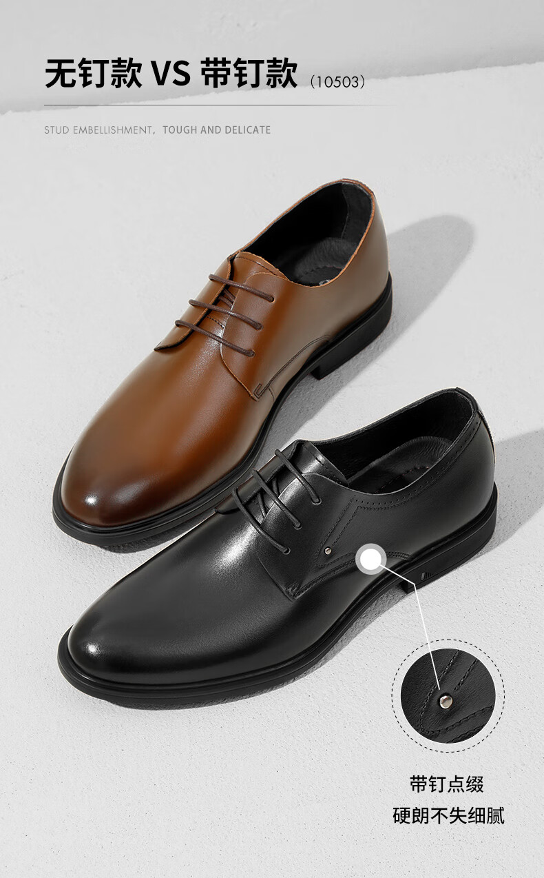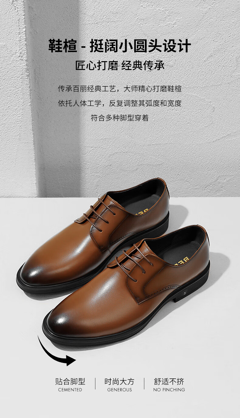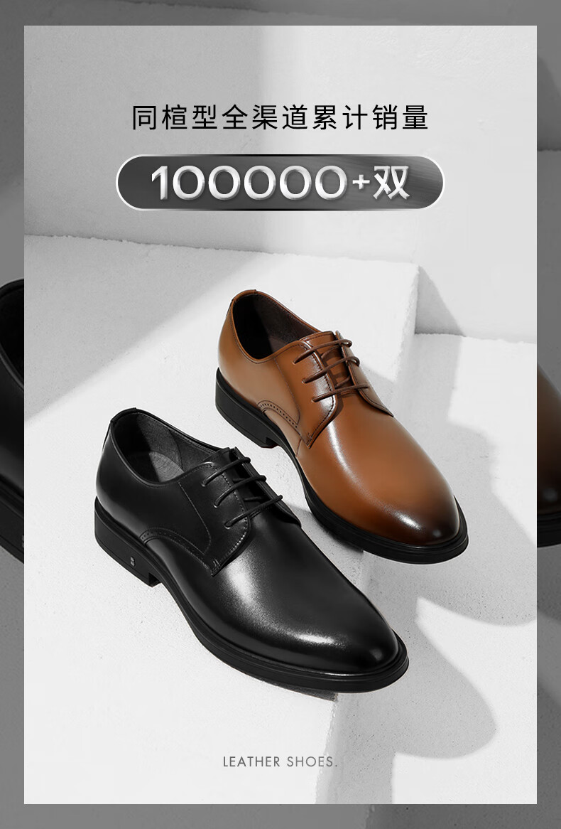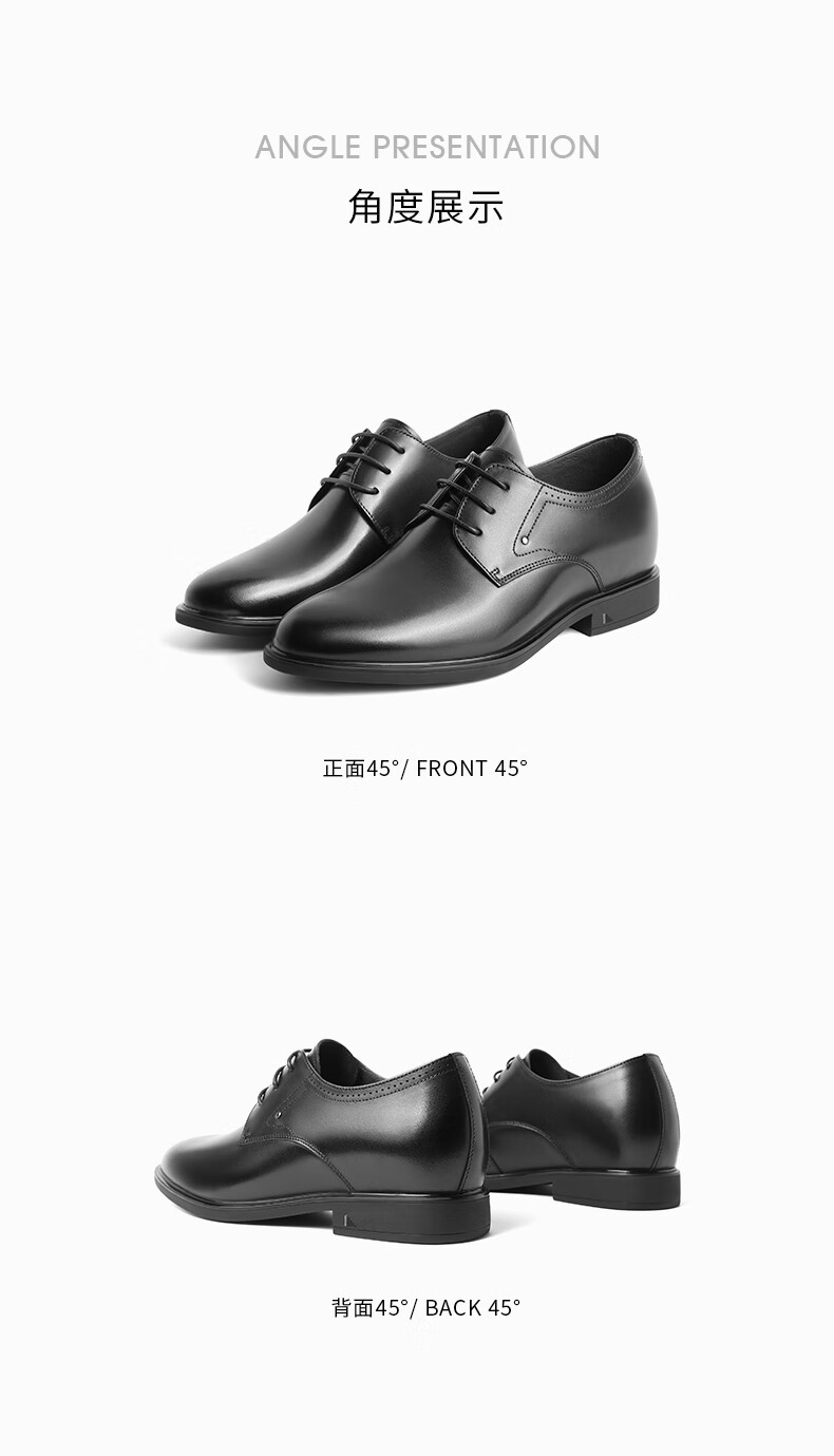 百丽男鞋商务正装皮鞋休闲增高软底真皮鞋10503AM0 黑色-经典版 41
