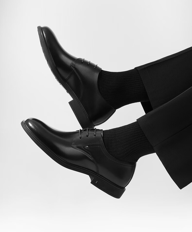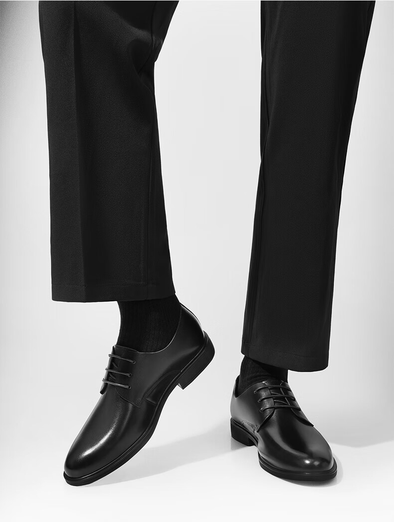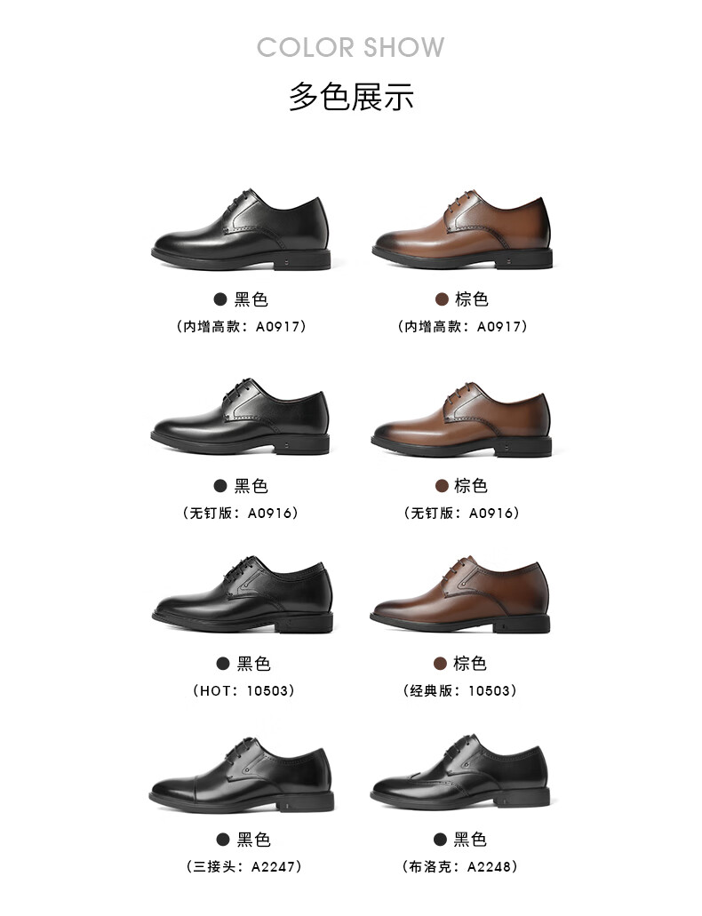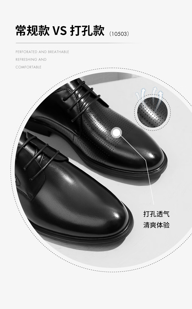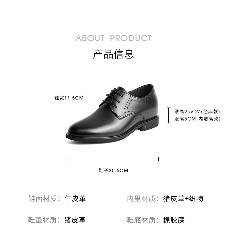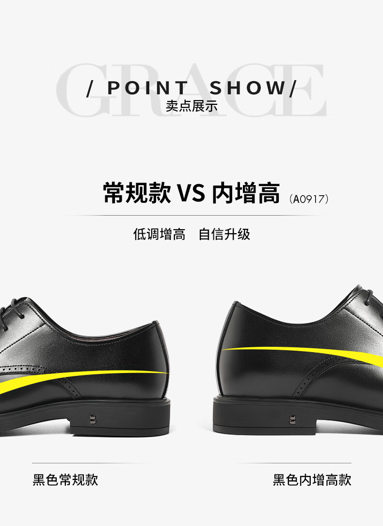 百丽男鞋商务正装皮鞋休闲增高软底真皮鞋10503AM0 黑色-经典版 41