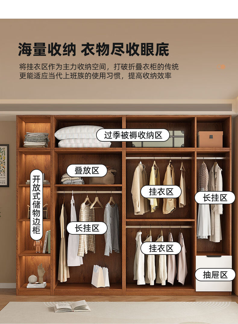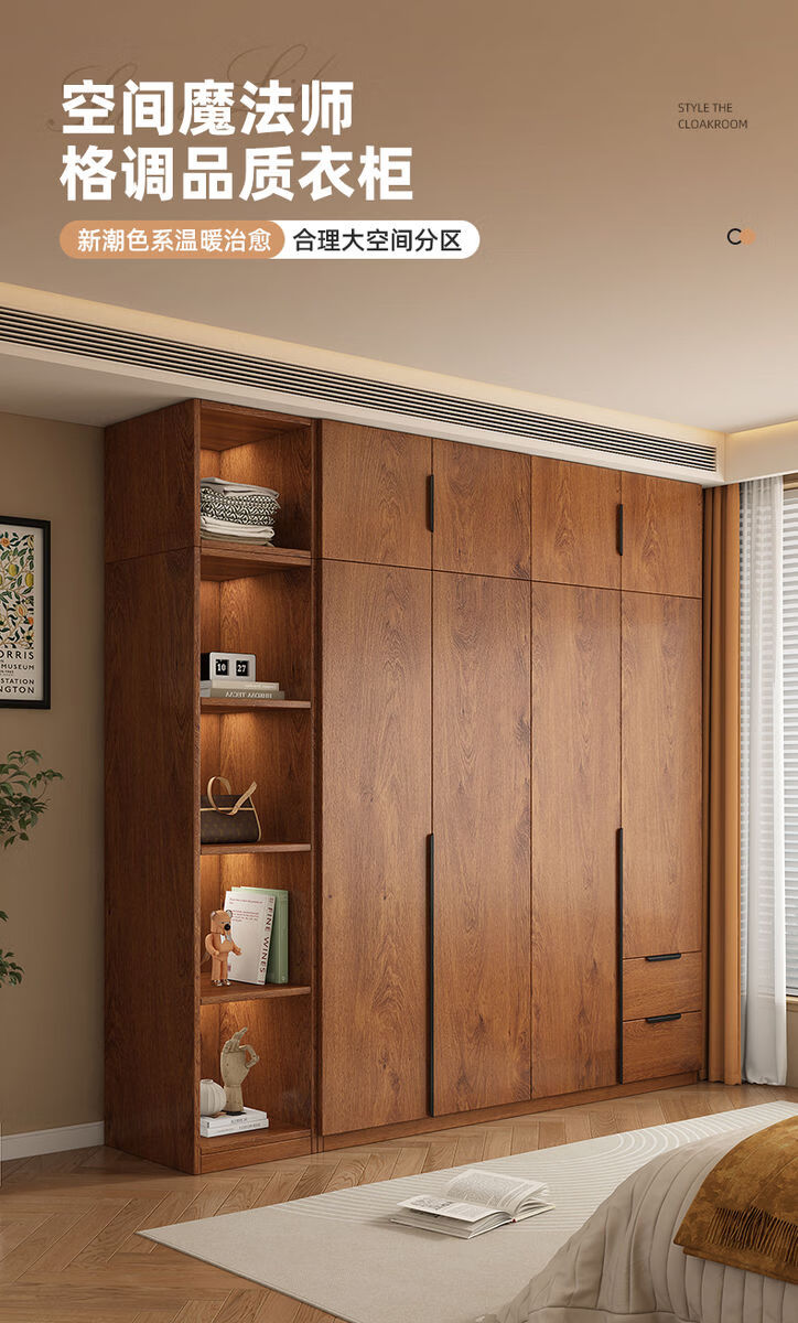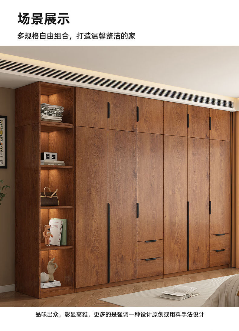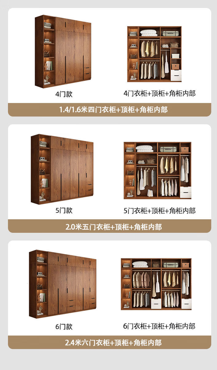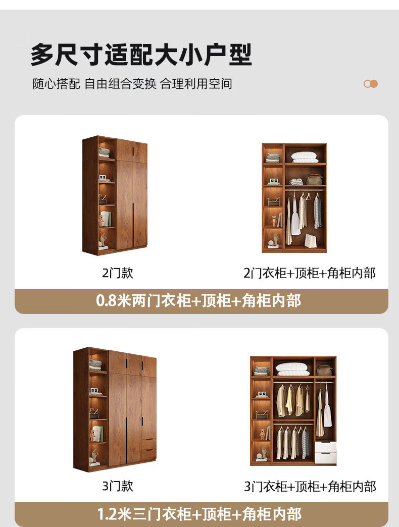 溥畔衣柜家用卧室2025新款爆款简易收纳柜子出租房定制工厂直销挂衣橱 [白胡色]240主柜+顶柜+角柜 包安装