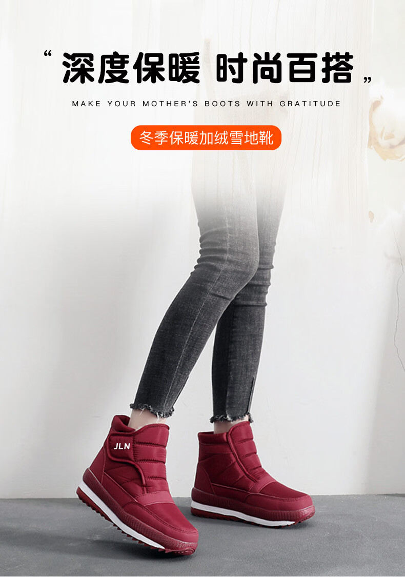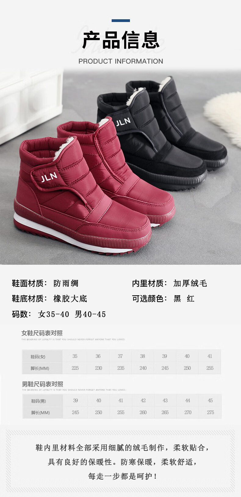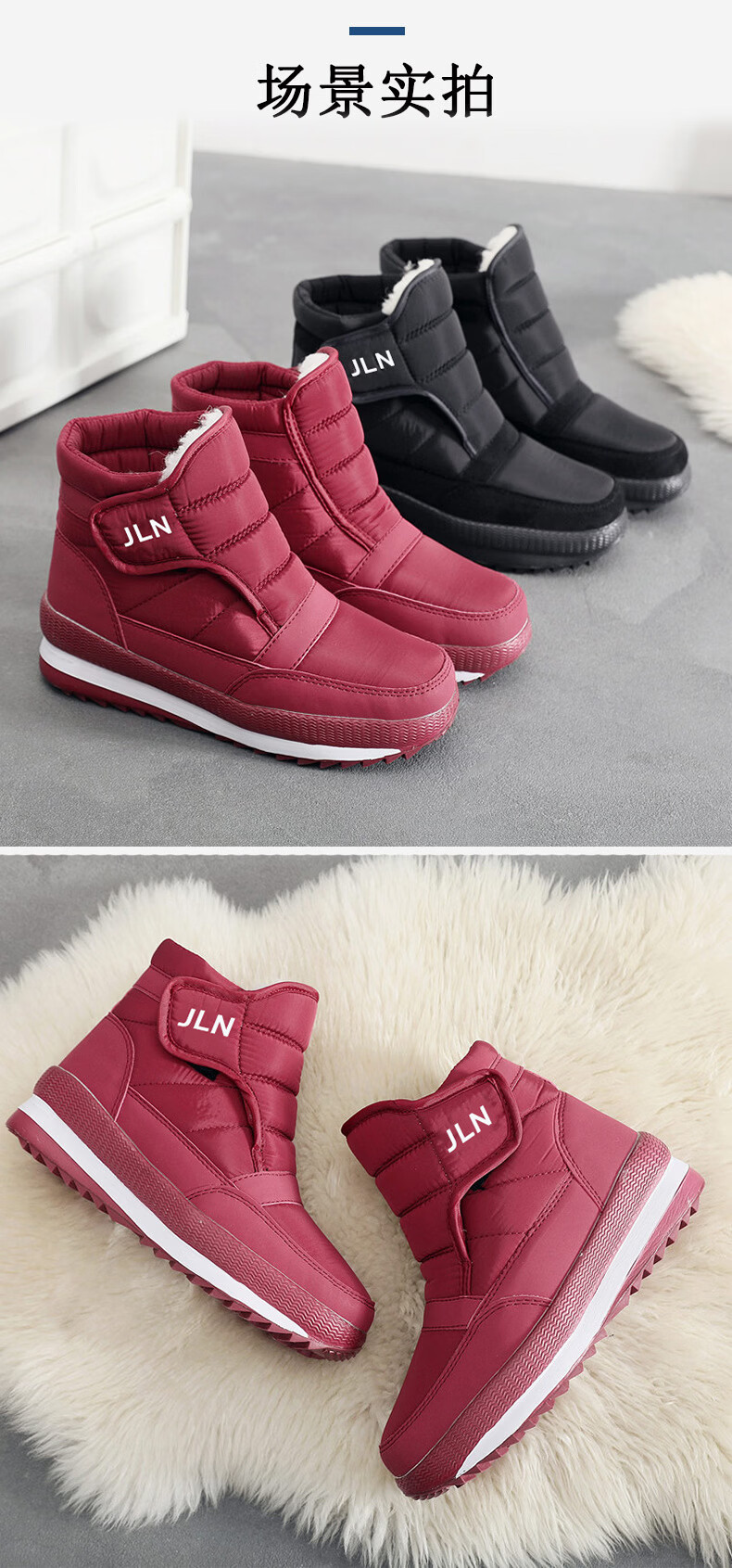 【精选】新款冬季雪地靴男鞋加绒加厚女鞋防水高帮中老年人棉鞋保 2AL女红 35