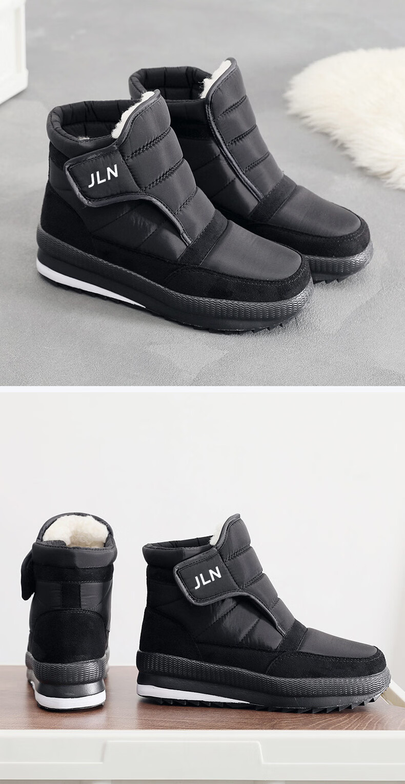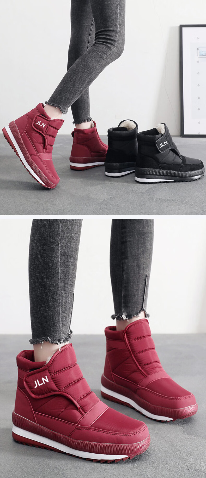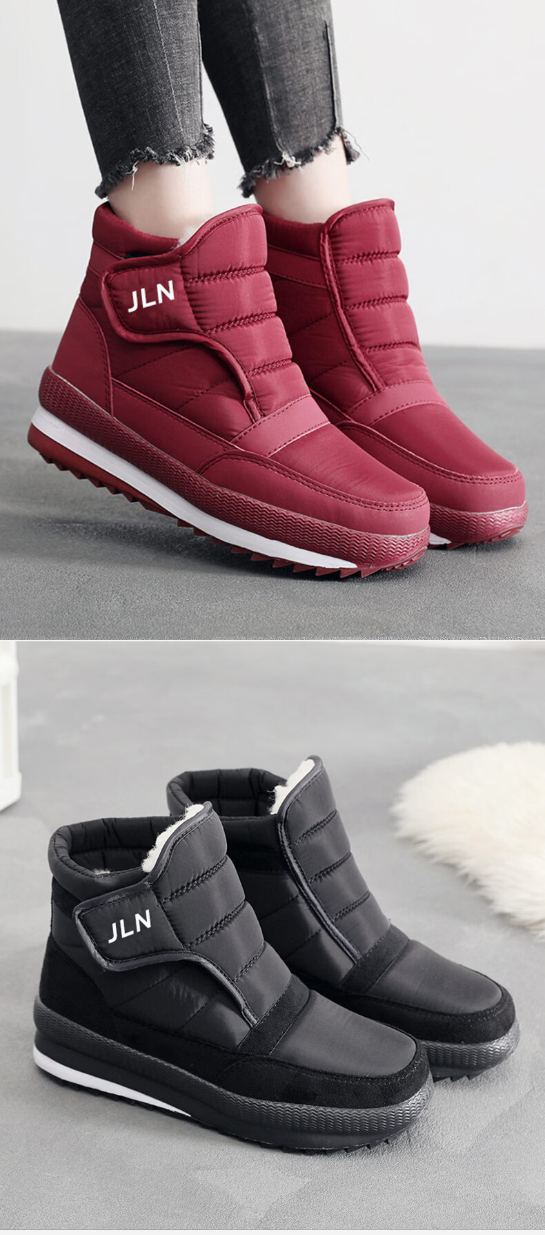 【精选】新款冬季雪地靴男鞋加绒加厚女鞋防水高帮中老年人棉鞋保 2AL女红 35