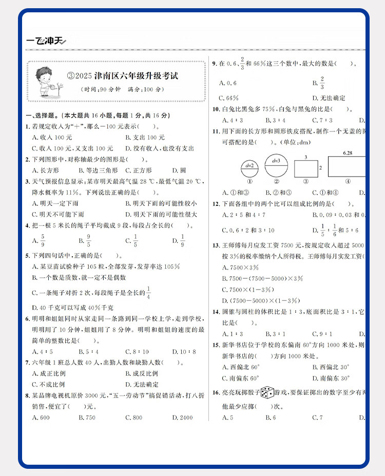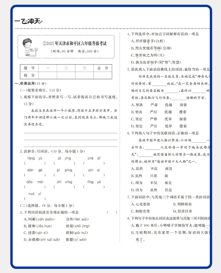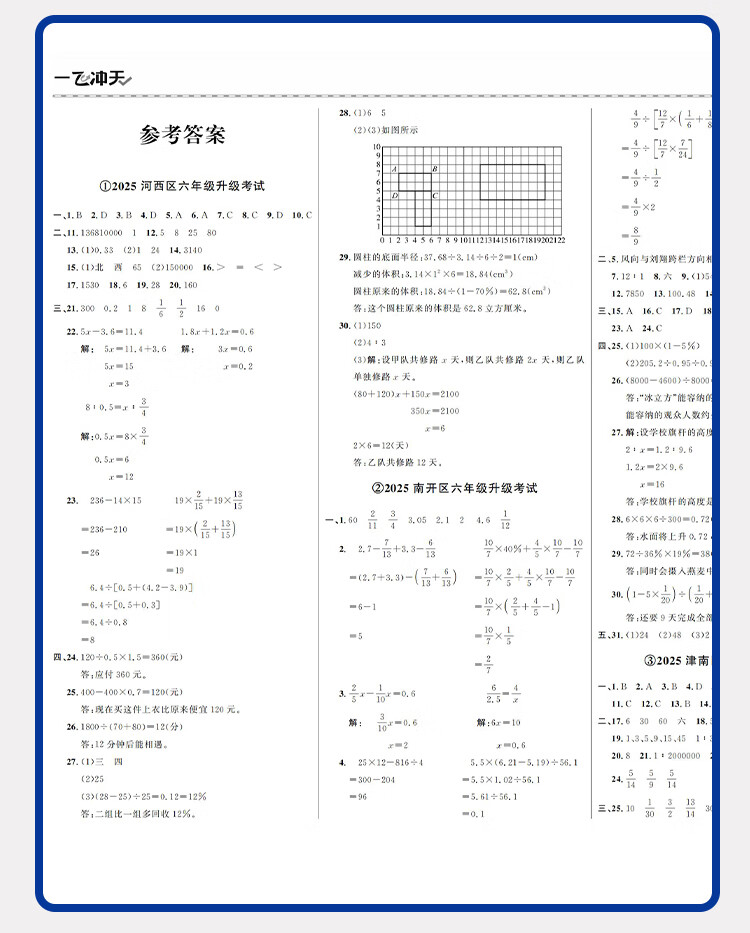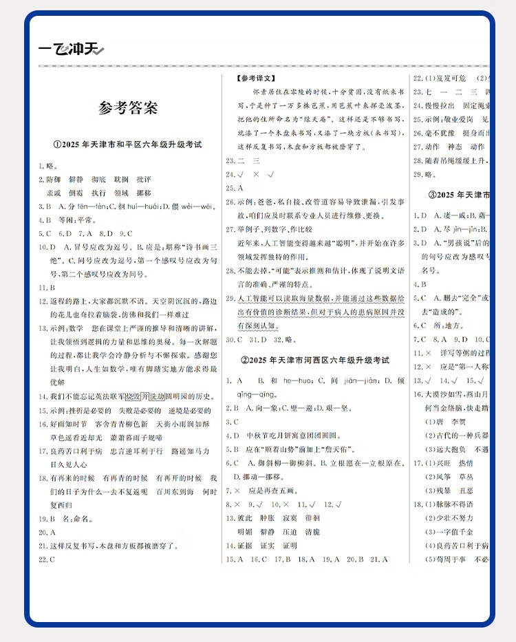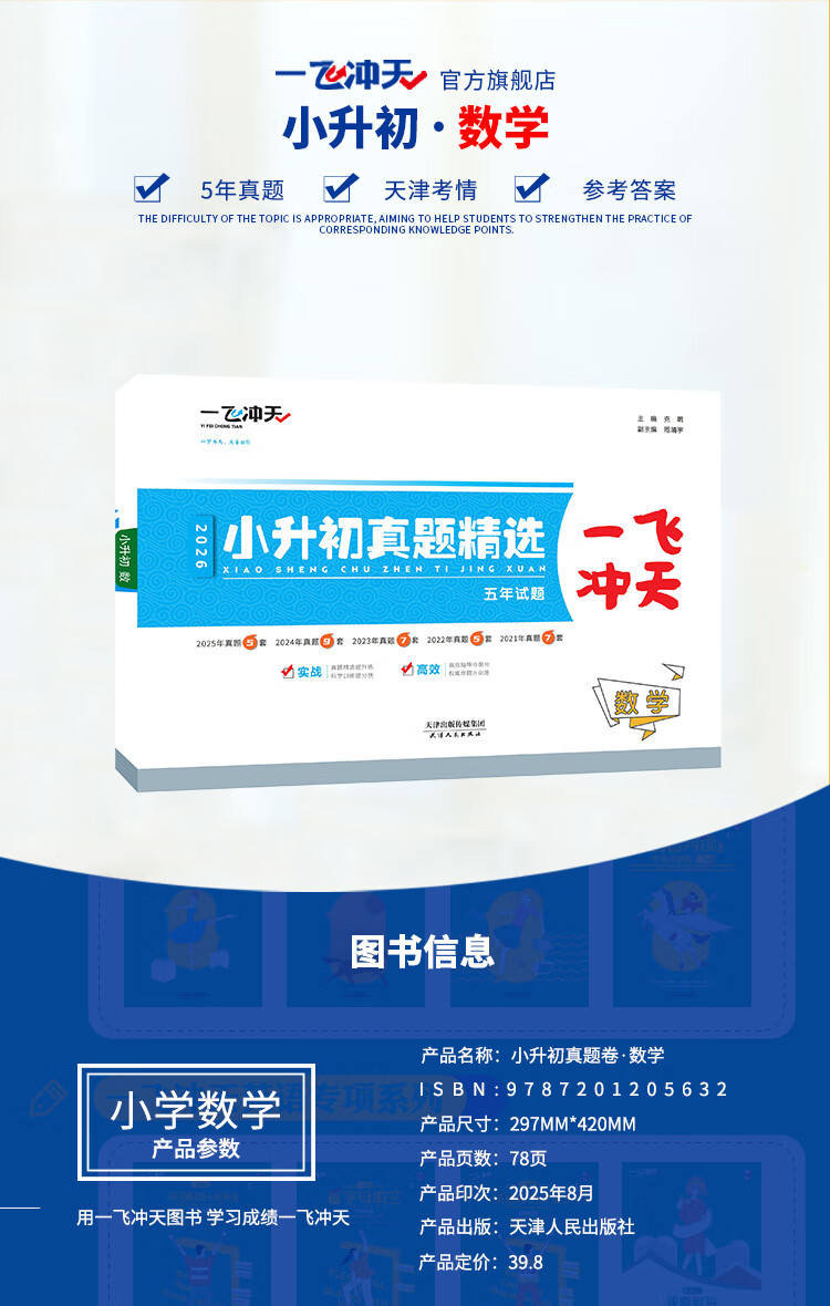 【新华书店正版】2026版一飞冲天小升初真题精选语文数学英语全套天津小升初真题卷历年毕业升学考试六升七年级小学升初衔接总复习试卷复习资料书 一飞冲天小升初真题精选 语数英3本