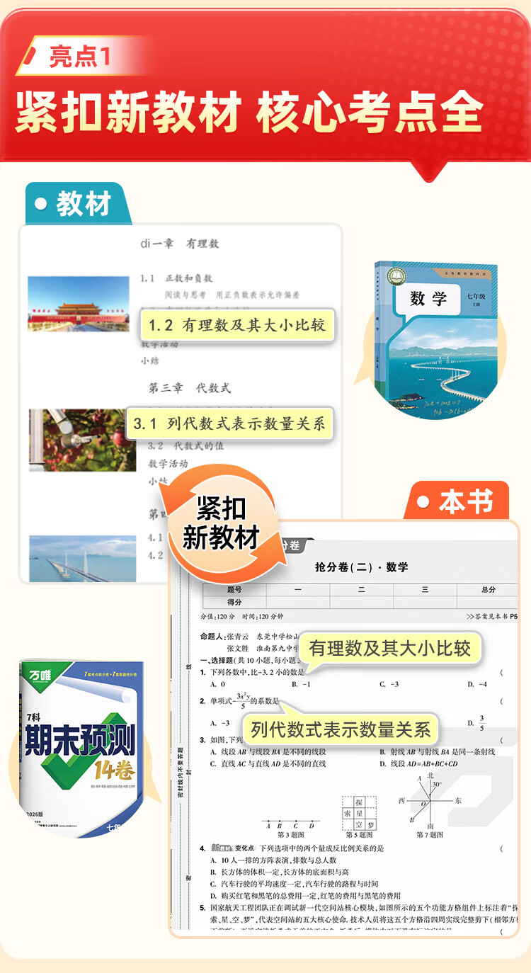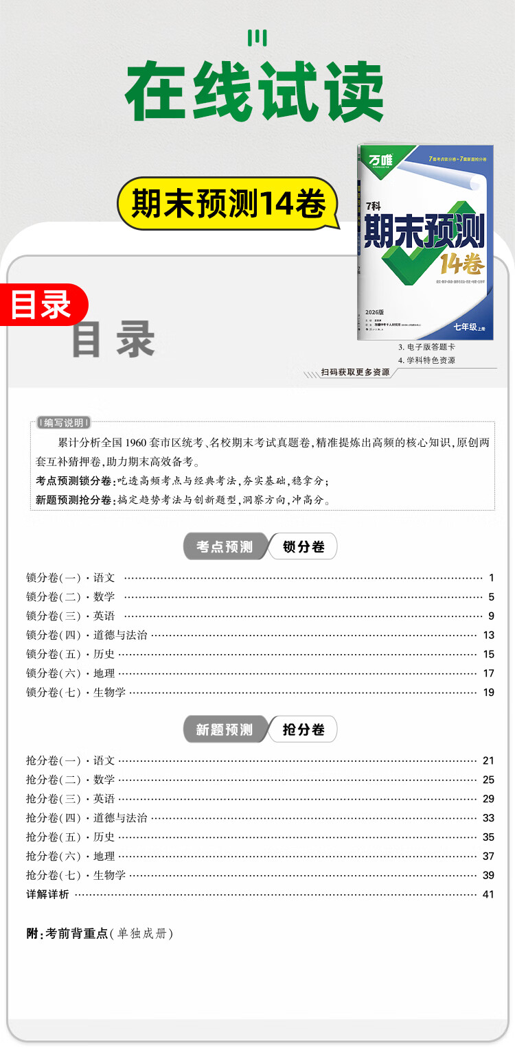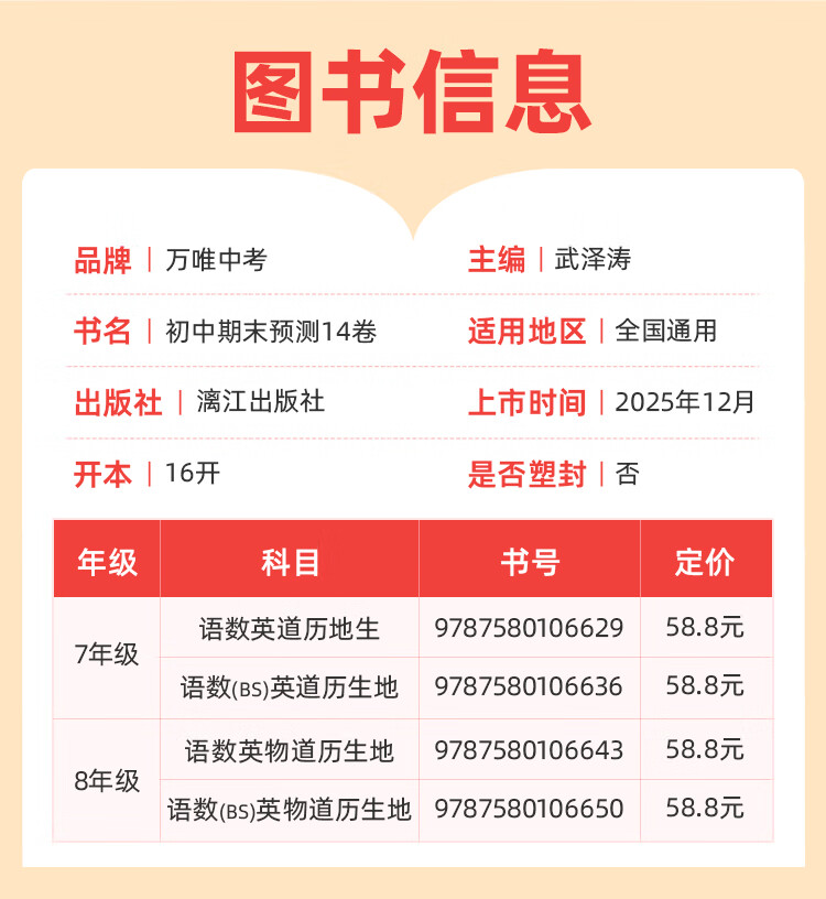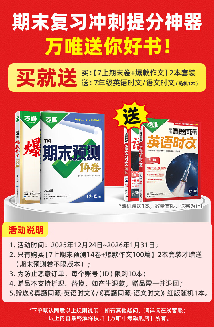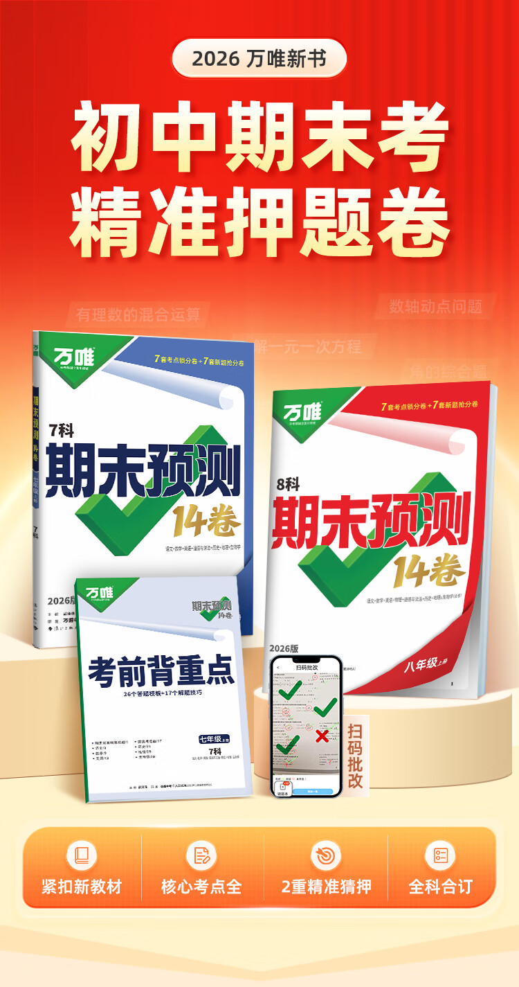 2026万唯中考初中期末预测14卷七八年级上册语文数学英语地理生物道法历史物理期末复习冲刺100分必刷题试卷教辅书万唯教育旗舰店 7上 语数英道历生地(7科合订)