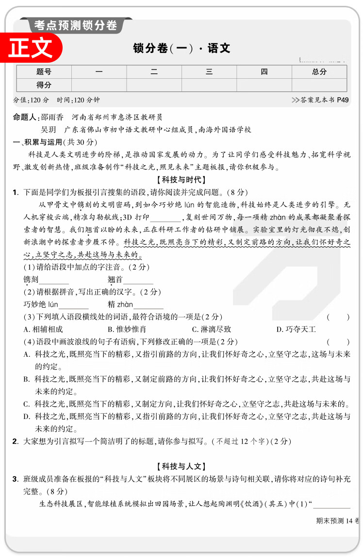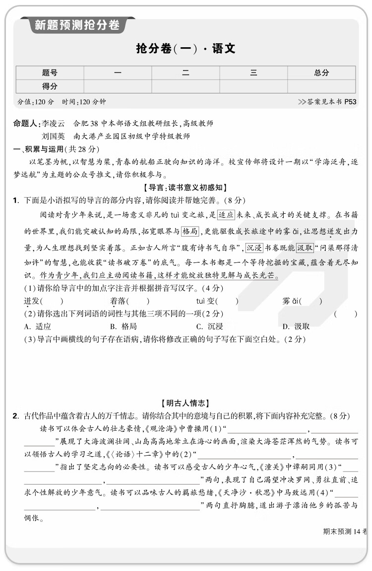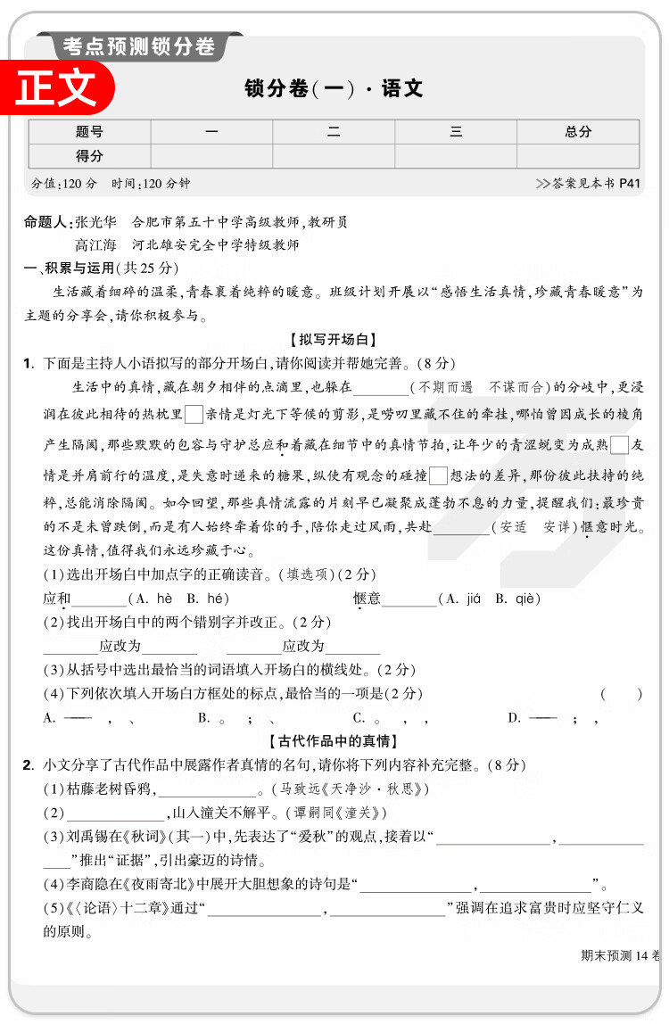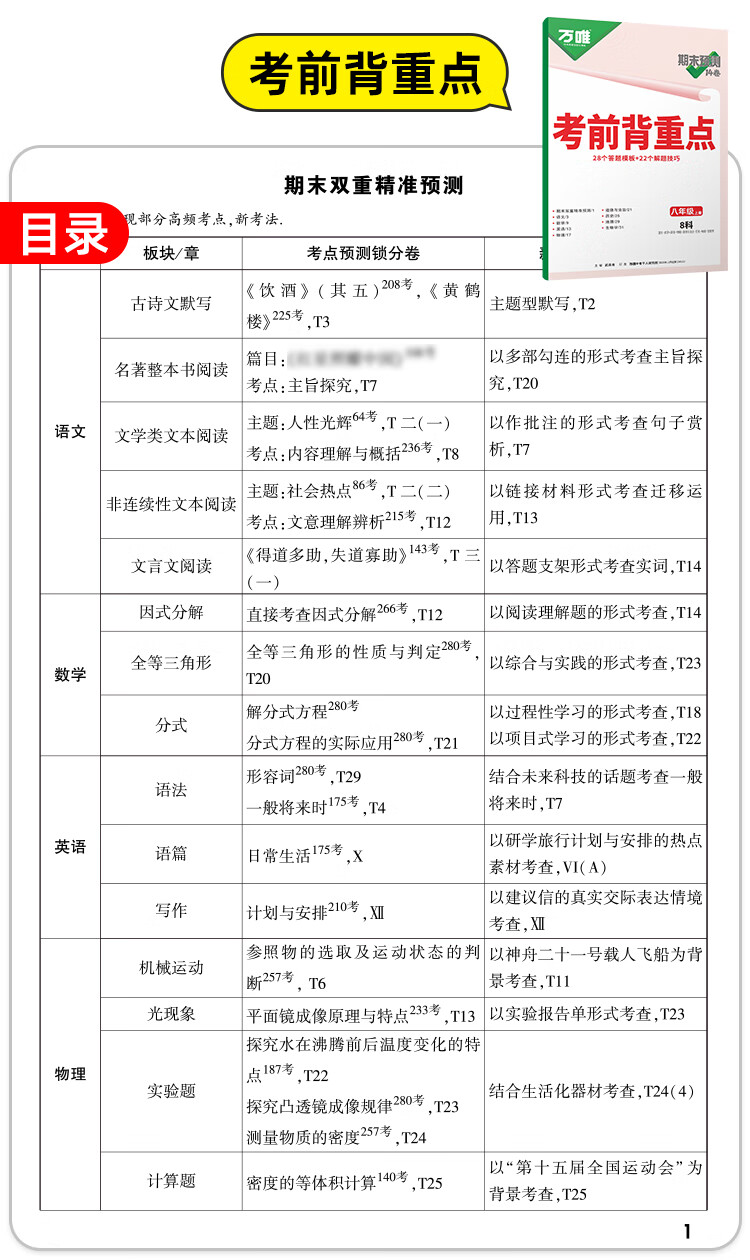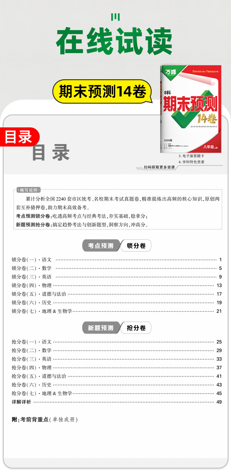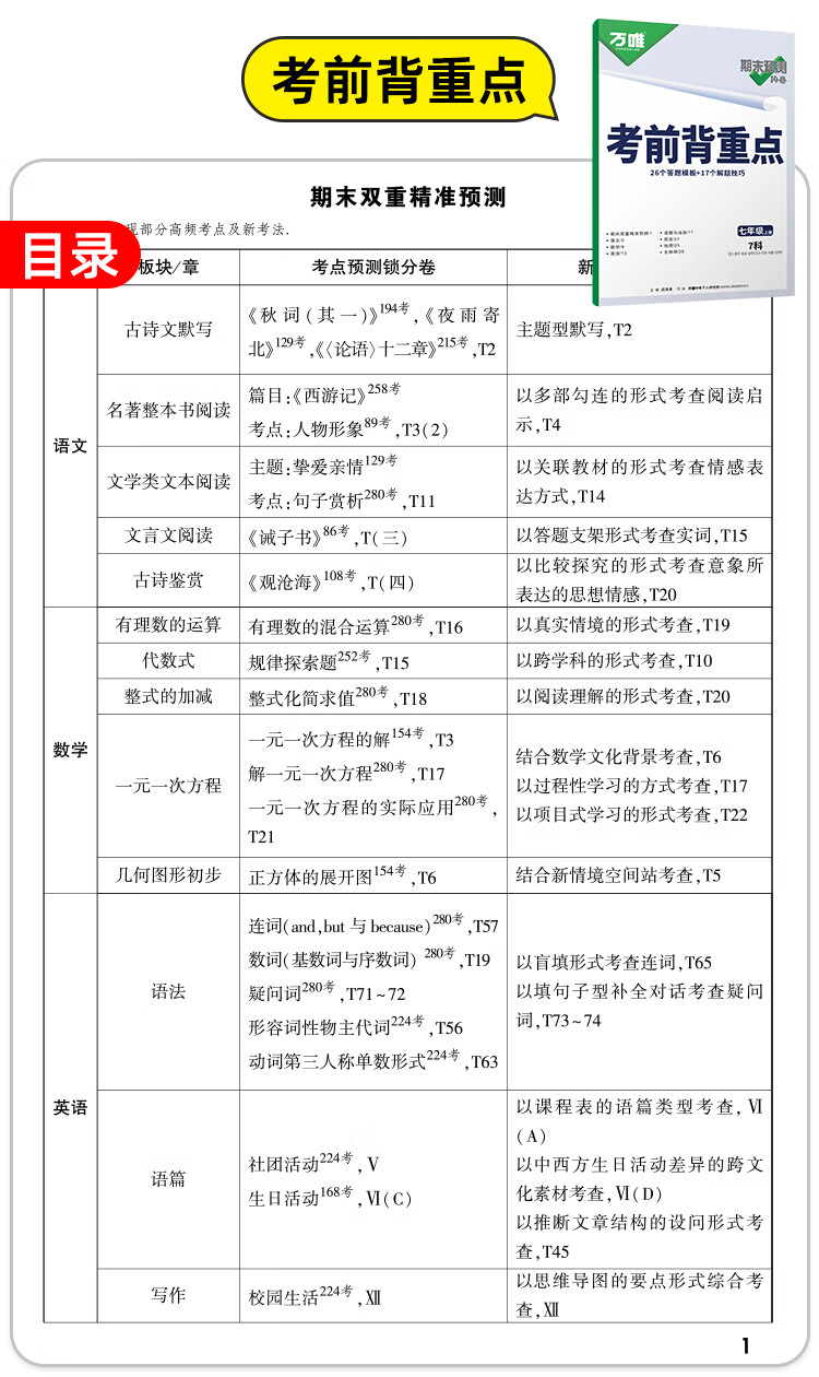 2026万唯中考初中期末预测14卷七八年级上册语文数学英语地理生物道法历史物理期末复习冲刺100分必刷题试卷教辅书万唯教育旗舰店 7上 语数英道历生地(7科合订)