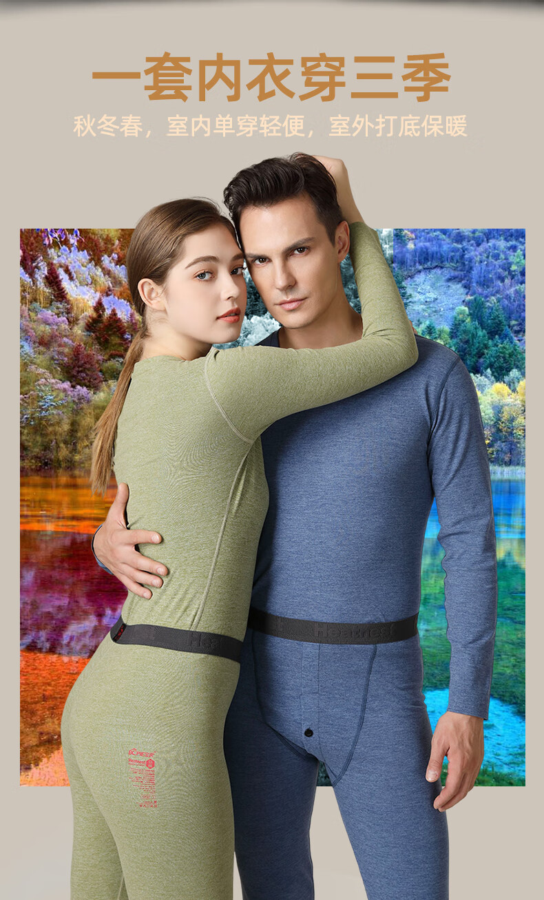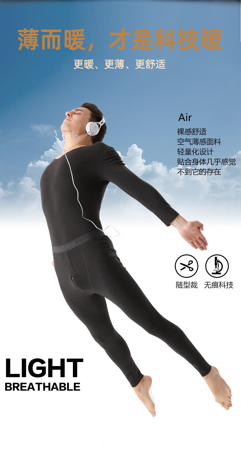 宝派保暖内衣套装男无痕羊绒暖护贴抗菌加绒圆领打底秋衣秋裤女秋冬季 羊绒暖护贴(线下护膝款)男黑灰 XL