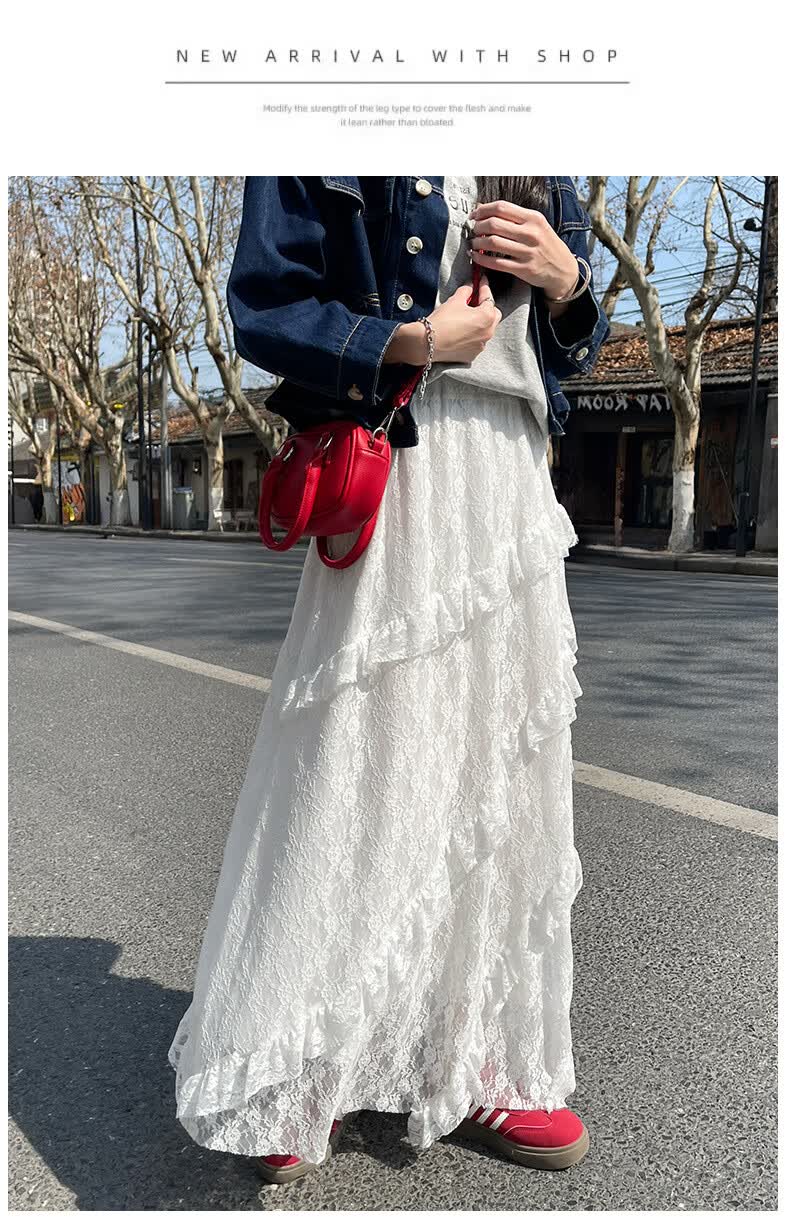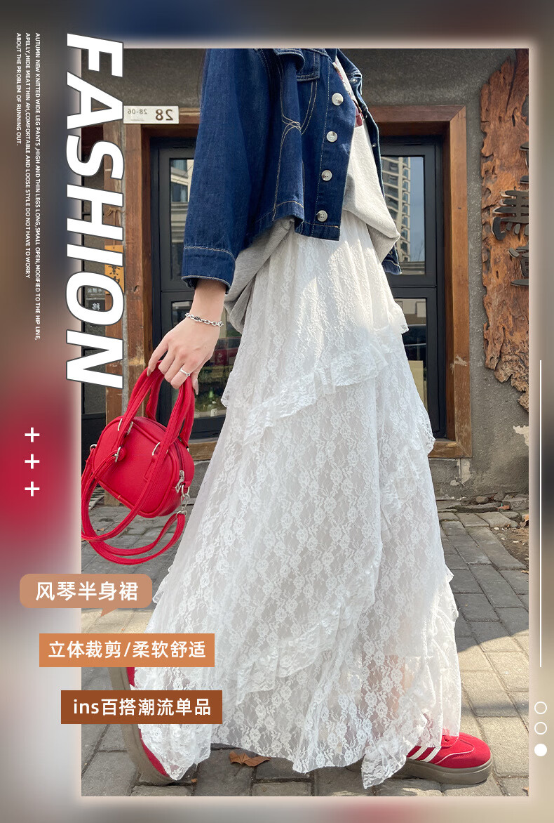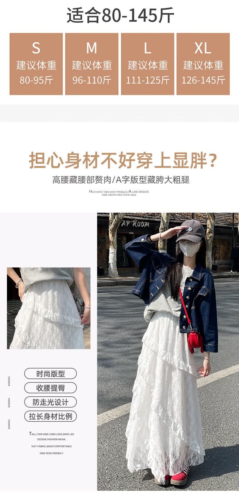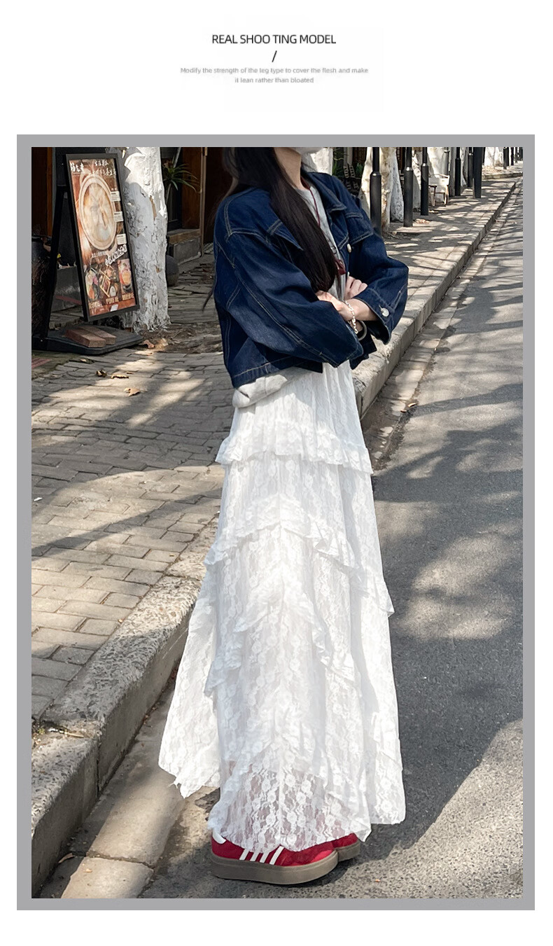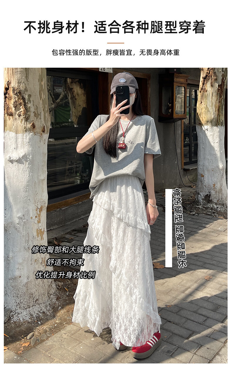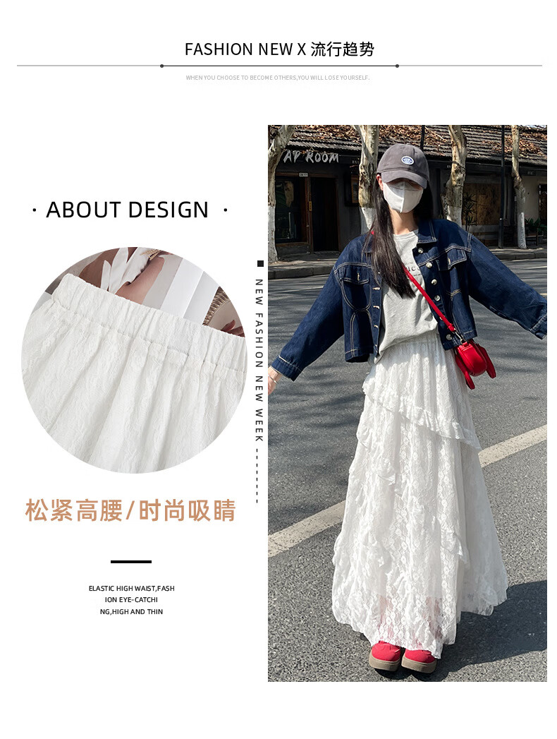 浪莎半身裙女夏季新款高级感高腰a字白色蛋糕裙小个子蓬蓬长裙 白色【双层防透升级常规款】 S 【80-95斤】
