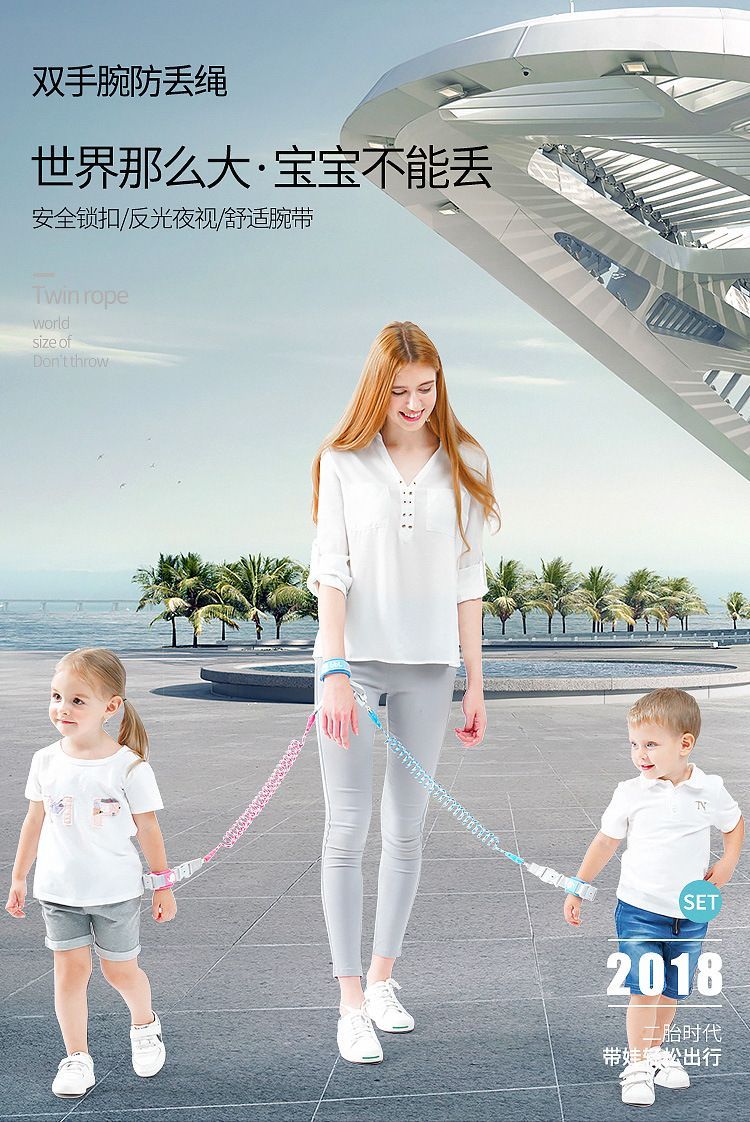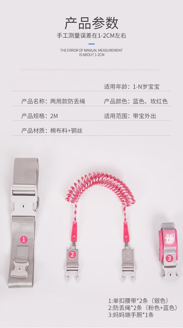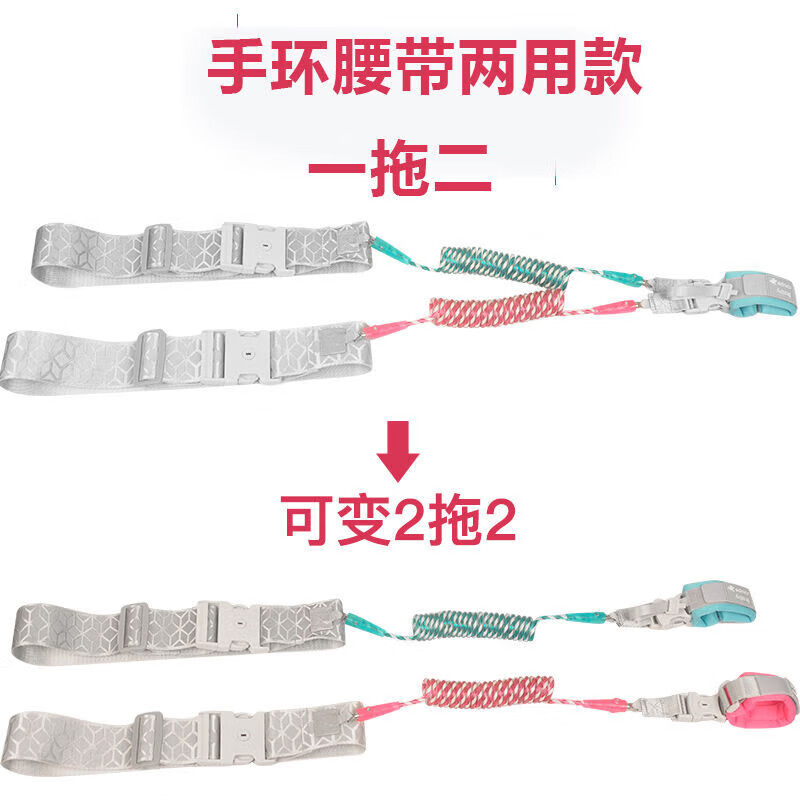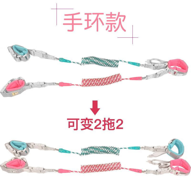 CLCEY双胞胎防走丢牵引绳儿童防走失绳一拖二安全手环学步溜娃牵引绳 粉绿两宝变形手环款 2.5米