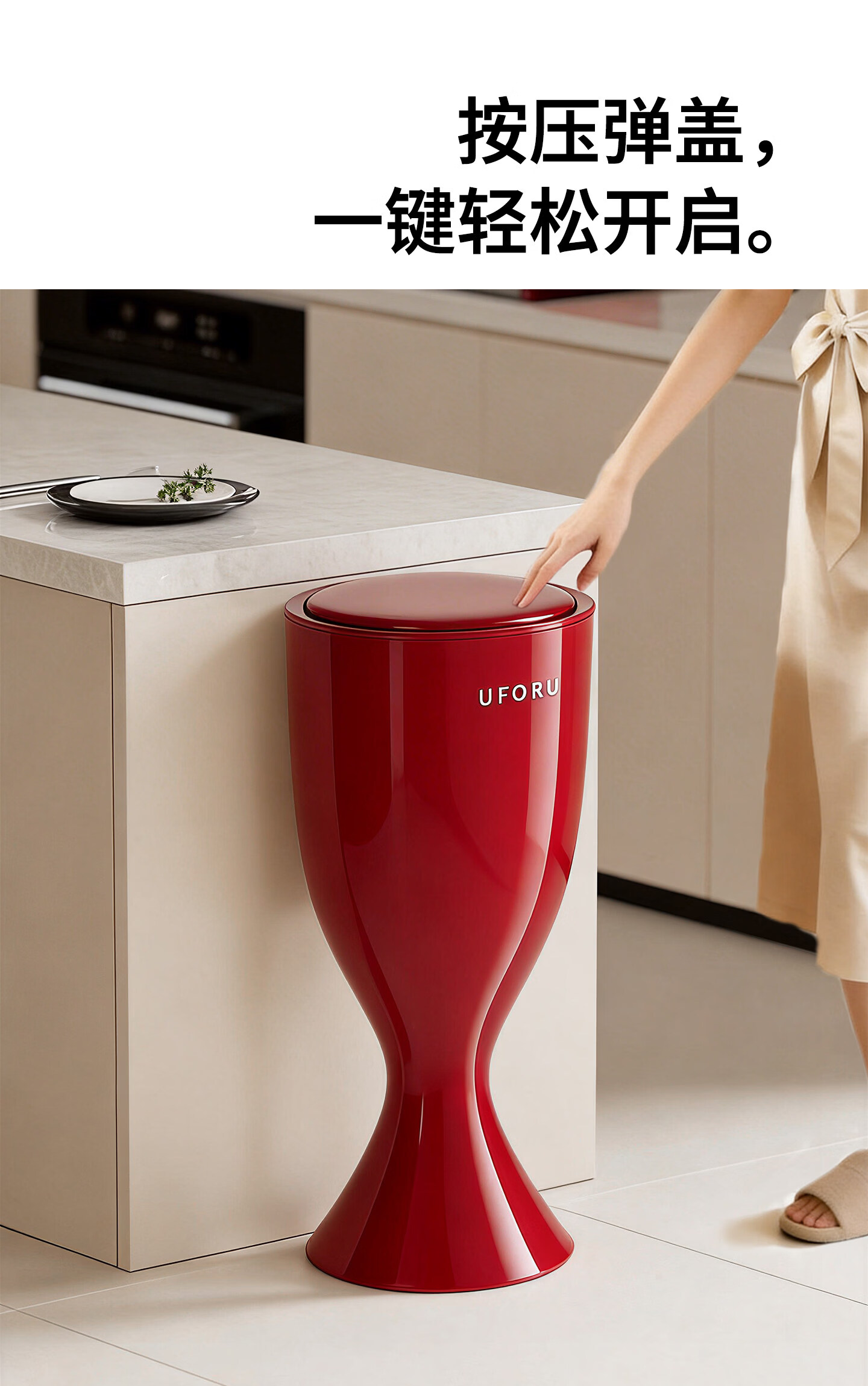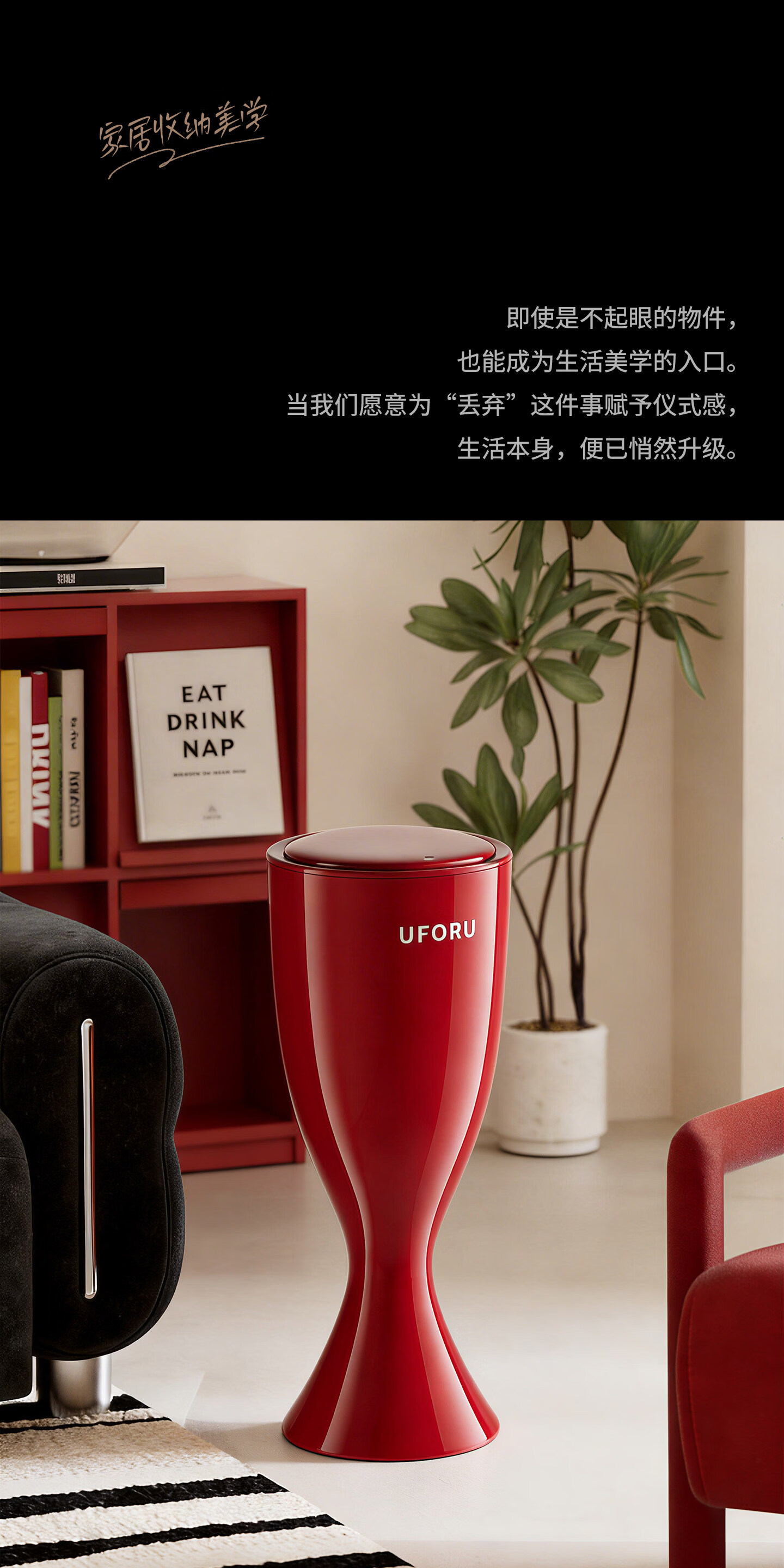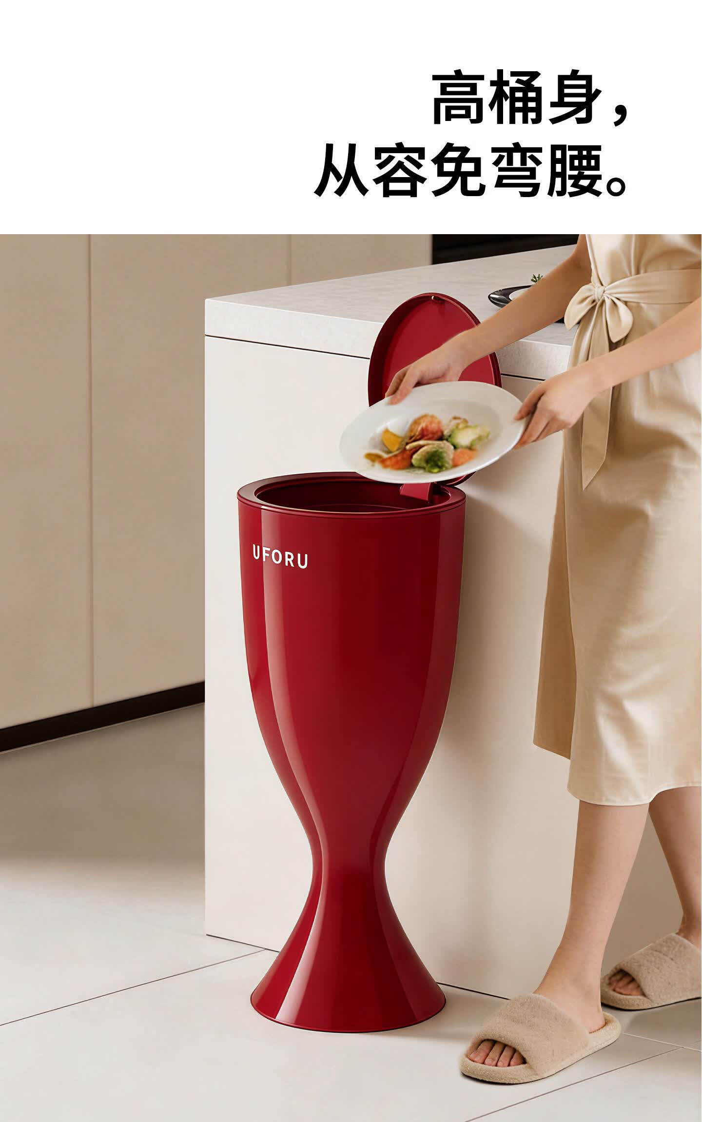 艾仕可(ASCOR)垃圾桶家用客厅卧室2026新款高颜值大号轻奢厨房厕所高脚翻盖纸篓 太空舱-红色【滑轮款360°顺滑】