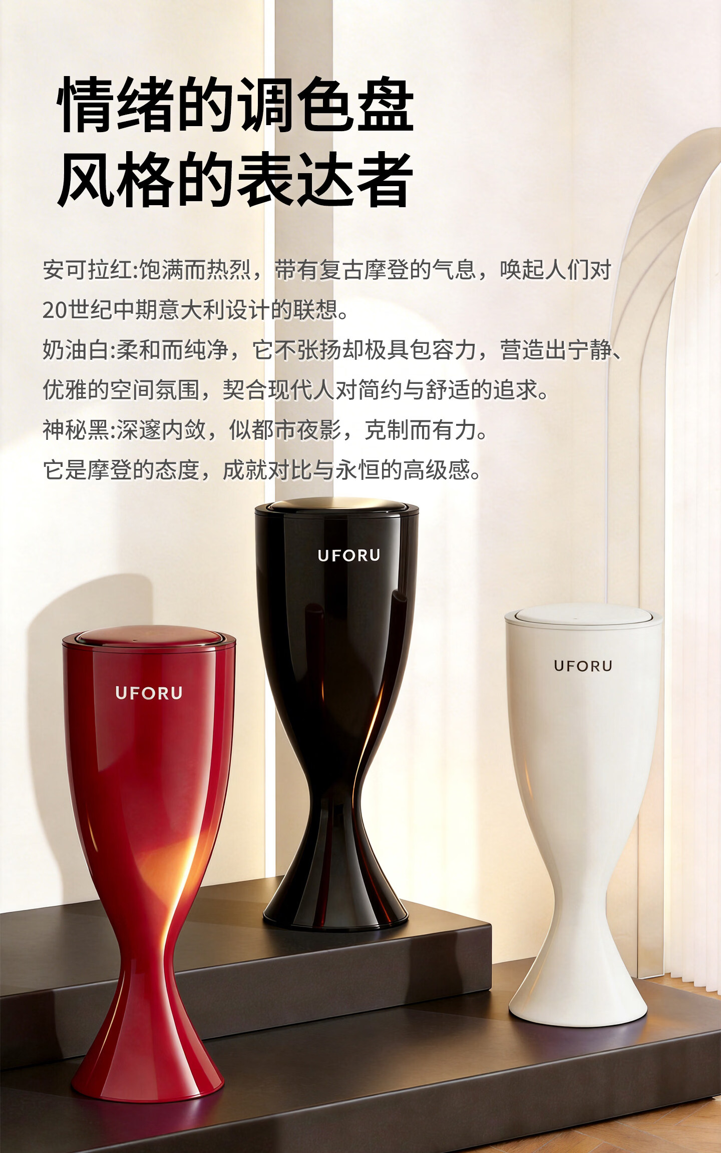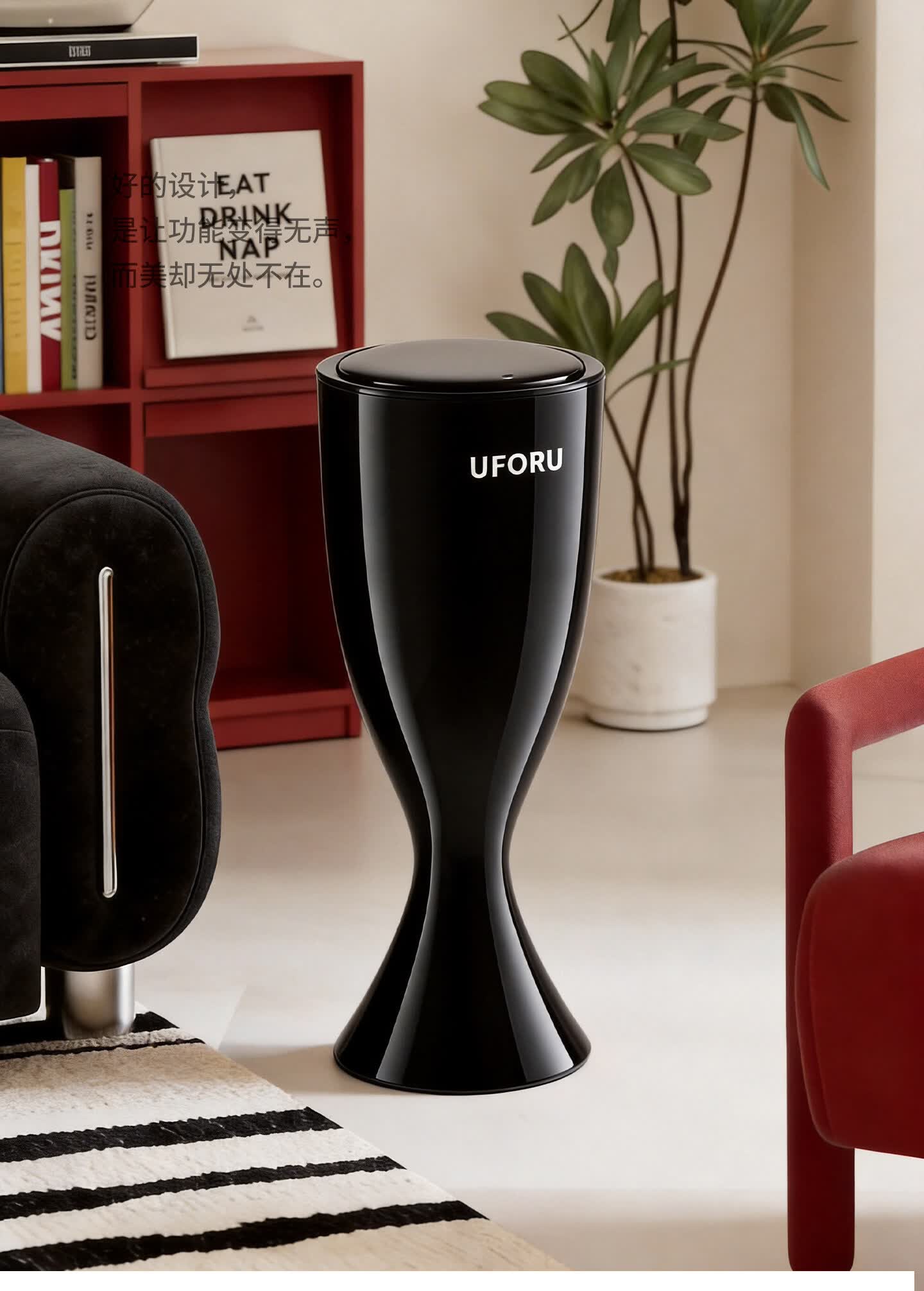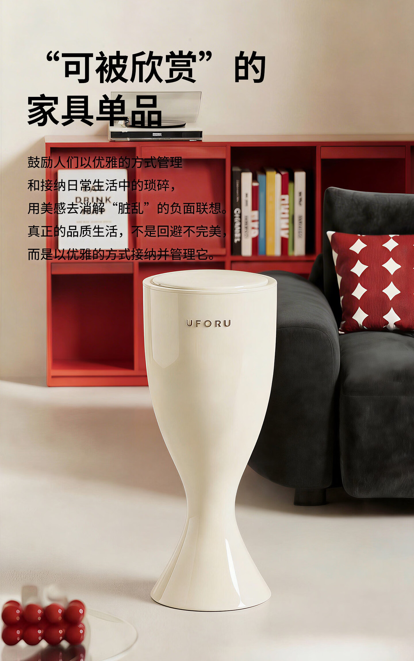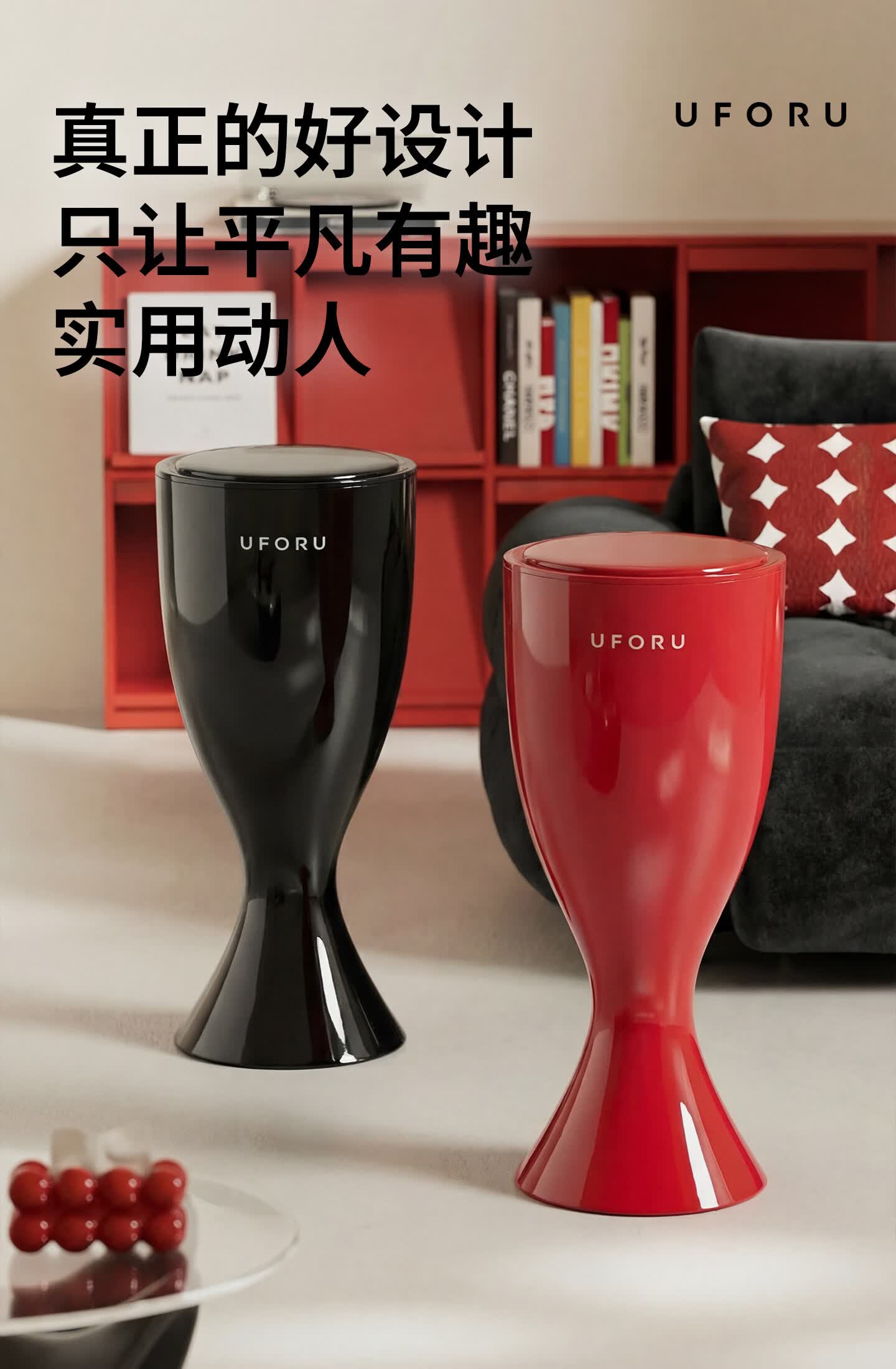 艾仕可(ASCOR)垃圾桶家用客厅卧室2026新款高颜值大号轻奢厨房厕所高脚翻盖纸篓 太空舱-红色【滑轮款360°顺滑】