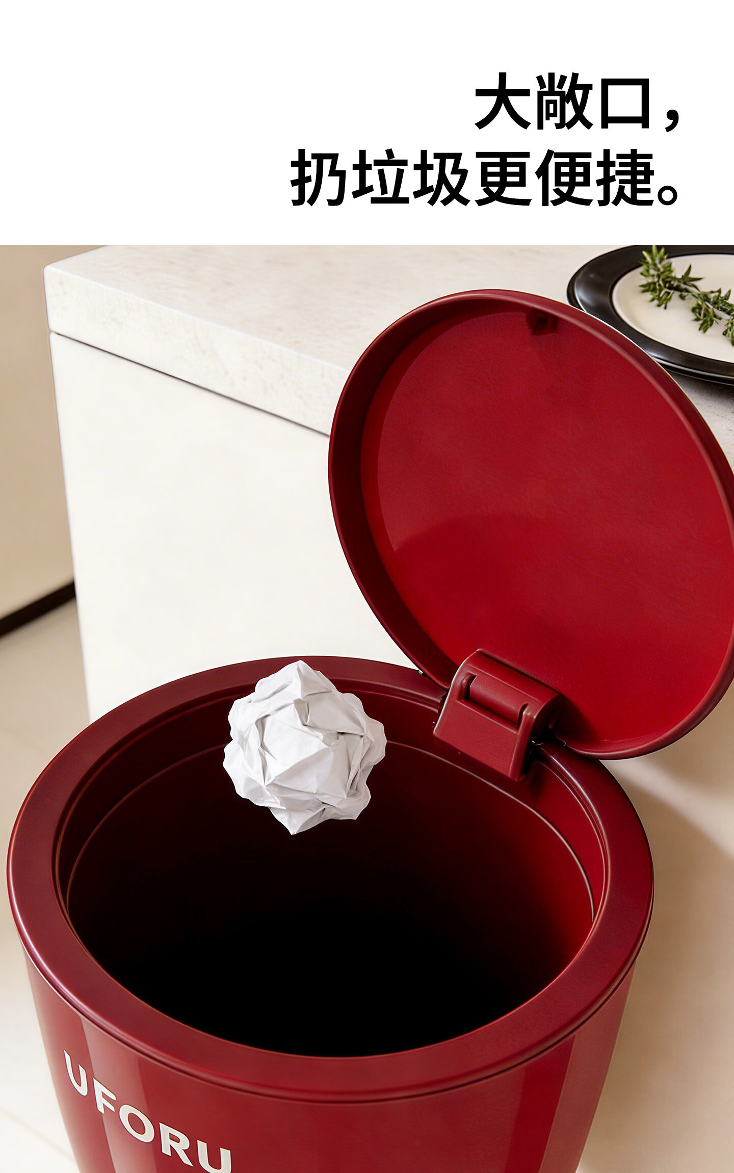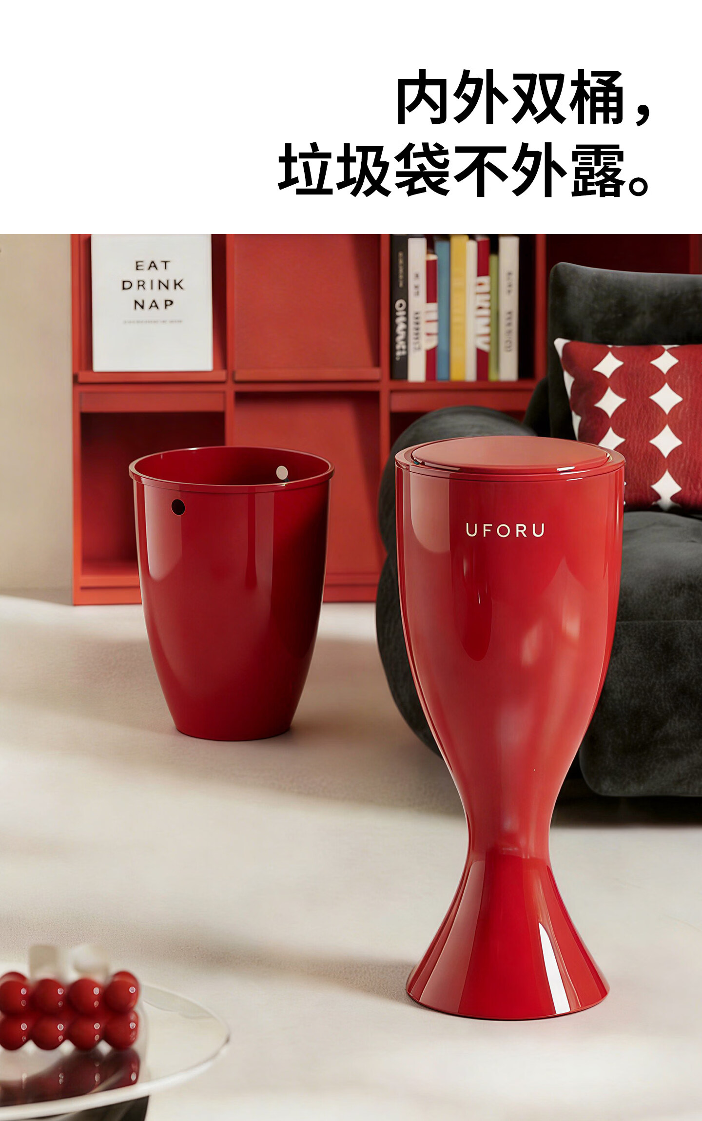艾仕可(ASCOR)免弯腰垃圾桶客厅家用2026新款轻奢高档厨房卧室卫生间高颜值创意 安可拉红-20L【按压开盖 内外双桶】