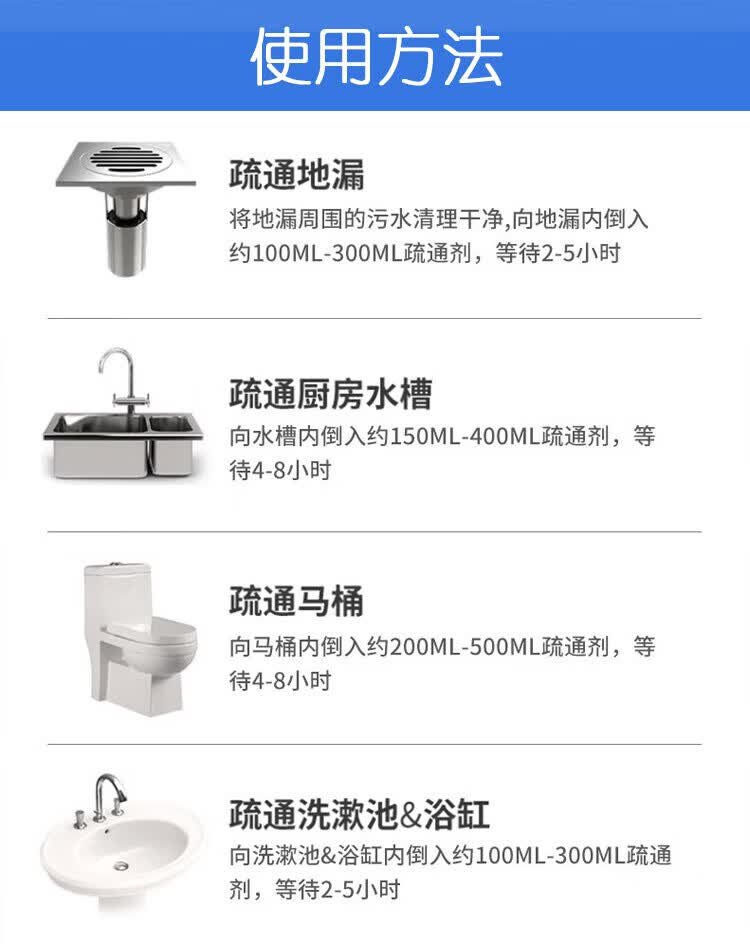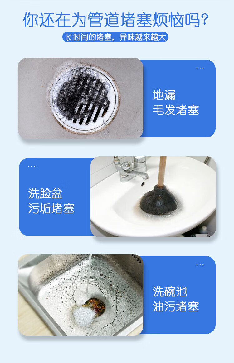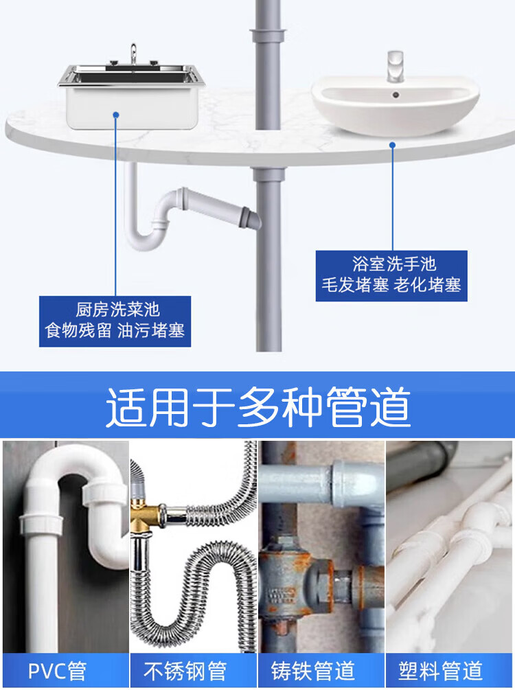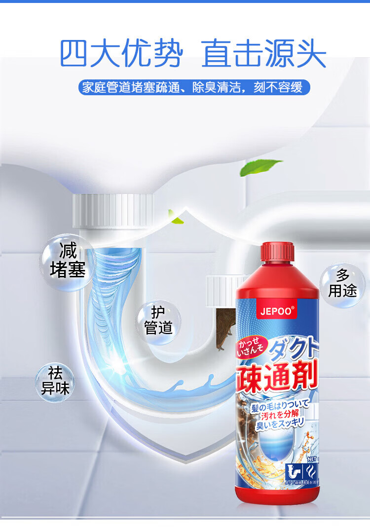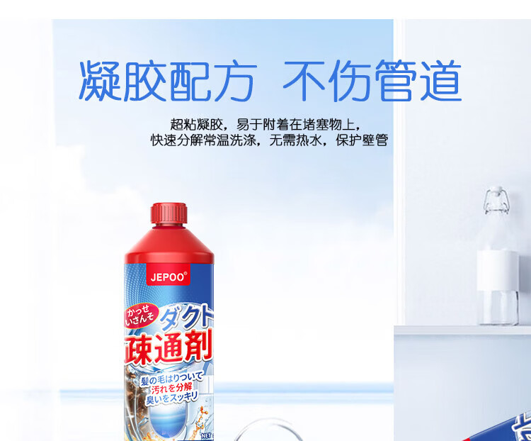 JEPOO管道疏通剂溶解疏通厕所马桶厨房下水道油污堵塞清洁 500ml 3瓶
