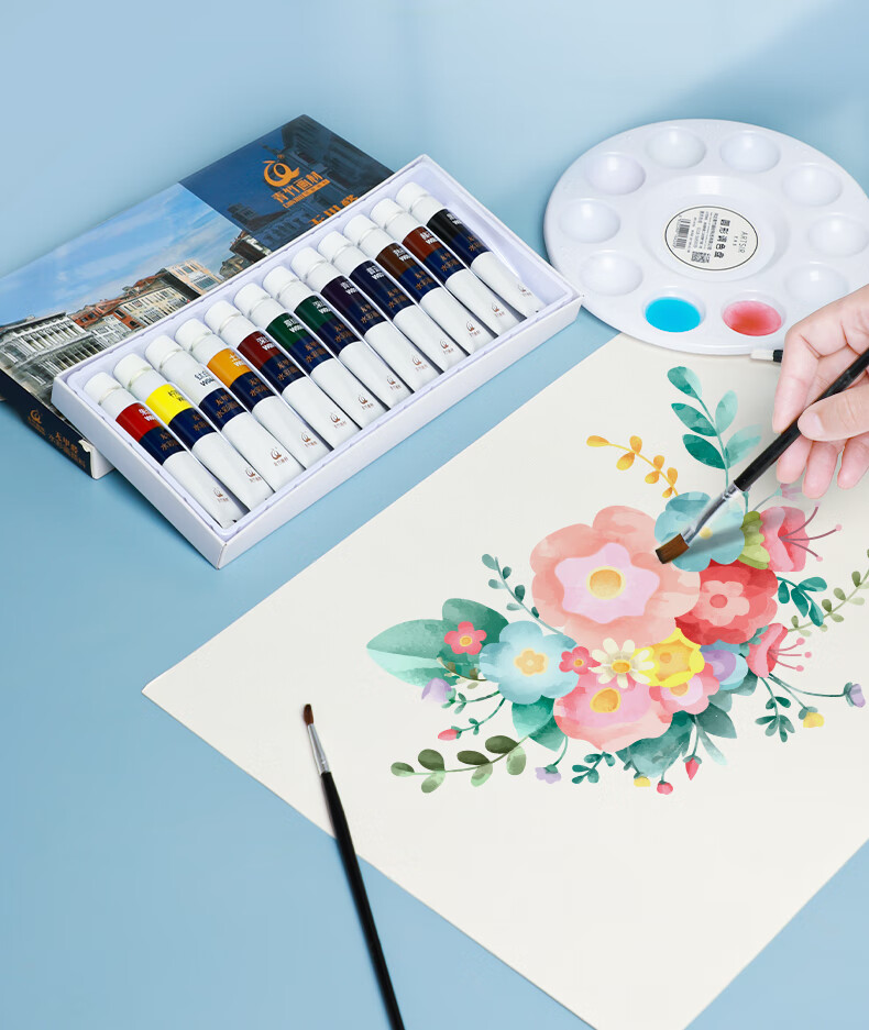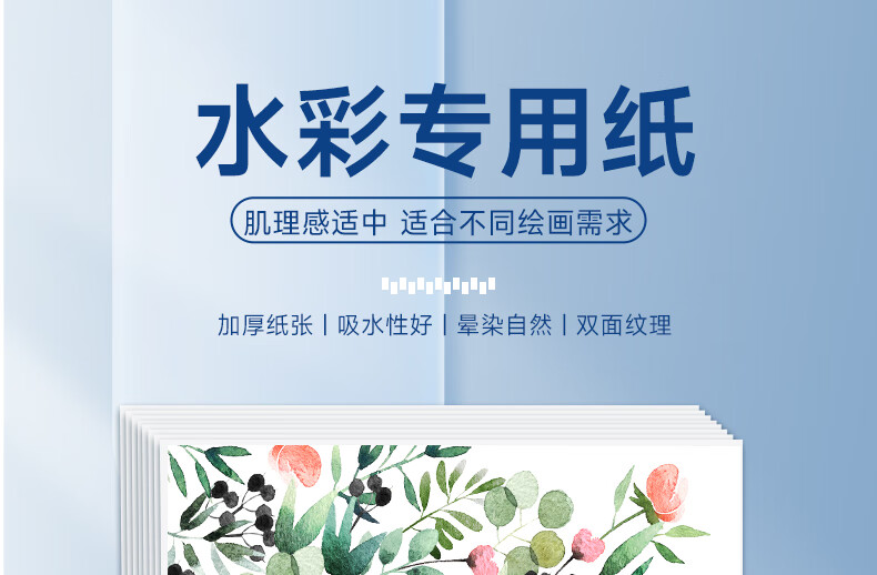 青竹画材(CHINJOO)水彩纸8k画纸加厚180g儿童水彩颜料画画纸白纸学生初学水粉色彩8开绘画纸20张