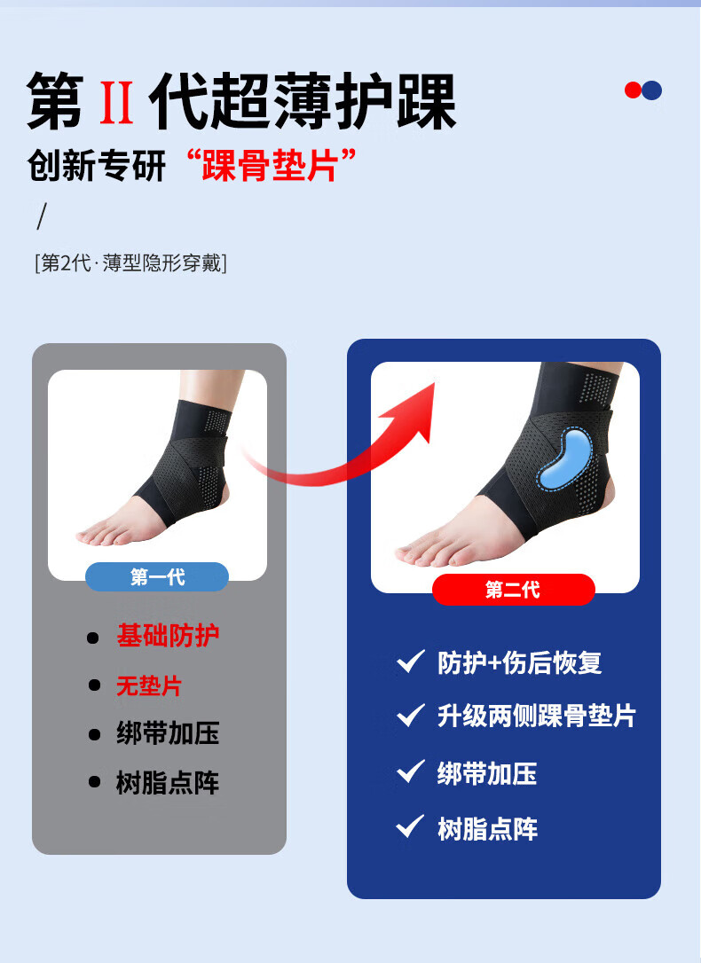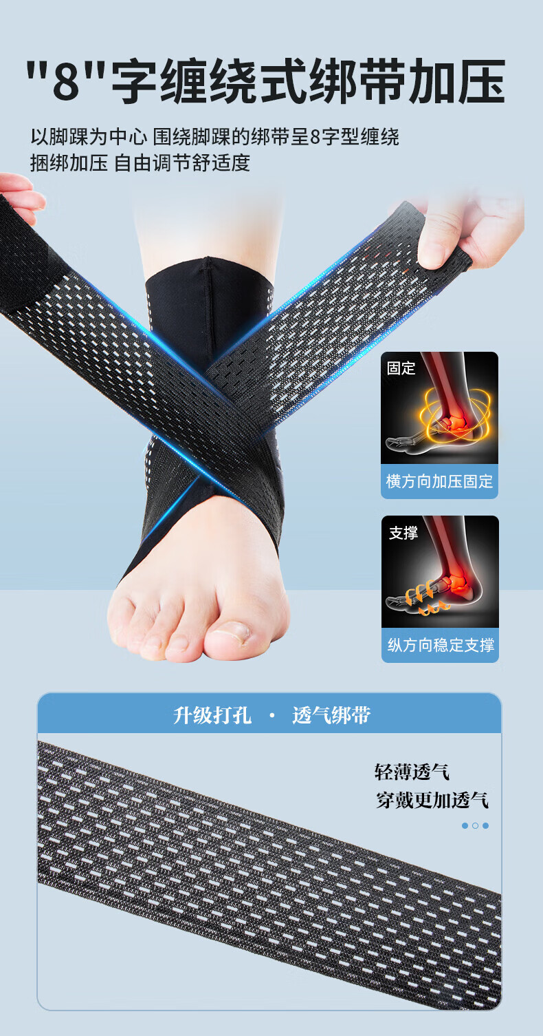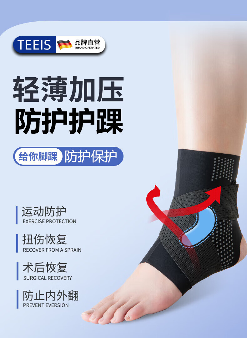 TEEIS德国护踝关节固定支具脚踝扭伤护具后医用专业防护保护套运动绷带 绷带双向加压护踝丨两只装 适合40-46脚码穿戴