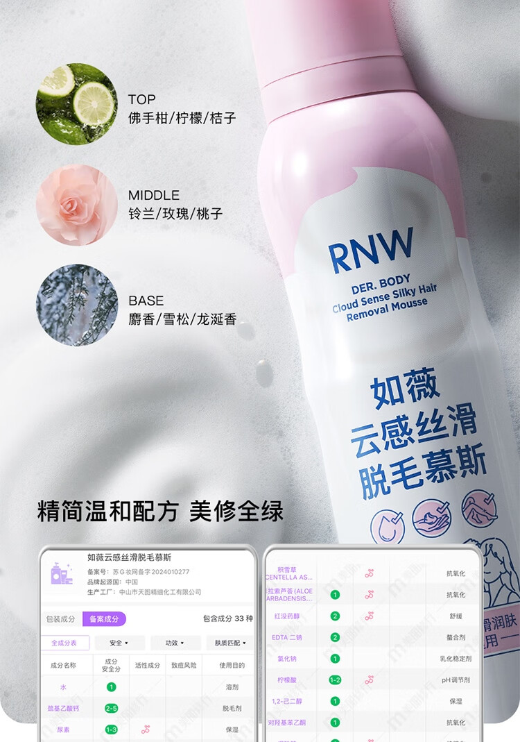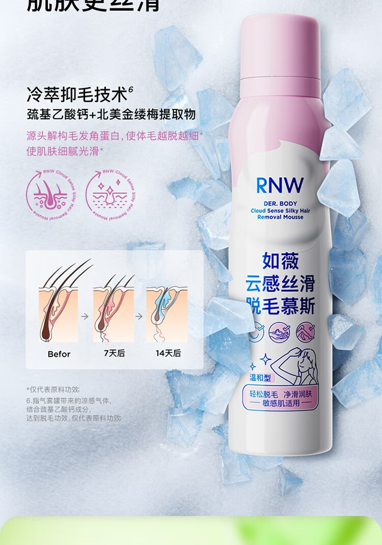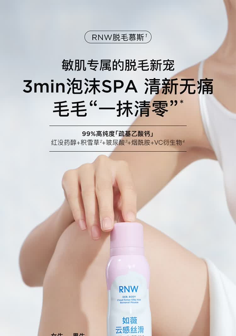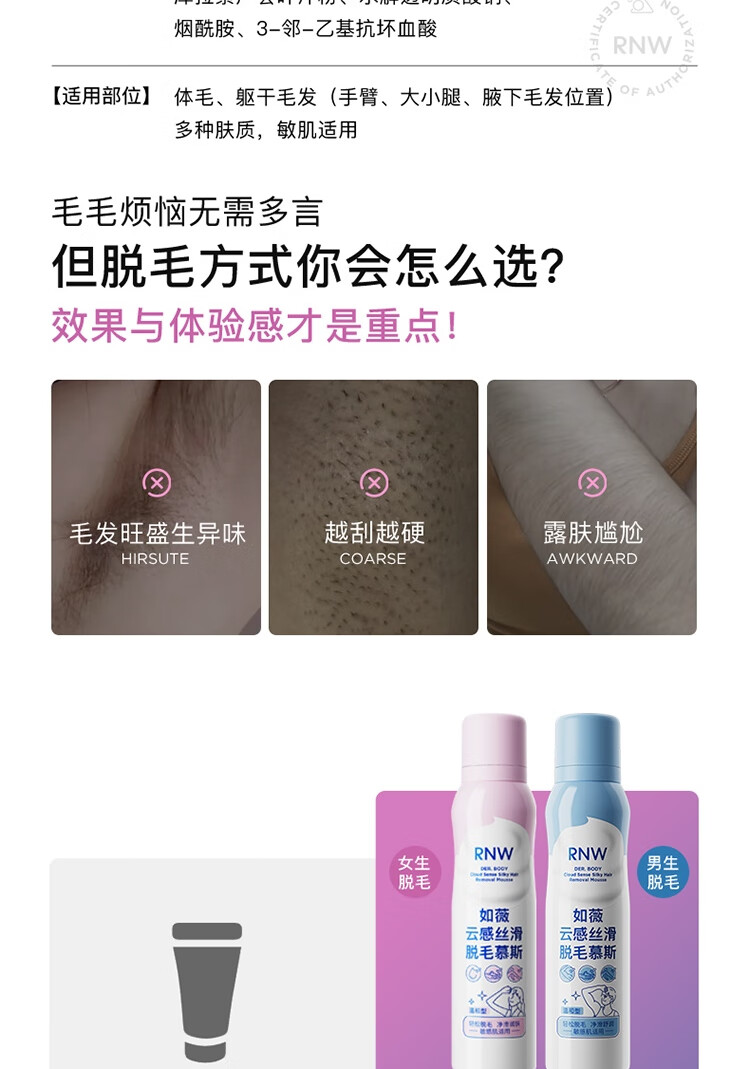 如薇(RNW)脱毛慕斯脱毛膏女腋下腿部手臂私密男女士通用学生温和舒缓去腿毛 脱毛慕斯粉瓶50ml