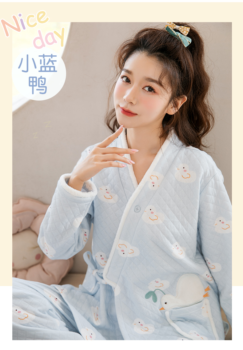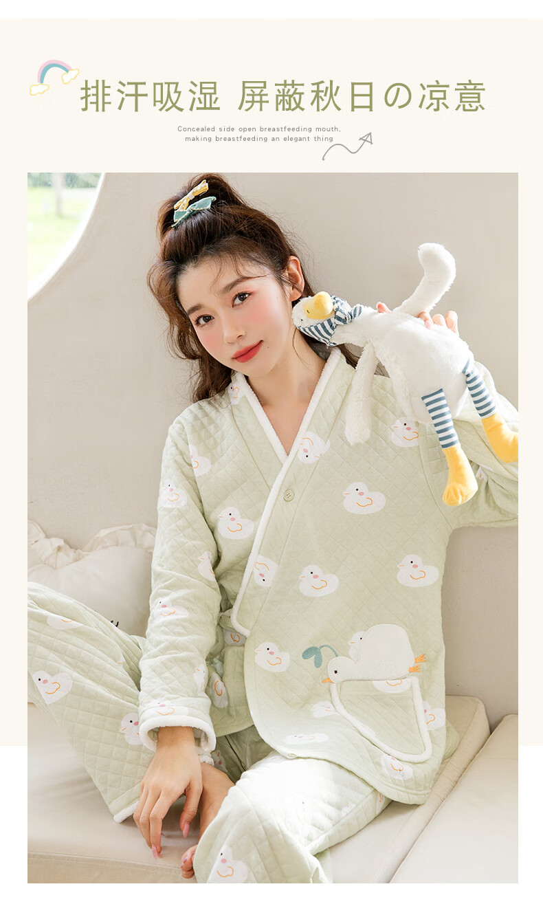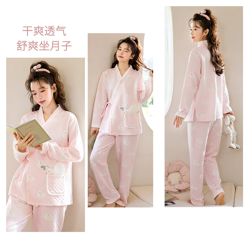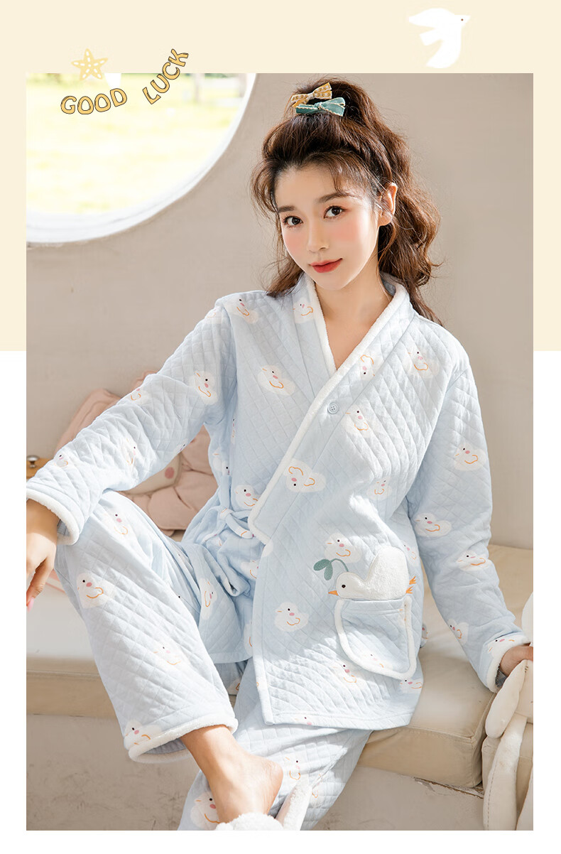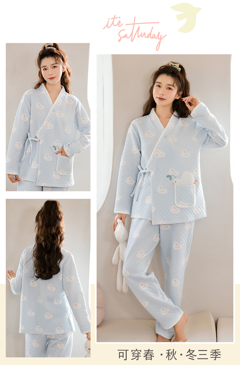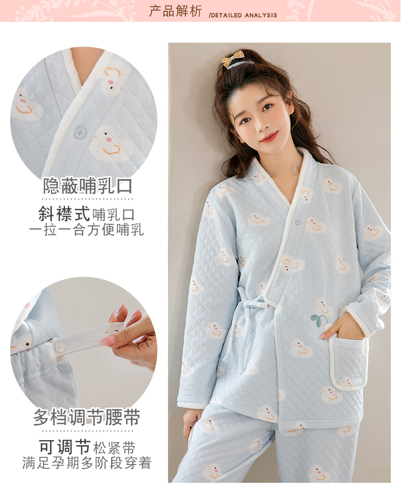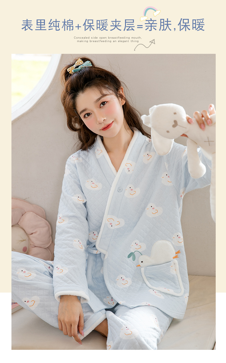 家の时光月子服秋冬12月份保暖空气棉产后孕妇哺乳睡衣冬天产妇待产家居服 (娇花小兔)海蓝 XL码 【推荐145-160斤左右】