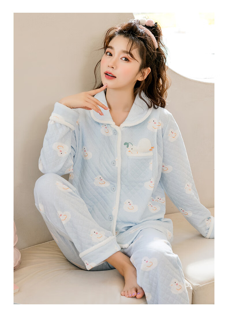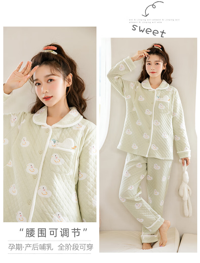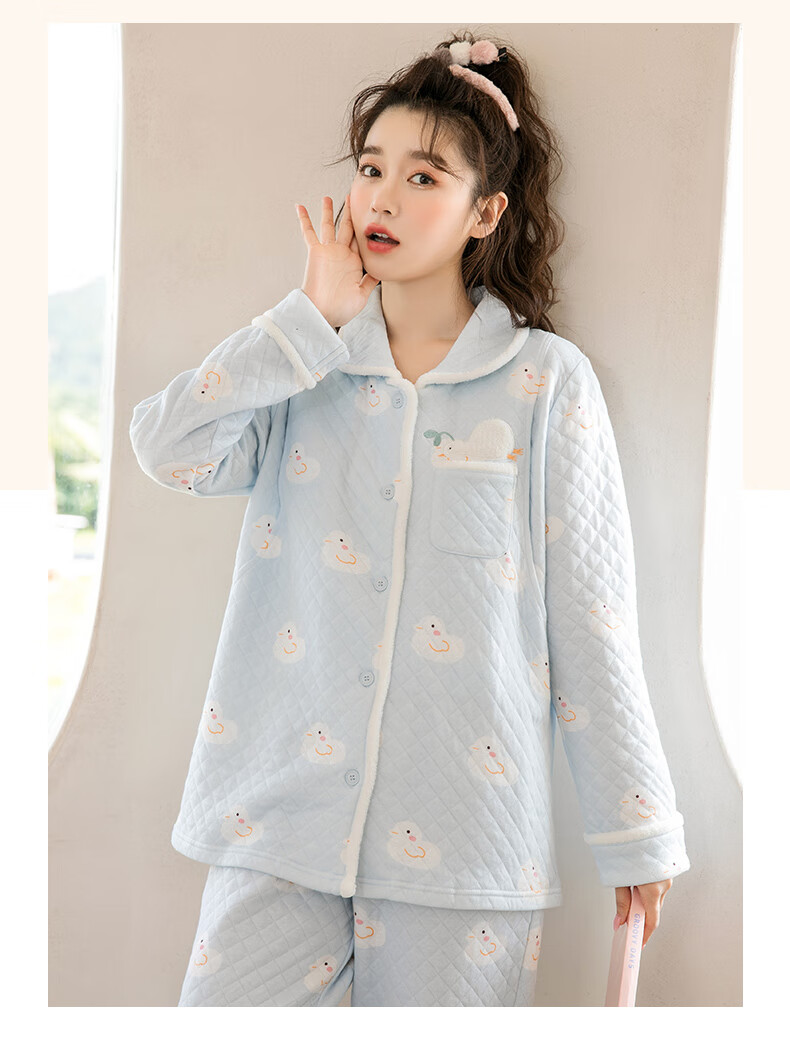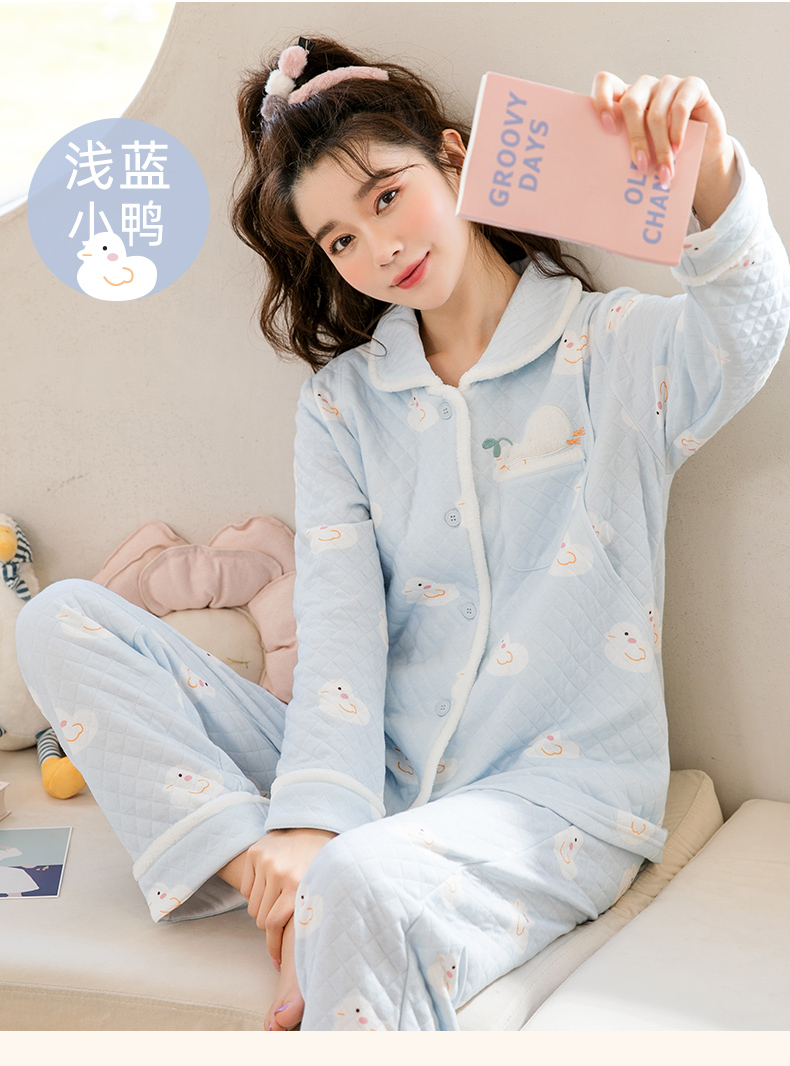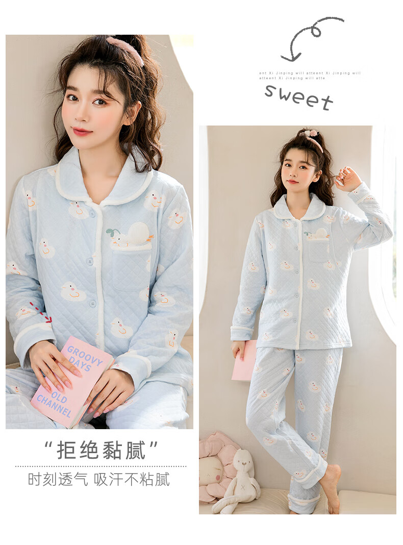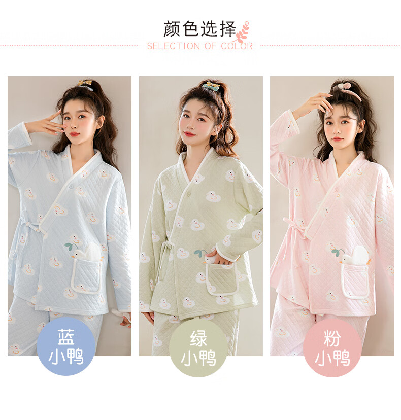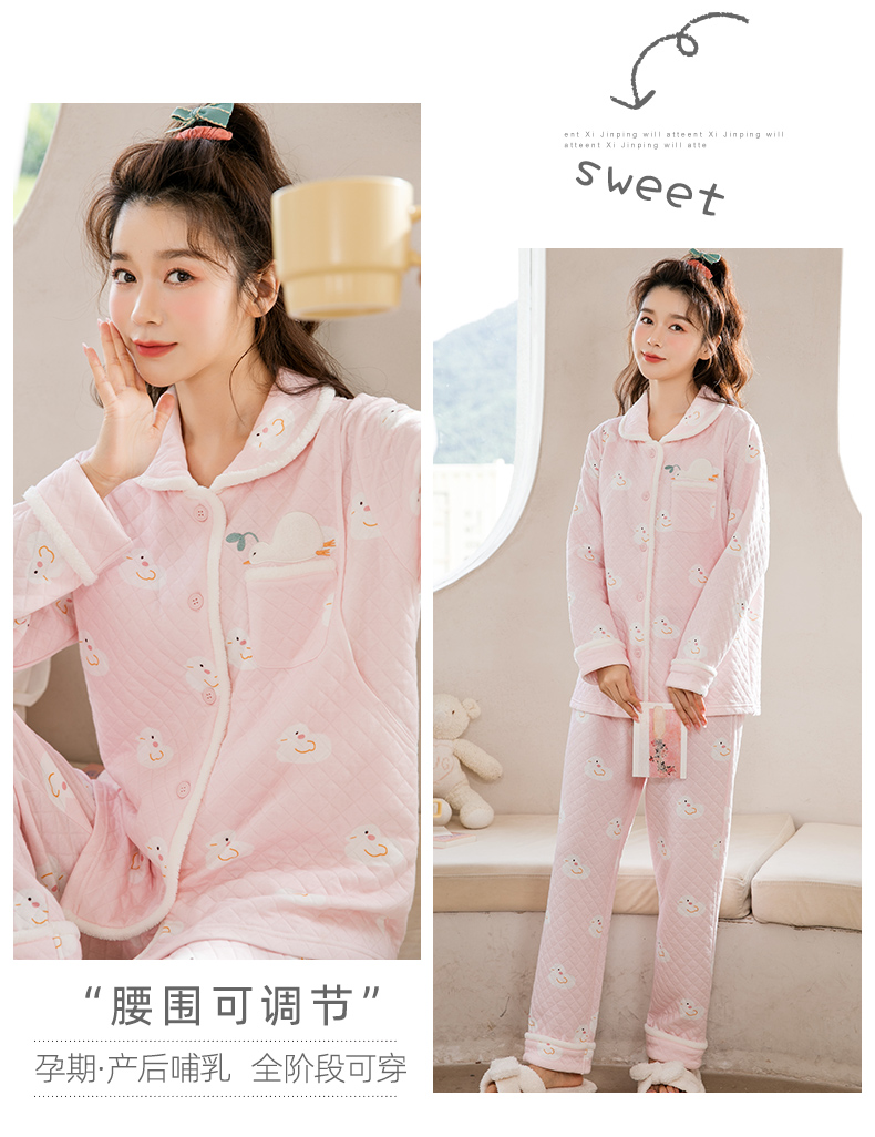家の时光月子服秋冬12月份保暖空气棉产后孕妇哺乳睡衣冬天产妇待产家居服 (娇花小兔)海蓝 XL码 【推荐145-160斤左右】