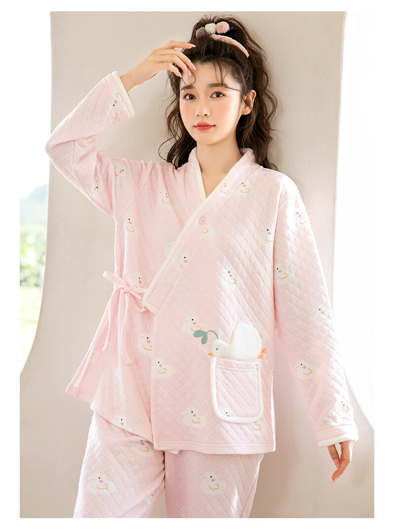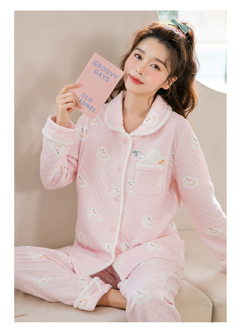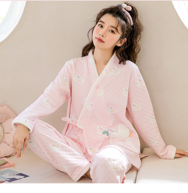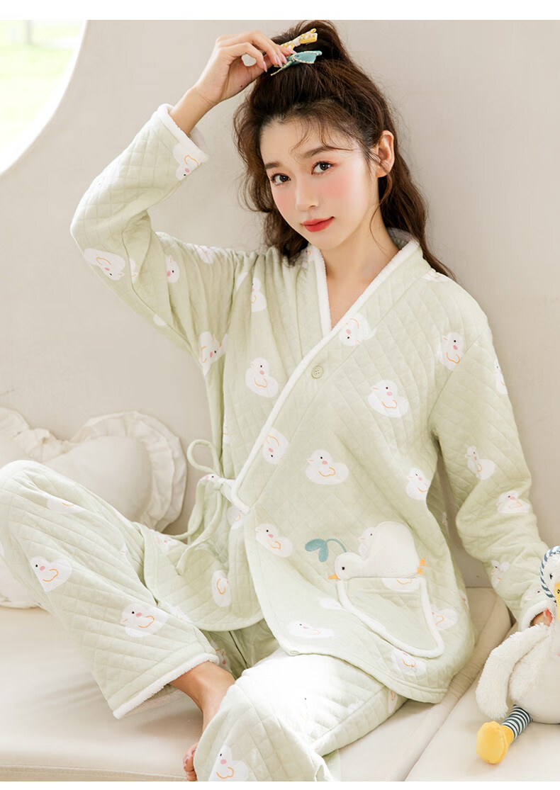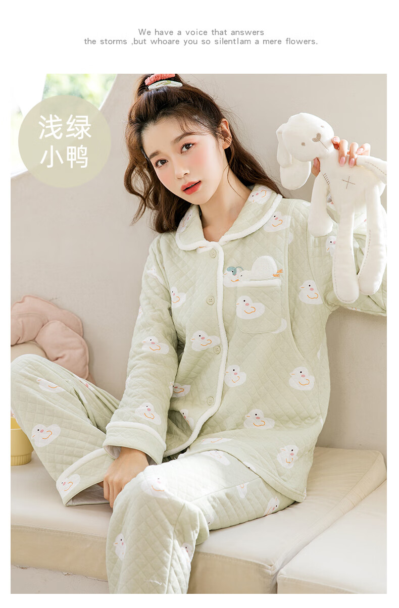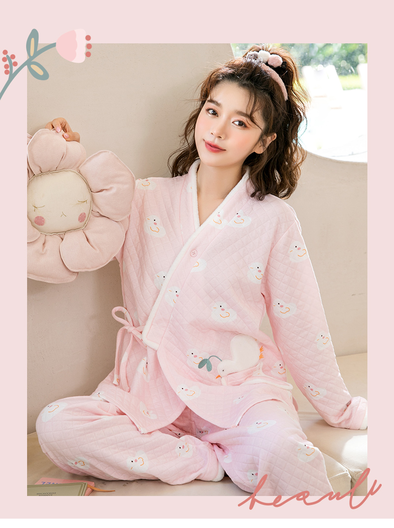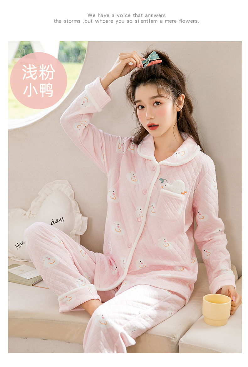 家の时光月子服秋冬12月份保暖空气棉产后孕妇哺乳睡衣冬天产妇待产家居服 (娇花小兔)海蓝 XL码 【推荐145-160斤左右】