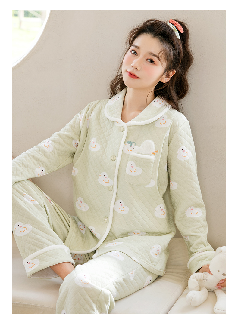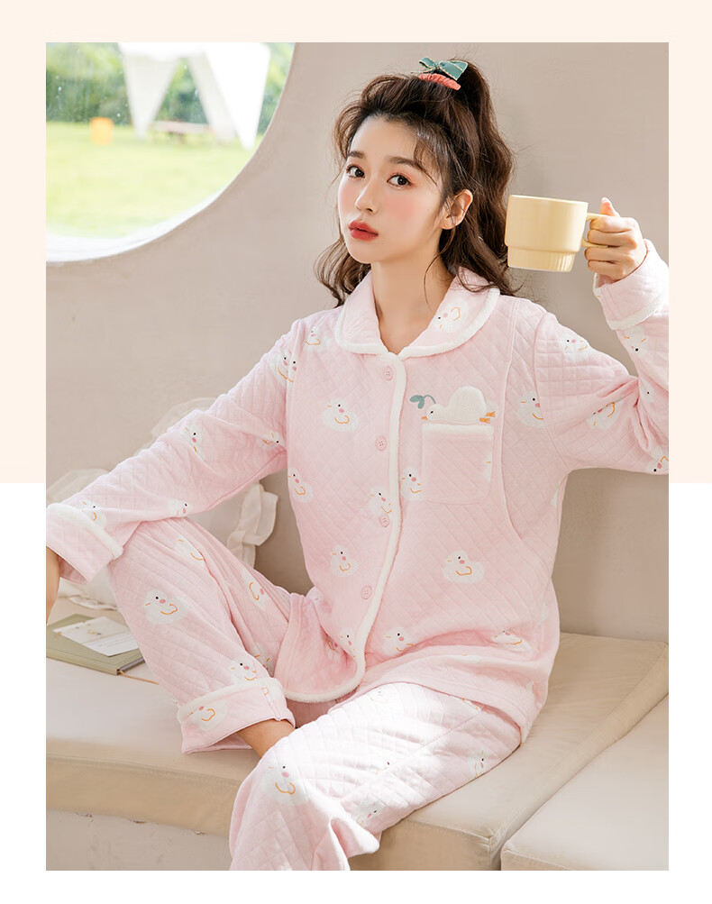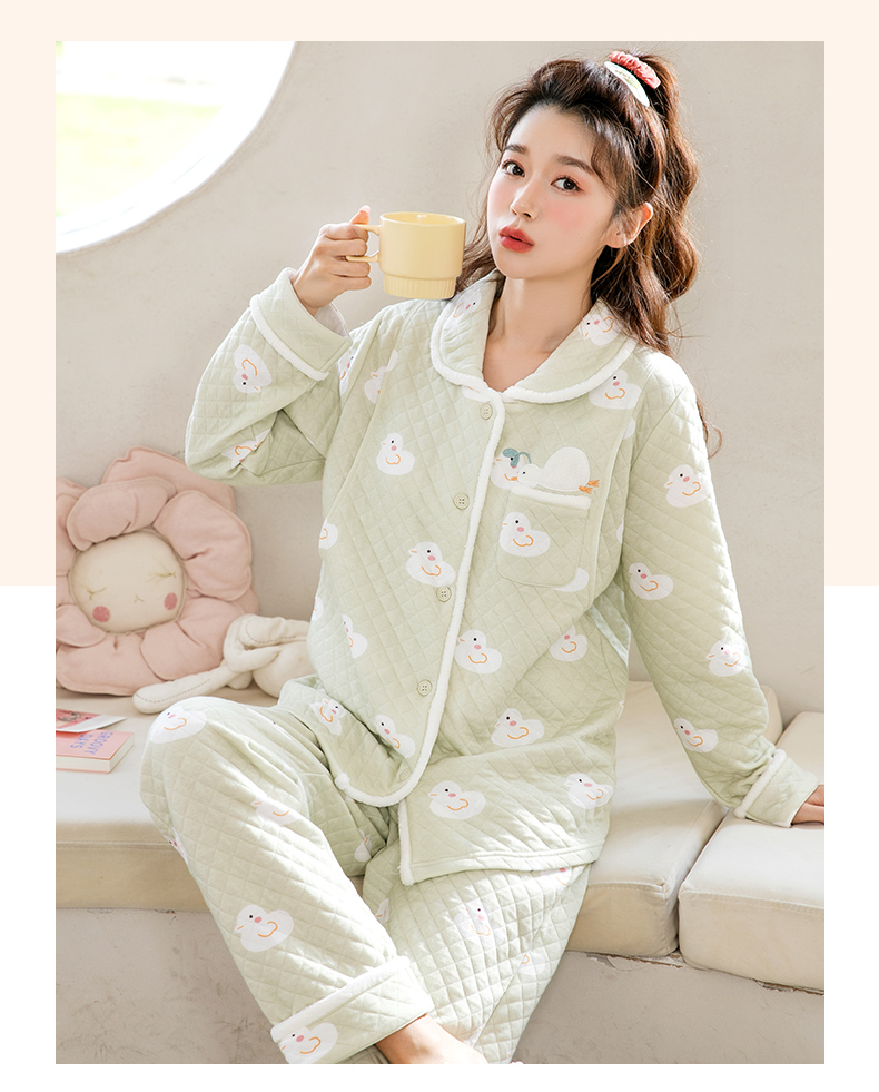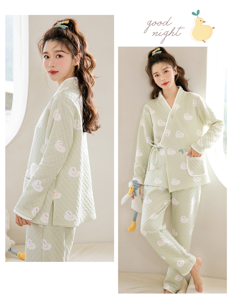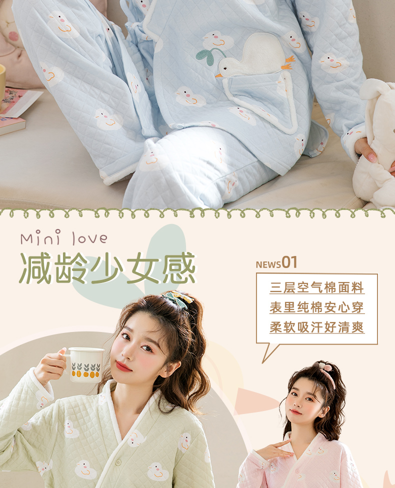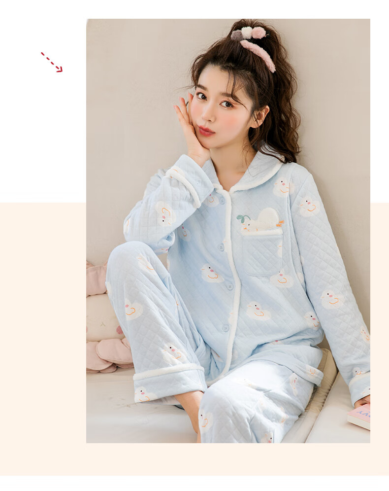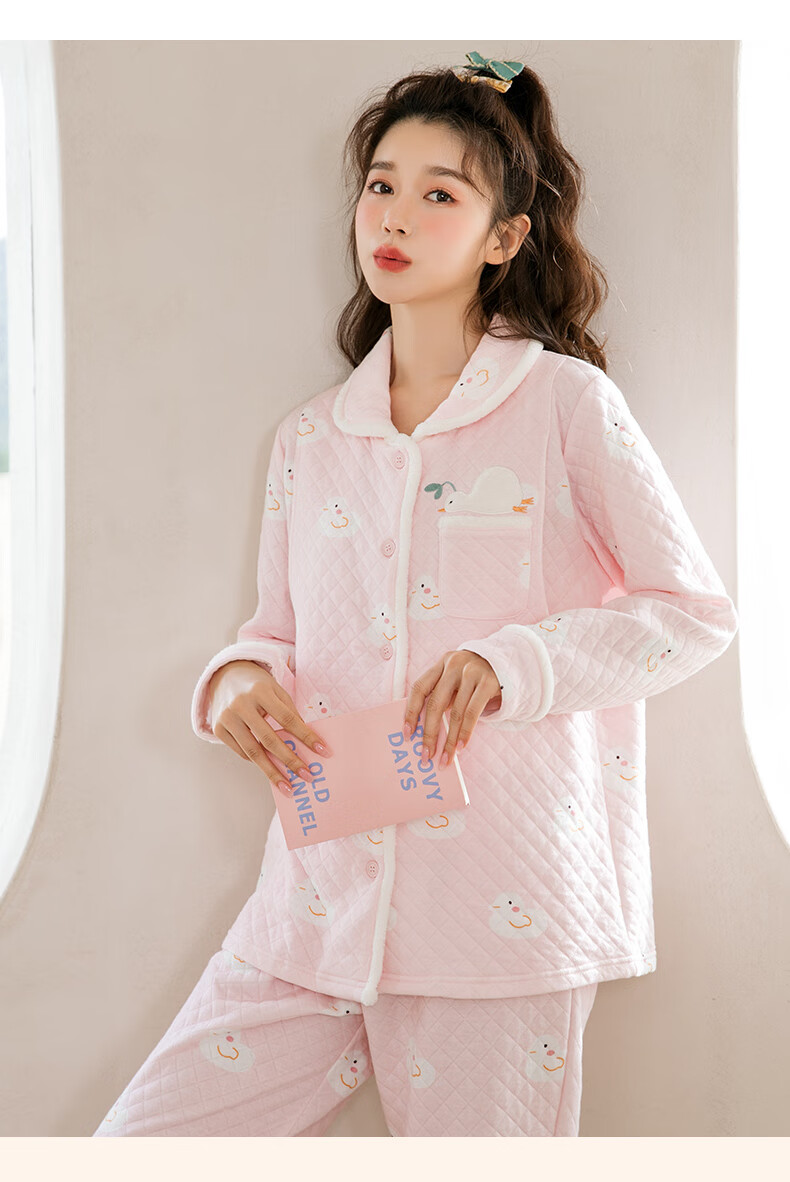 家の时光月子服秋冬12月份保暖空气棉产后孕妇哺乳睡衣冬天产妇待产家居服 (娇花小兔)海蓝 XL码 【推荐145-160斤左右】