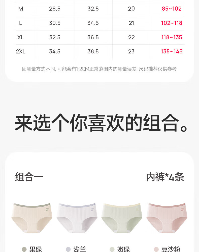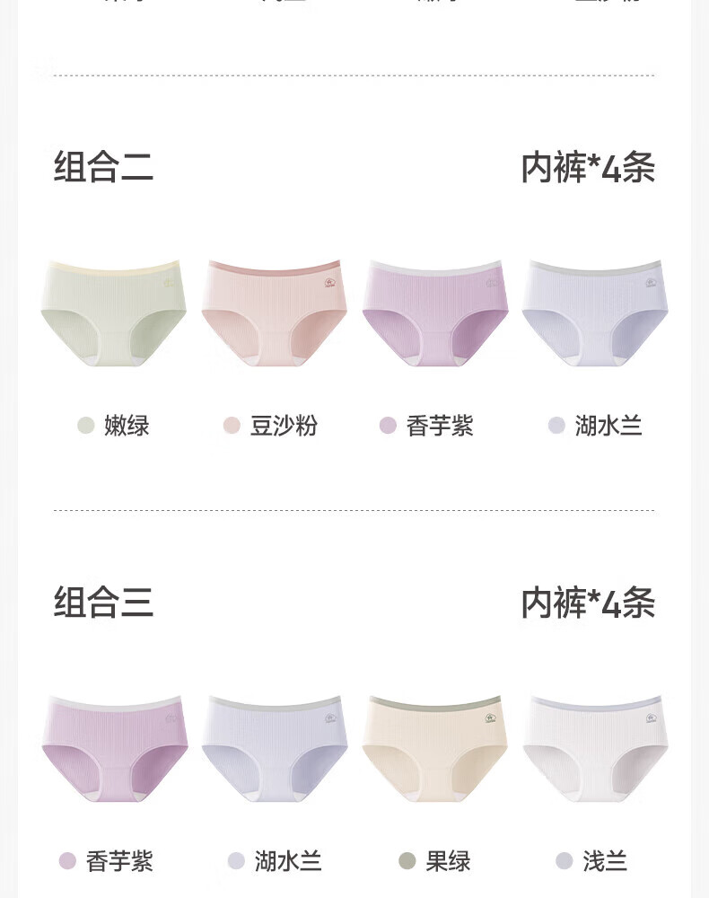 芬腾4条装内裤女透气抗菌裆中腰提臀性感三角短裤头裤衩 407组合二 【纯棉裆 7A抗菌】 4条 XL 建议:125-145斤