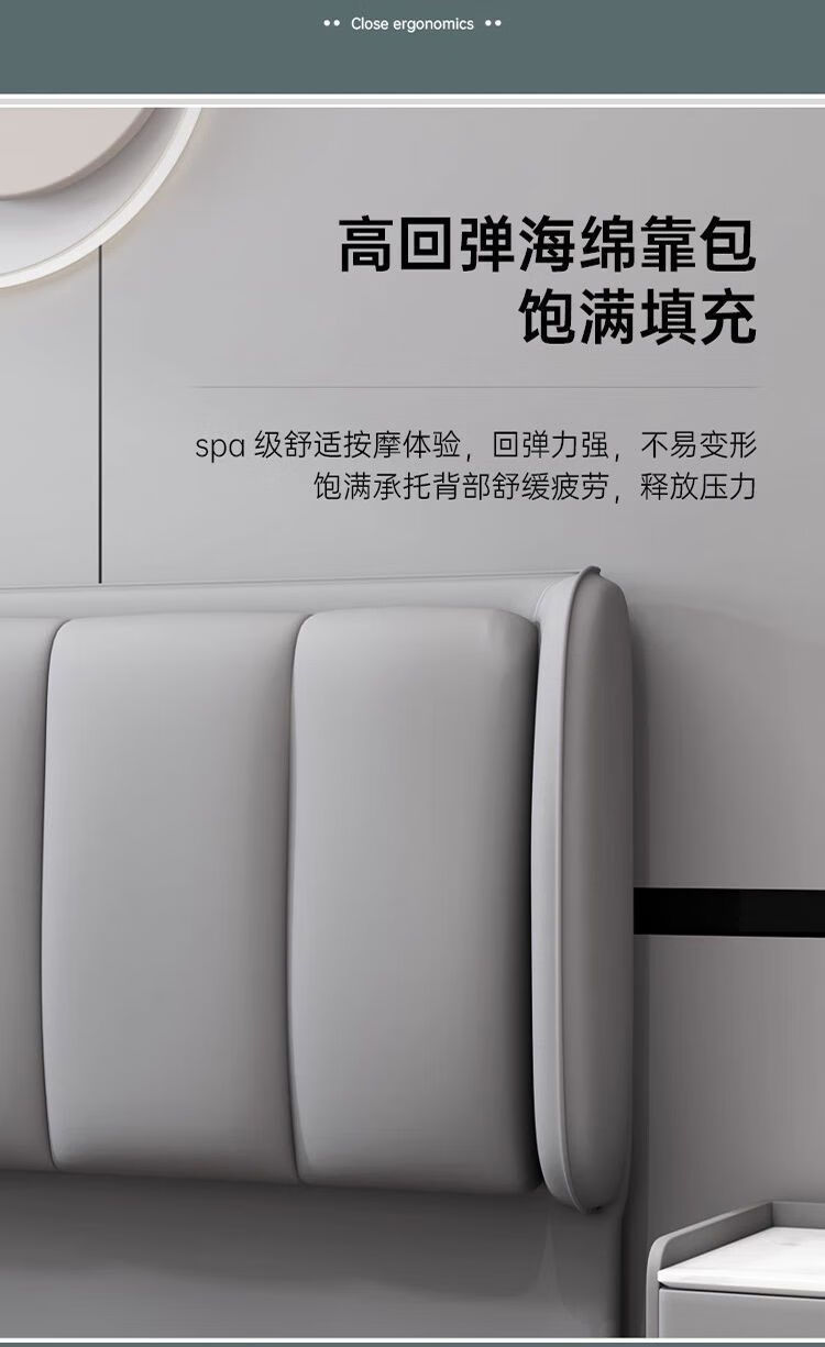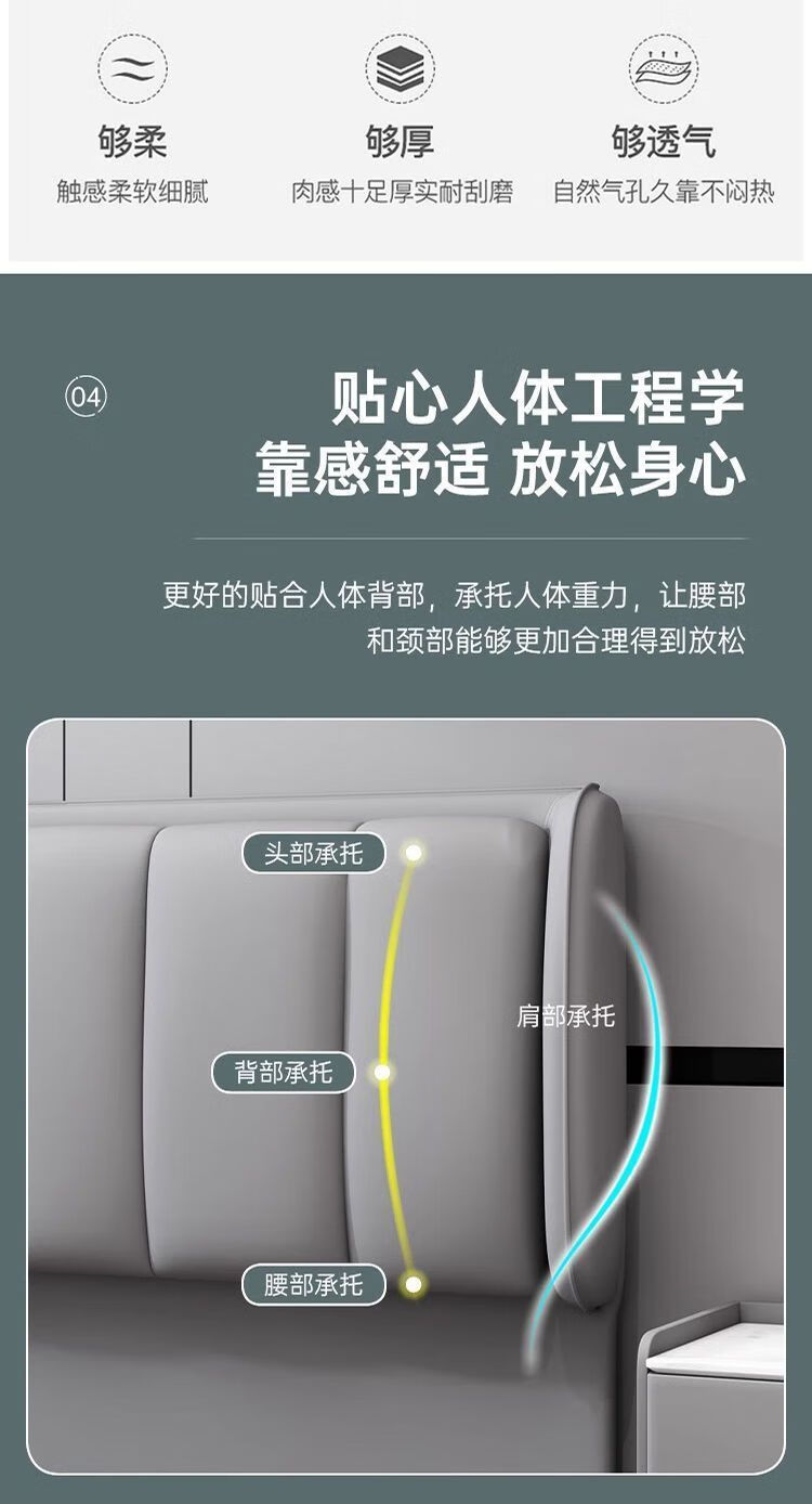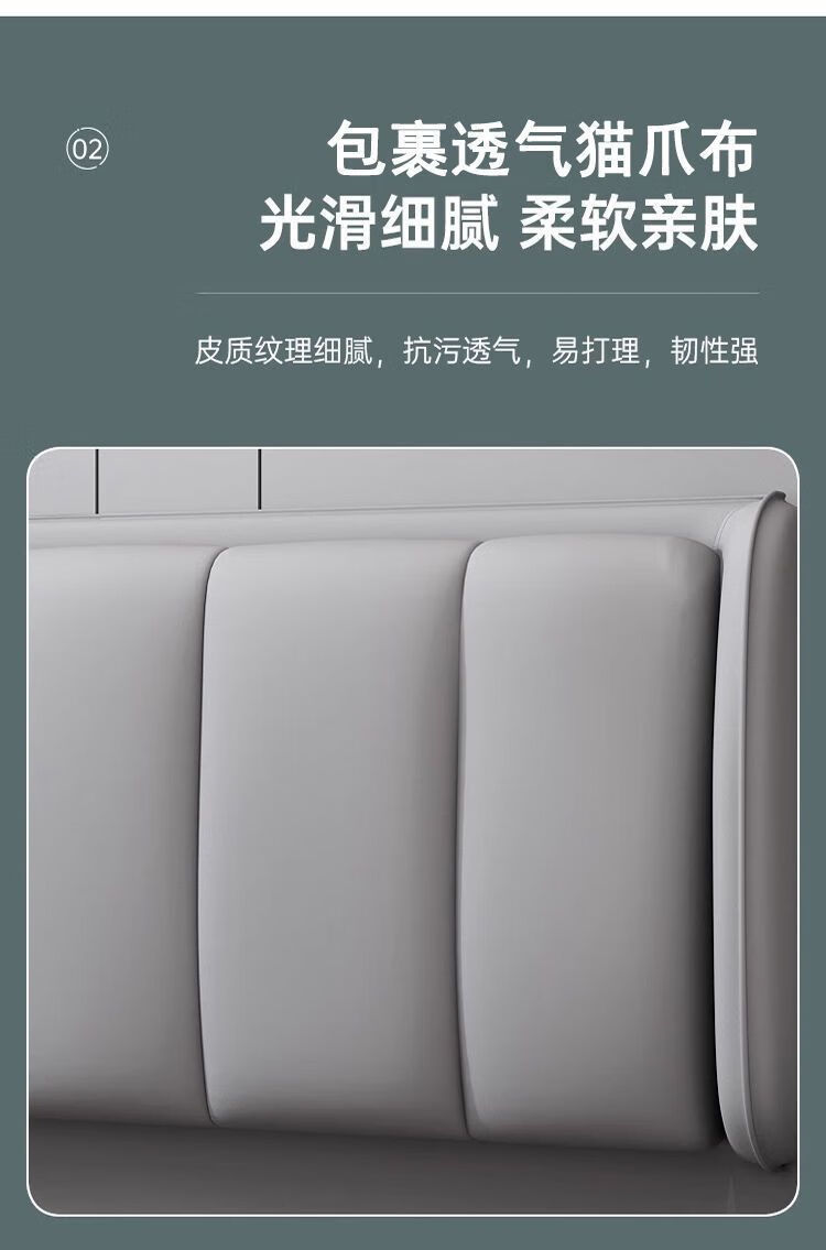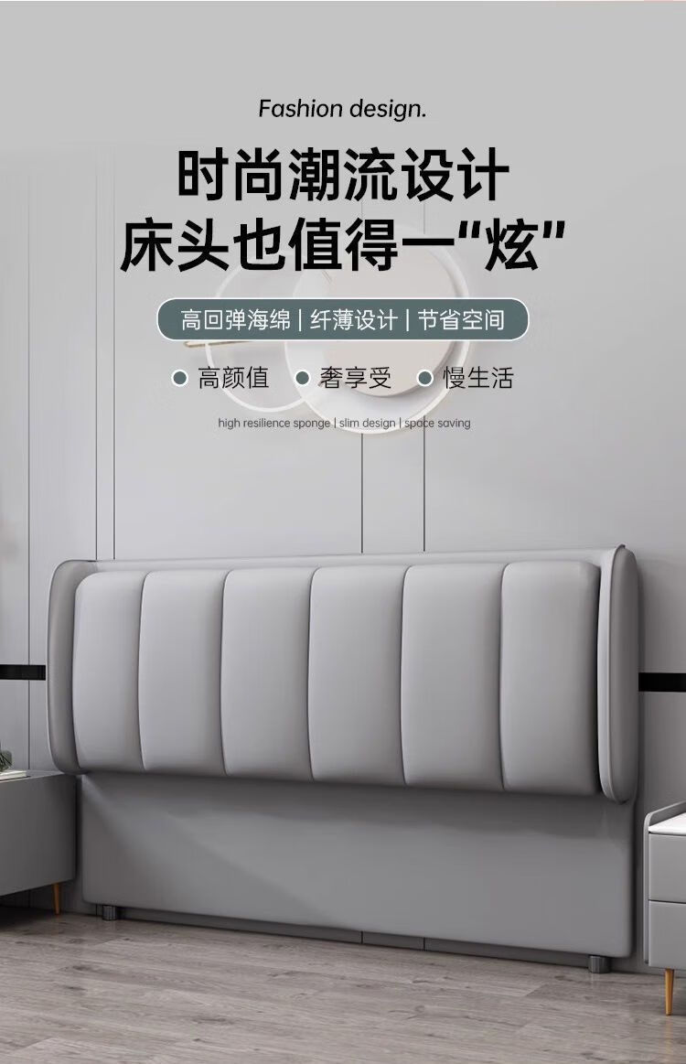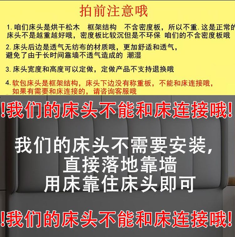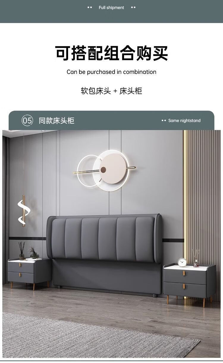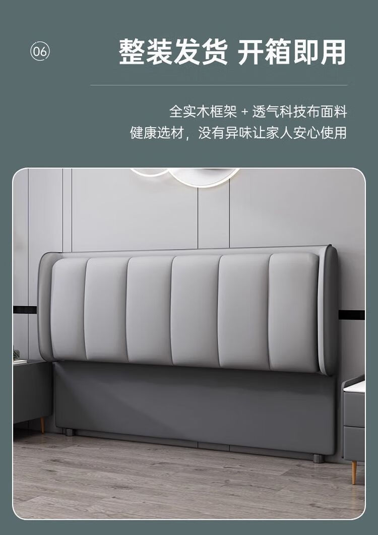 欣慕雅新款床头靠背一体落地软包简约现代2024落地实木背板轻奢现货 【限时优惠】深灰色 【实木】1.2米*猫爪皮