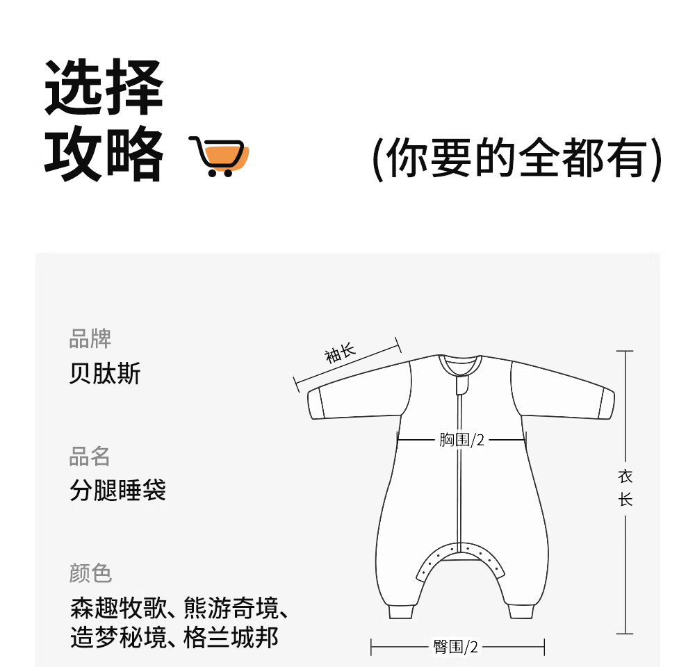 贝肽斯婴儿睡袋纯棉恒温儿童分腿睡袋婴幼儿防踢被睡衣秋冬加厚 奇境M