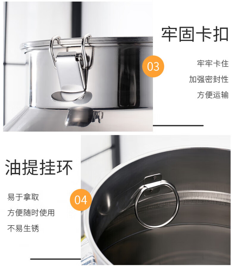WCZ德国304不锈钢油桶酒桶储存密封桶牛奶桶茶叶罐食用油桶接酒桶陈 特厚304钢3L直径15高22cm6斤油