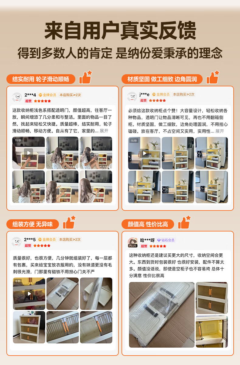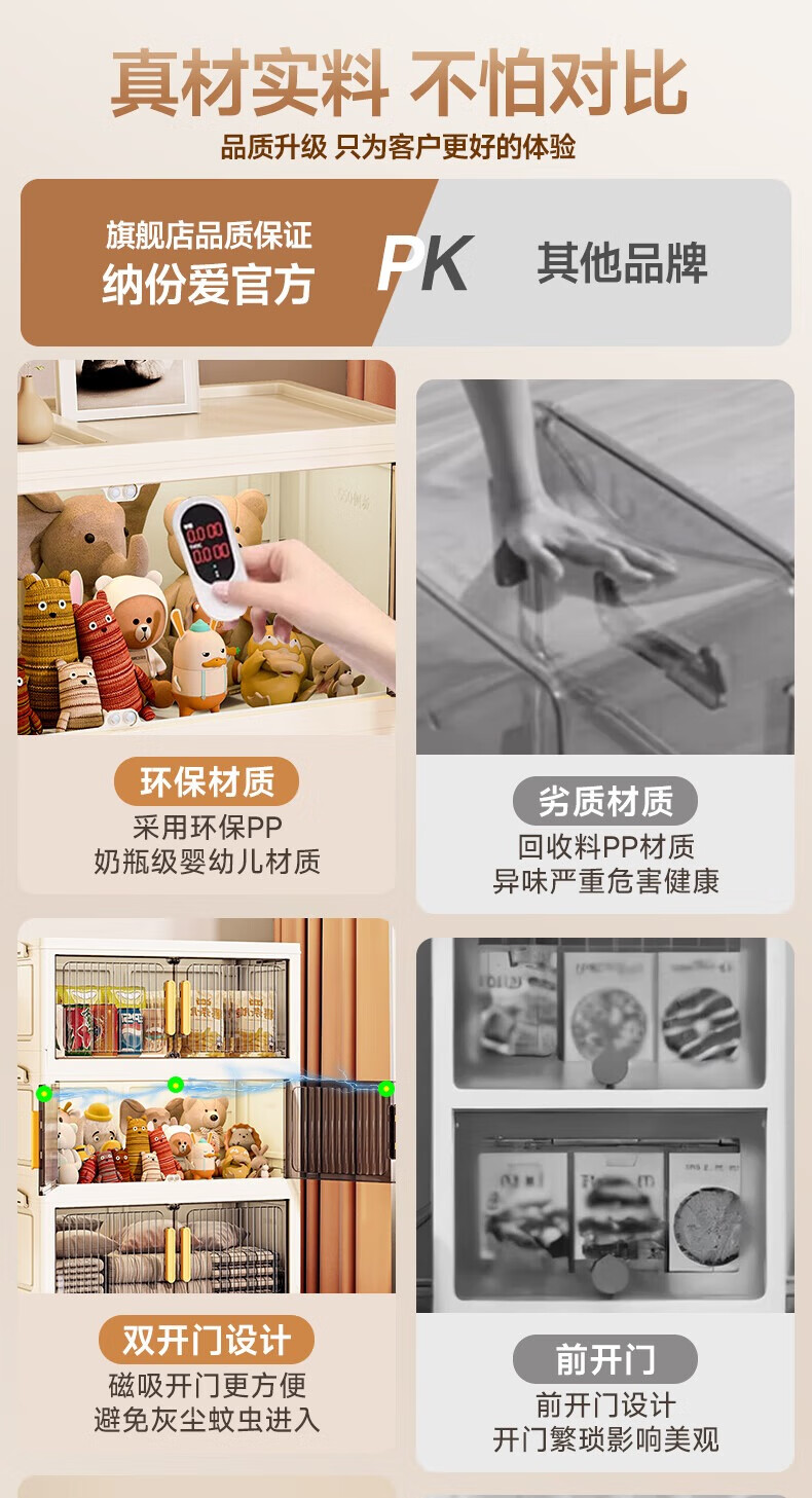 纳份爱收纳柜加厚塑料玩具零食储物柜卧室衣物置物柜子床头整理柜飘窗箱 48面宽【条纹茶透】 5层 【99.99%超值店长推荐】