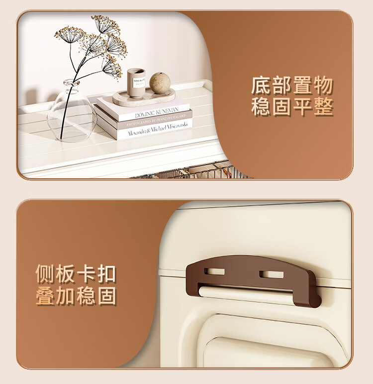 稻草熊收纳箱大号奶油风家用收纳盒塑料整理箱衣服玩具零食卧室储物箱 奶咖色三个装【带盖】