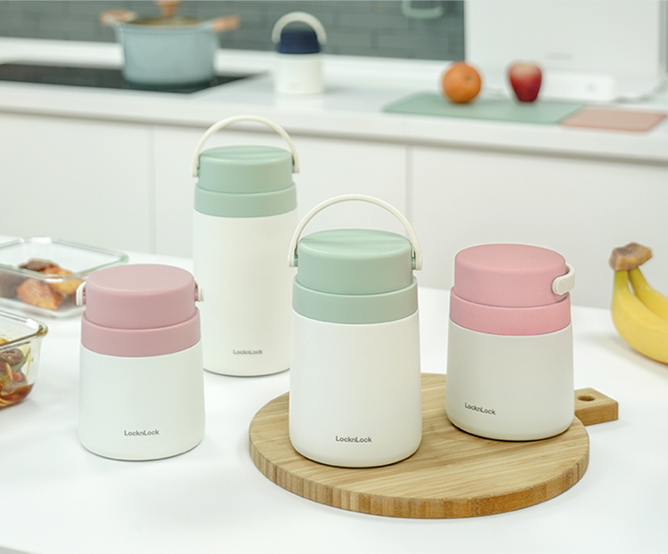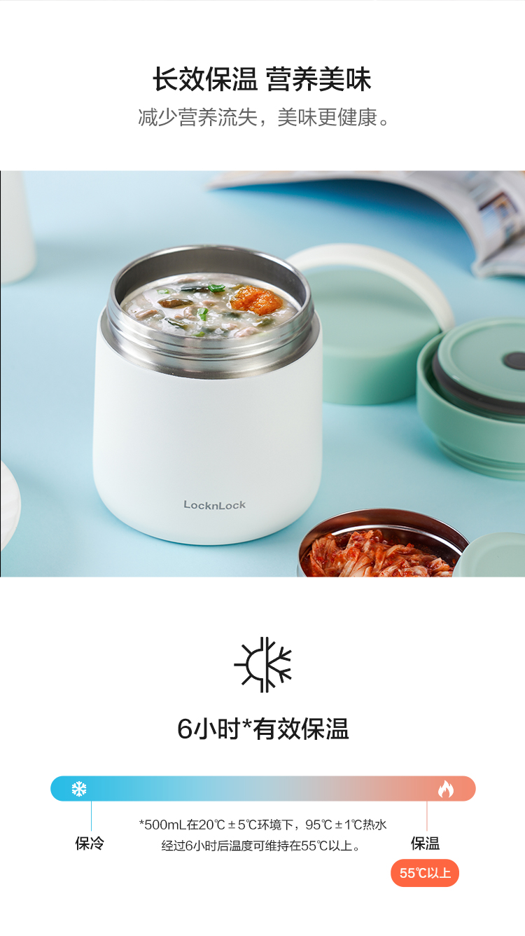 乐扣乐扣(LOCK&LOCK)保温桶 不锈钢便携式手提保温饭盒带餐具700ML 薄荷绿 LHC8042MIT