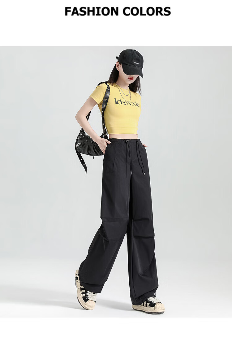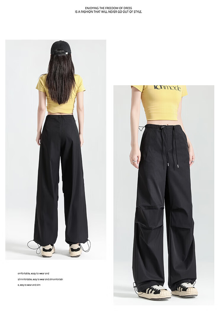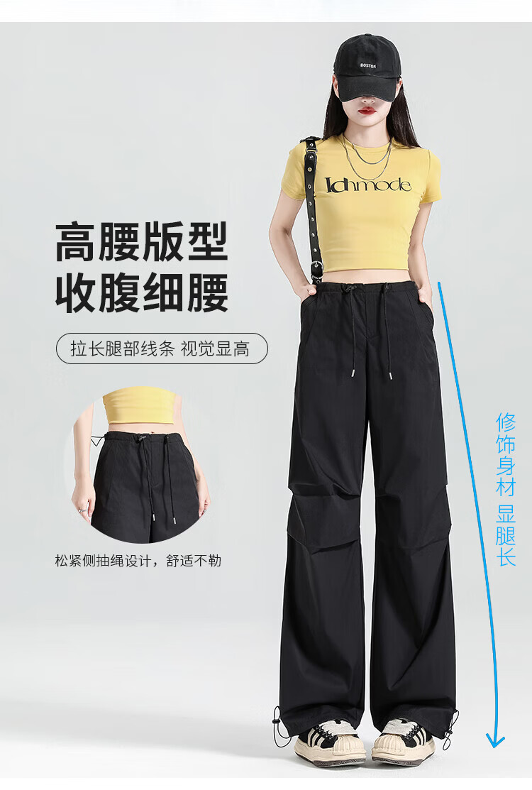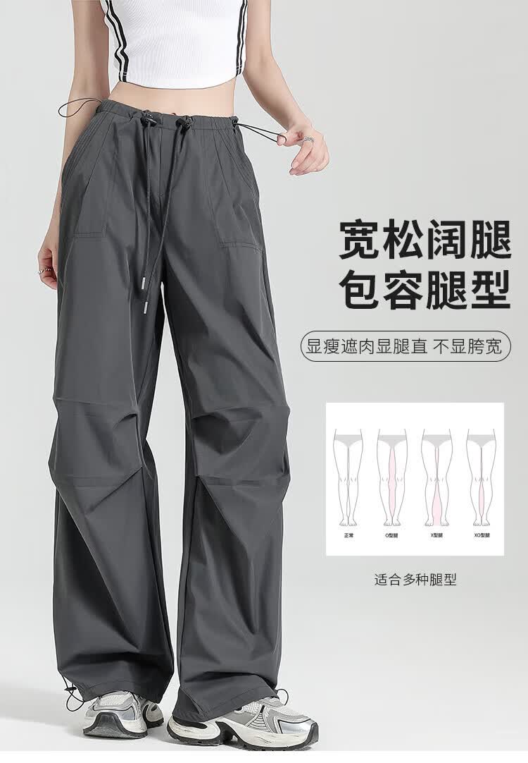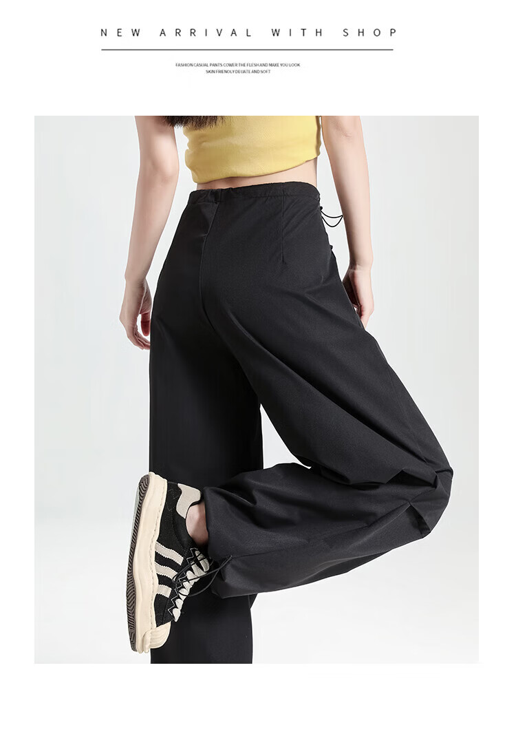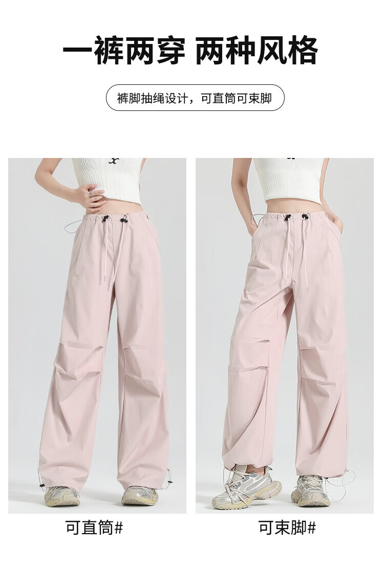 浪莎速干工装裤女夏季薄款新款显瘦宽松休闲阔腿运动降落伞兵登山裤子 黑色 M 【适合90-110斤】
