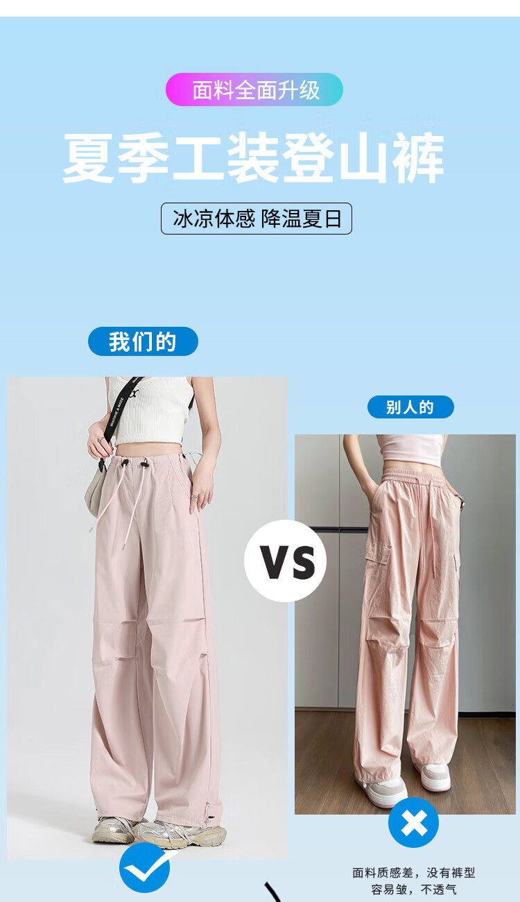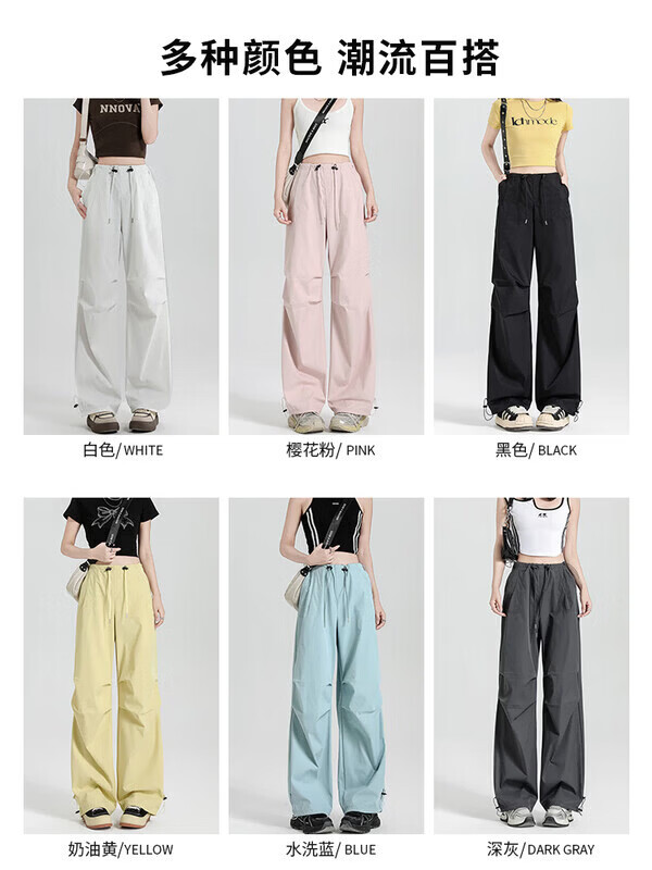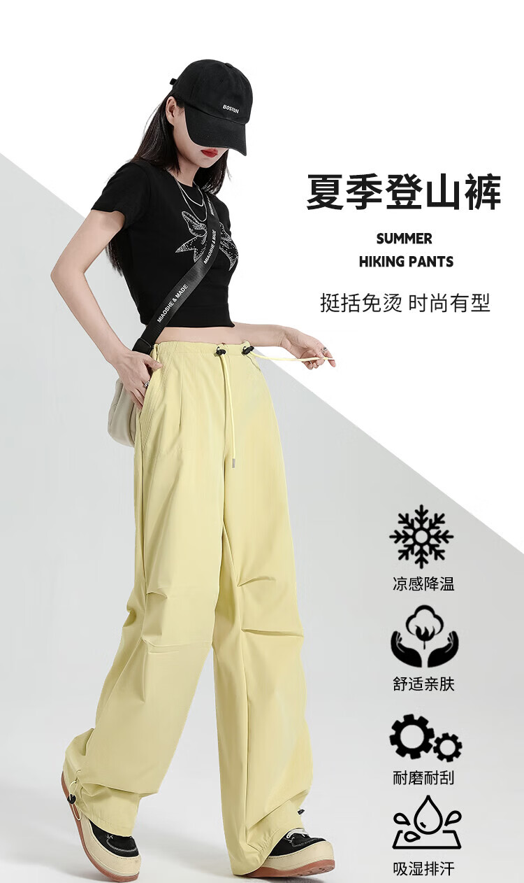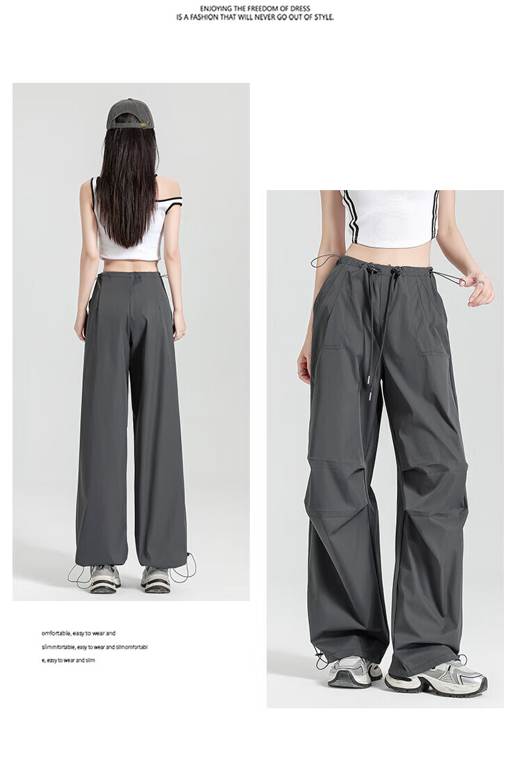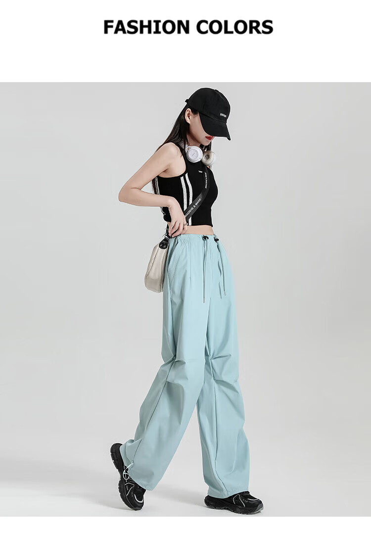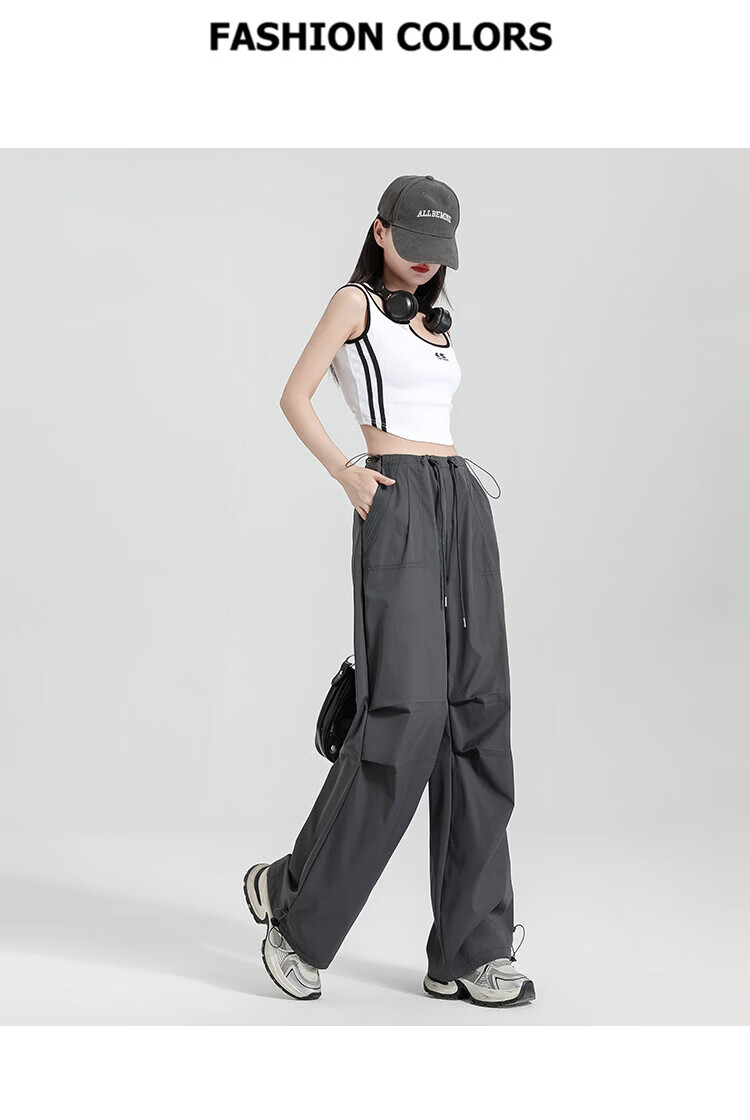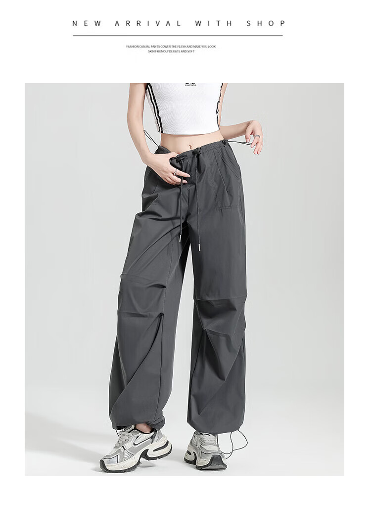 浪莎速干工装裤女夏季薄款新款显瘦宽松休闲阔腿运动降落伞兵登山裤子 黑色 M 【适合90-110斤】