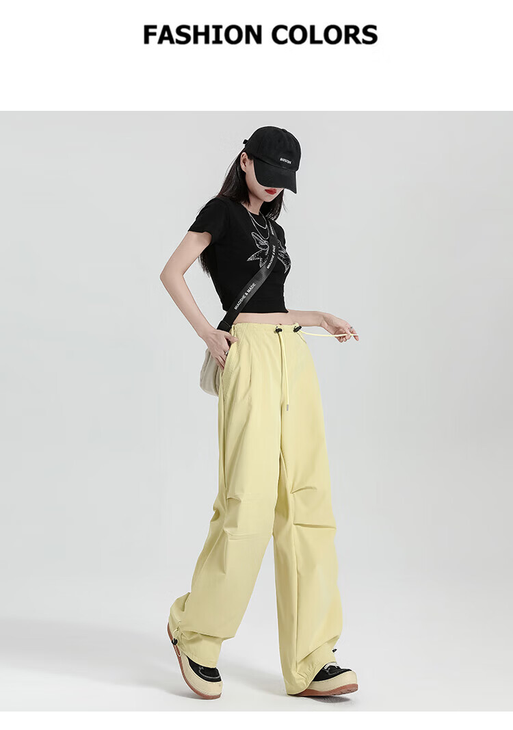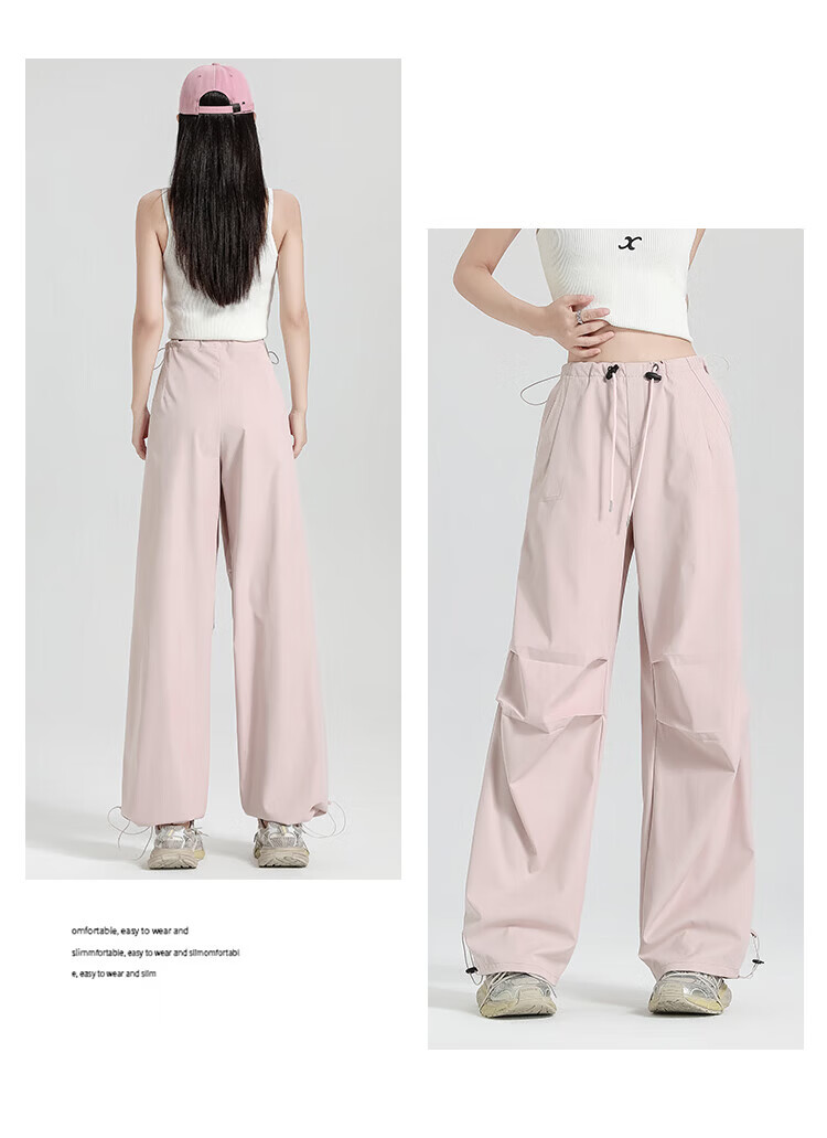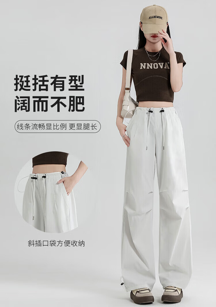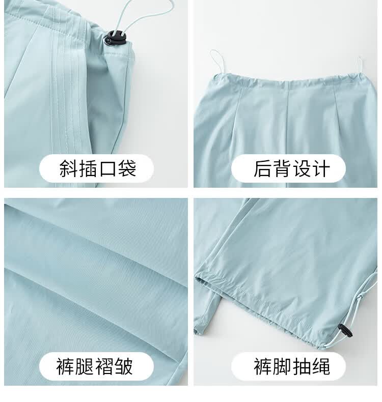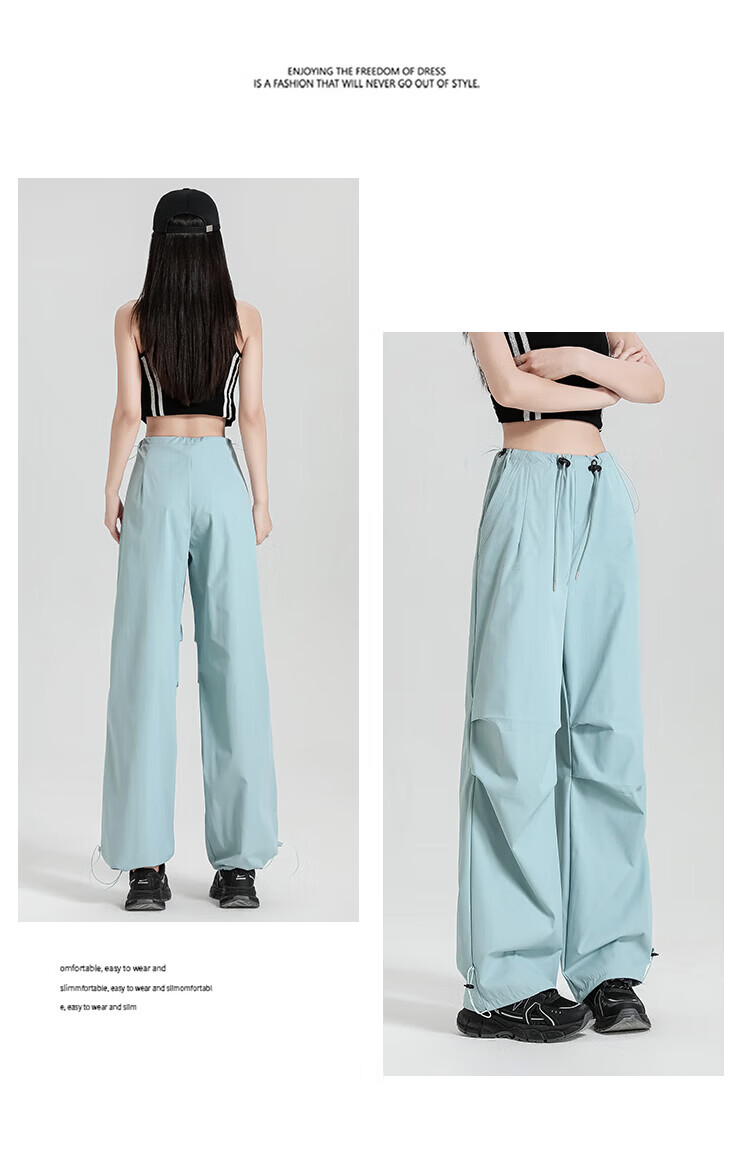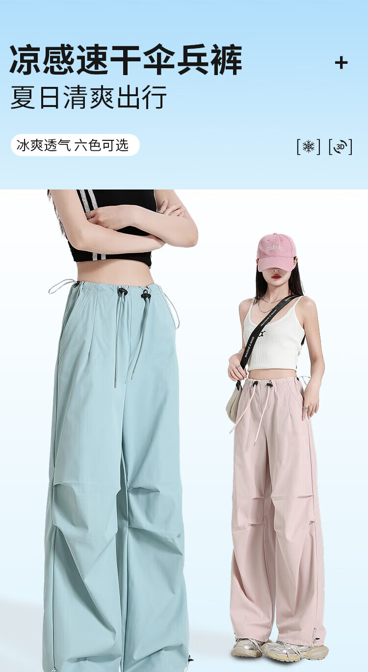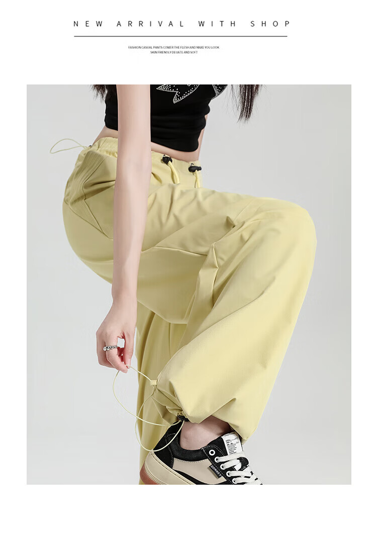 浪莎速干工装裤女夏季薄款新款显瘦宽松休闲阔腿运动降落伞兵登山裤子 黑色 M 【适合90-110斤】