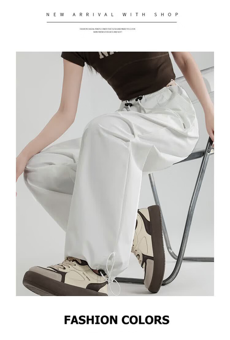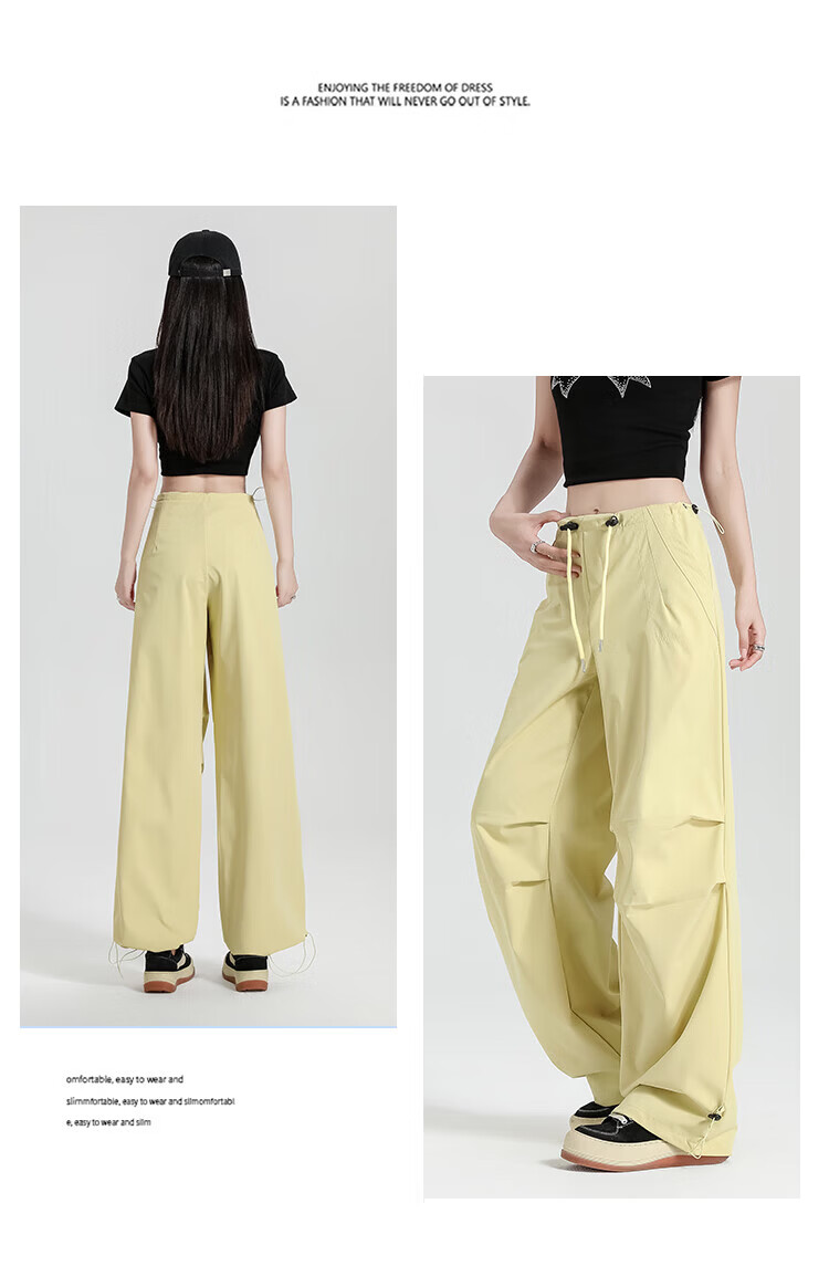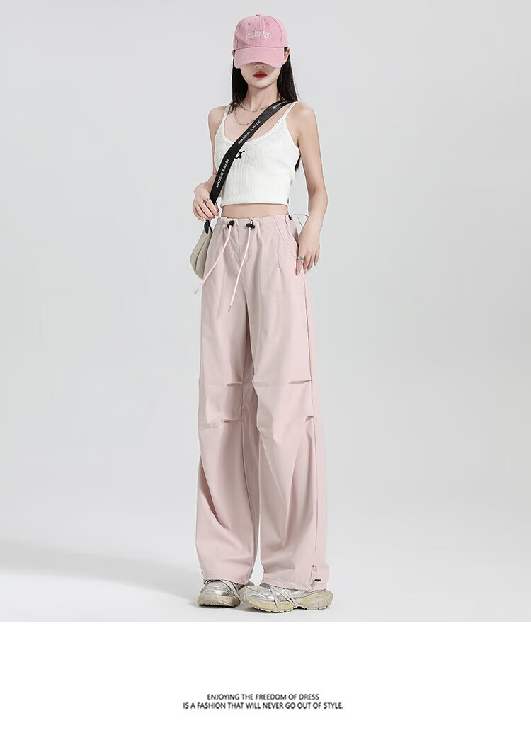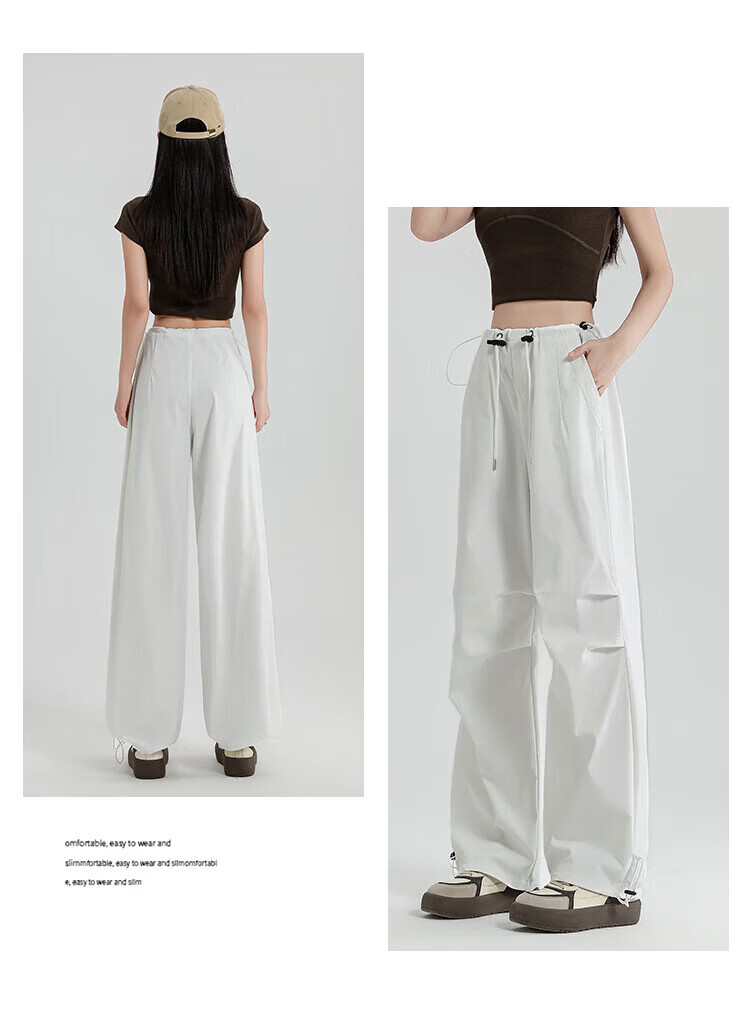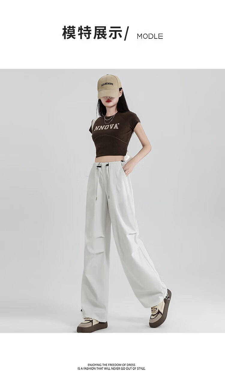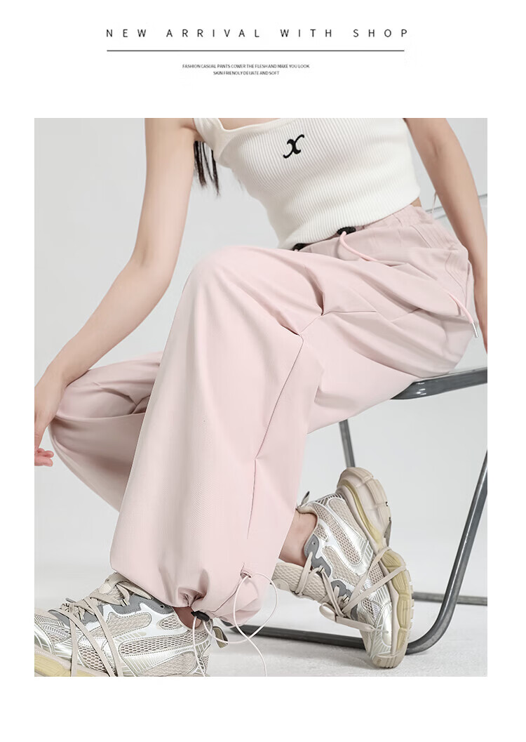 浪莎速干工装裤女夏季薄款新款显瘦宽松休闲阔腿运动降落伞兵登山裤子 黑色 M 【适合90-110斤】