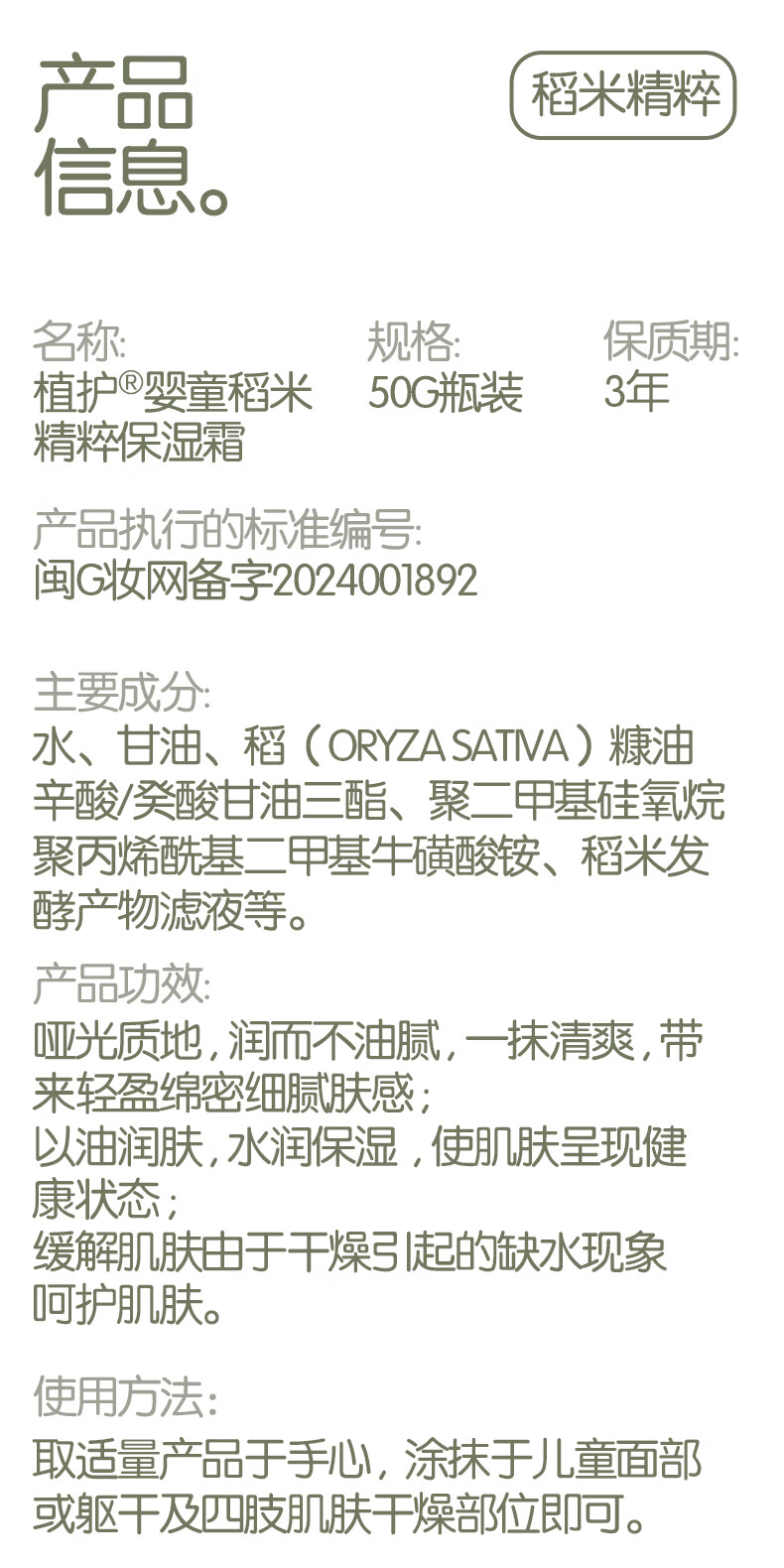 植护婴童稻米精粹儿童保湿霜宝宝润肤乳 50ml*1瓶