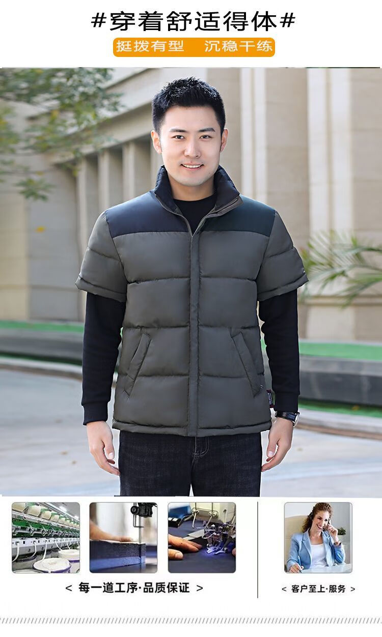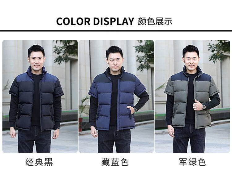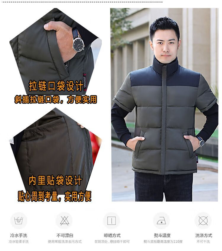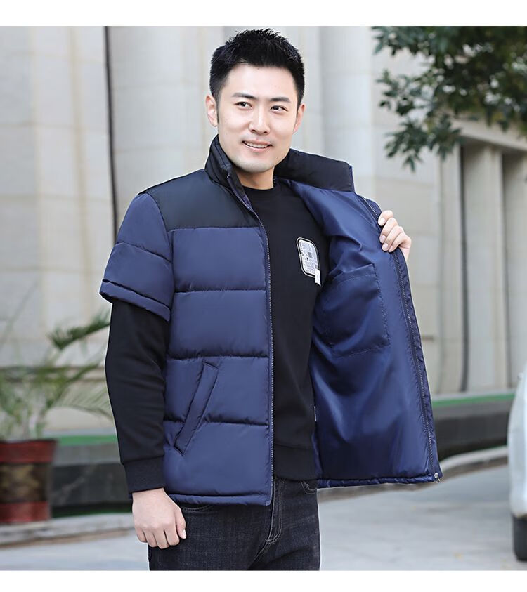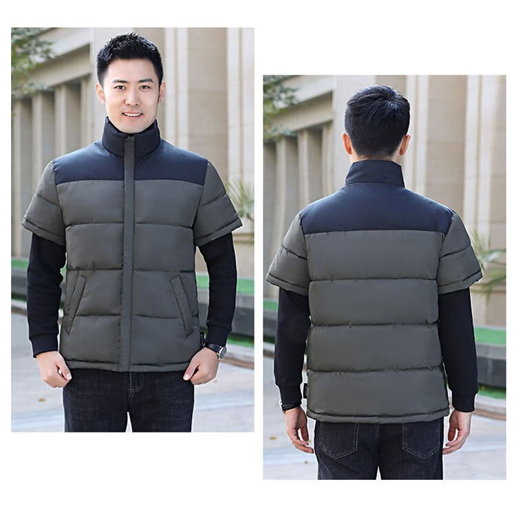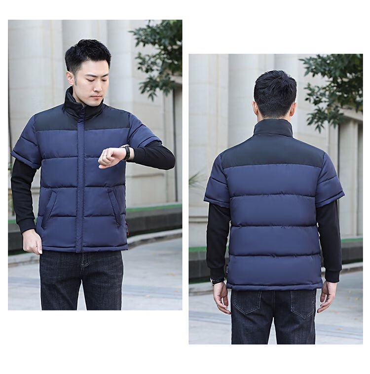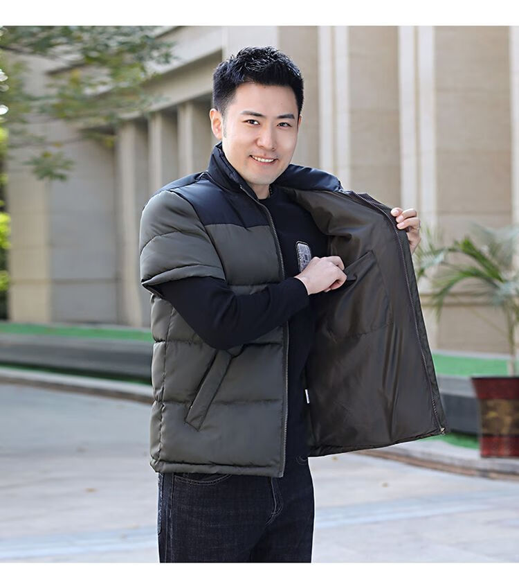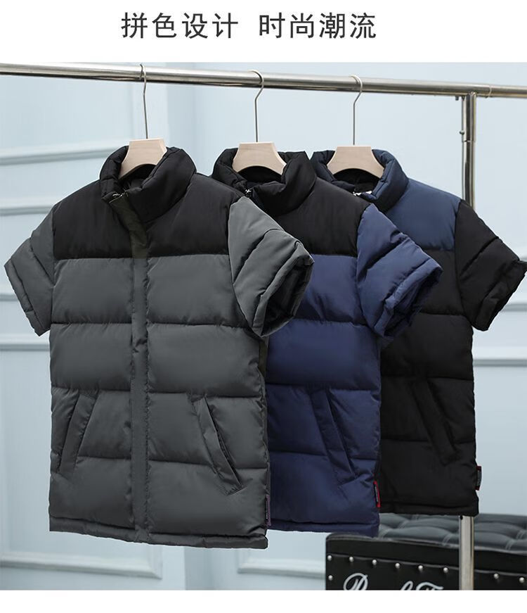 町苧男士短袖马甲保暖护肩半袖羽绒棉服中年休闲新款6X加码拼色冬棉袄 黑色 经典黑 4XL 146-165斤