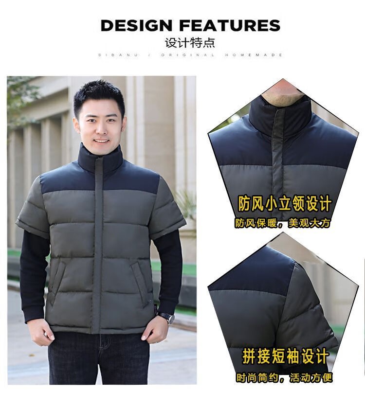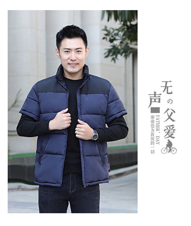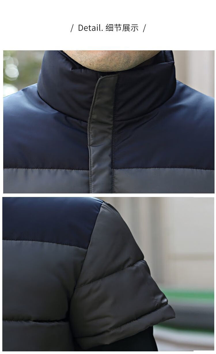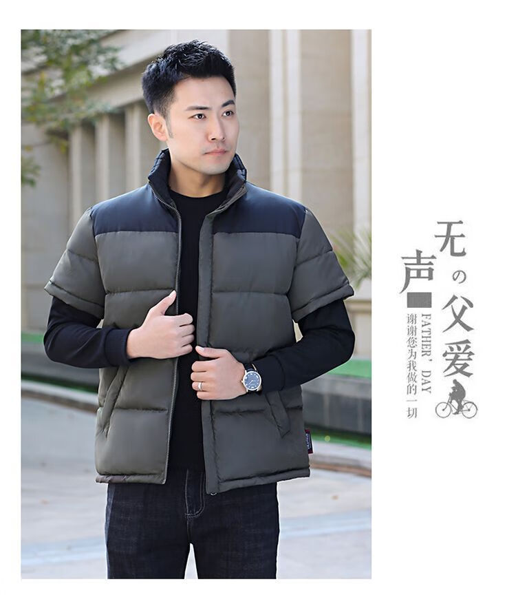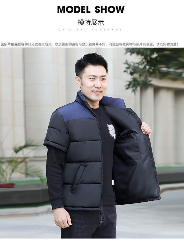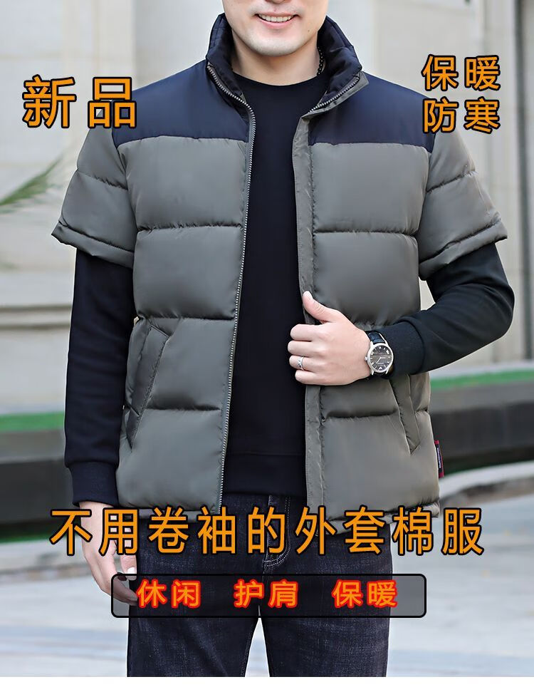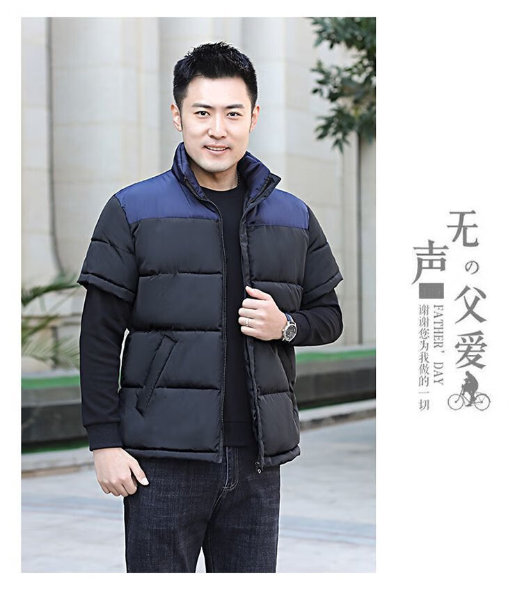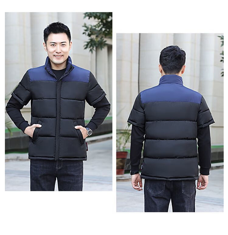 町苧男士短袖马甲保暖护肩半袖羽绒棉服中年休闲新款6X加码拼色冬棉袄 黑色 经典黑 4XL 146-165斤