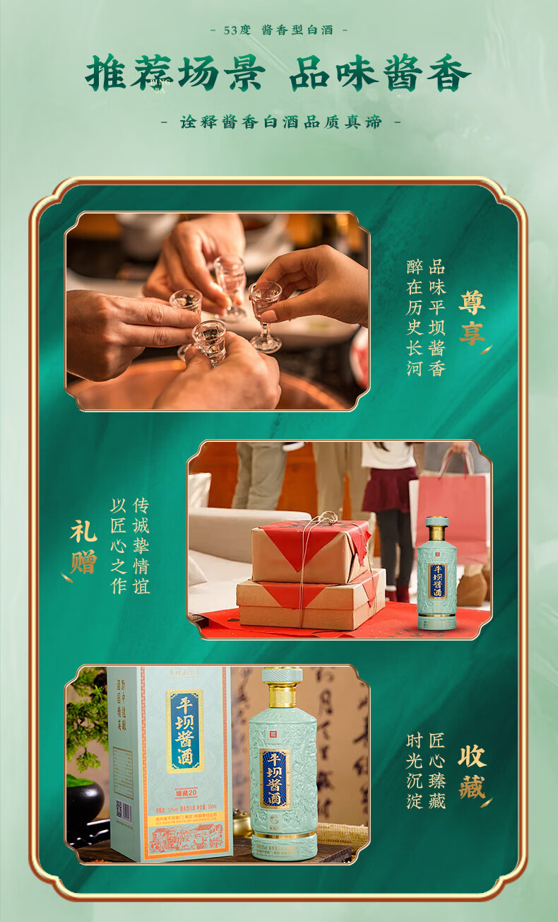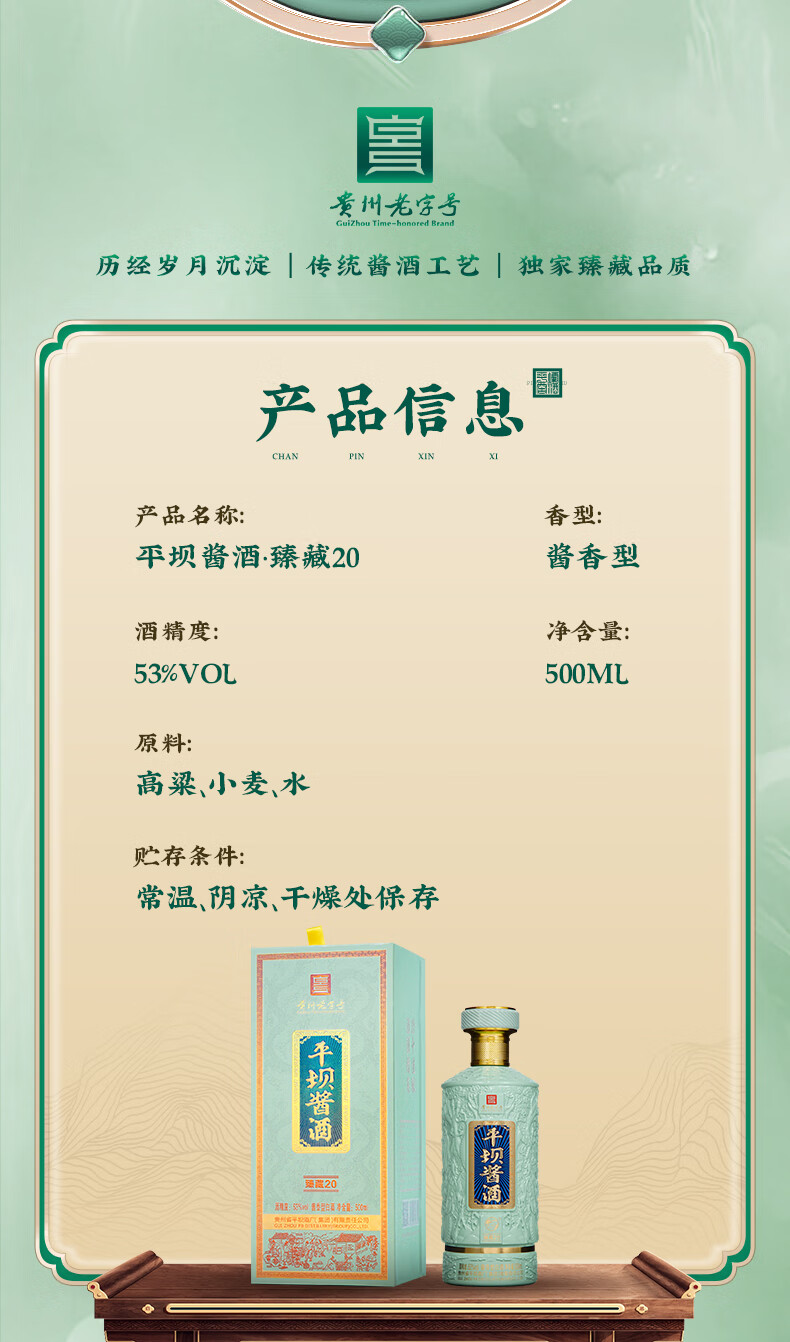平坝窑酒臻藏20酱香型高度白酒礼盒纯粮商务送礼酒席婚宴礼品烟酒 53%vol 500mL 2瓶 送礼袋