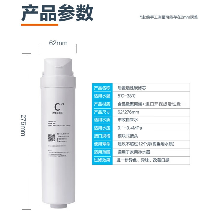 京锴清宴适用美的净水器滤芯S1系列华凌净水器滤芯PAC复合滤芯C1前置活性炭C2后置活性炭RO反渗透膜 C2后置活性炭【S1系列】