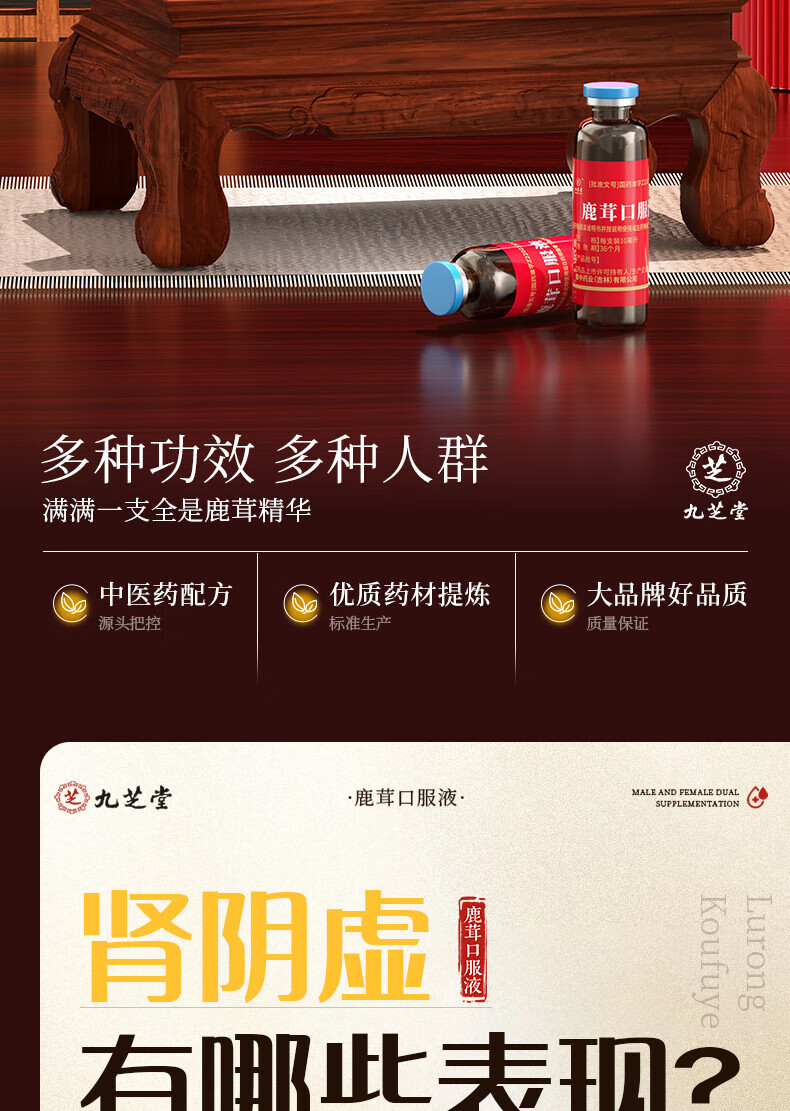 [九芝堂]鹿茸口服液 10ml*12支 10盒装 10ml*12支/盒大药房温肾生精养血补髓健骨畏寒无力血虚眩晕